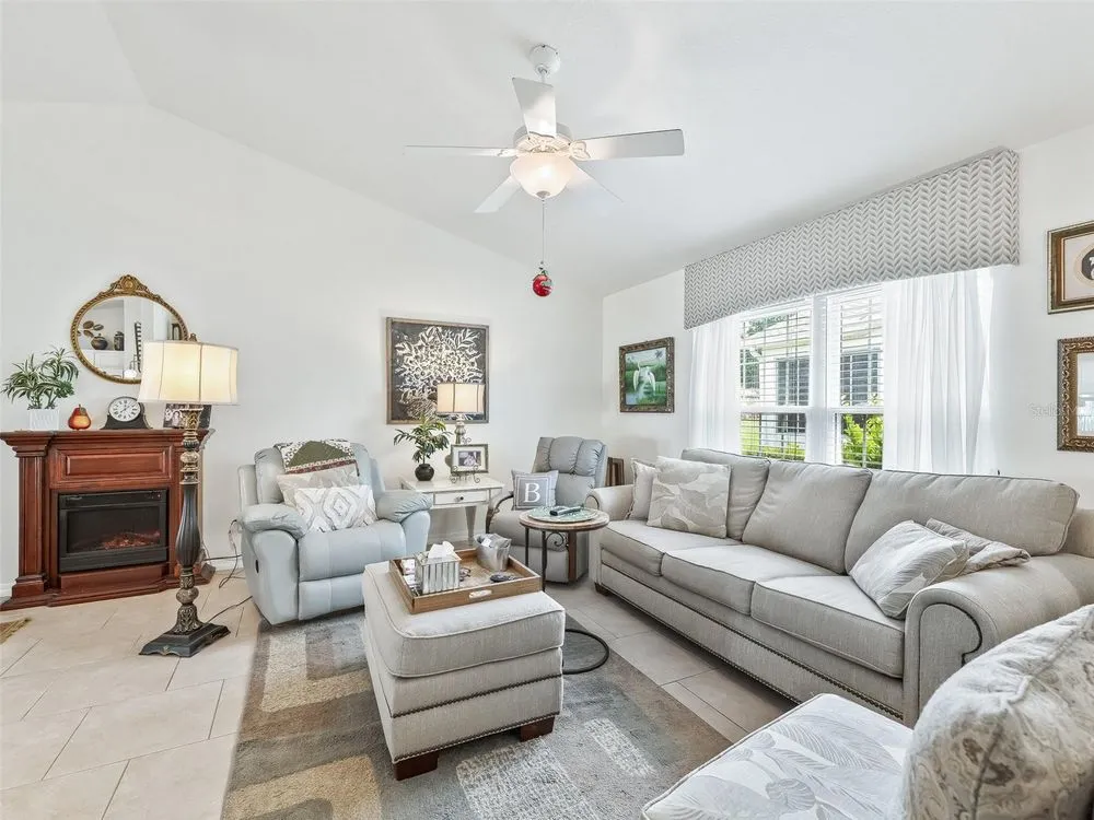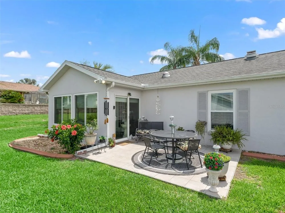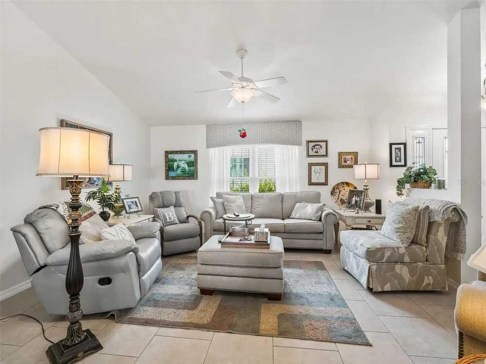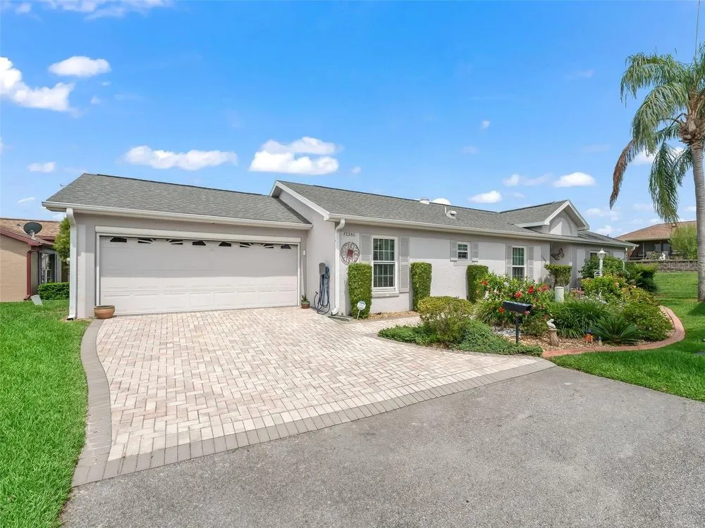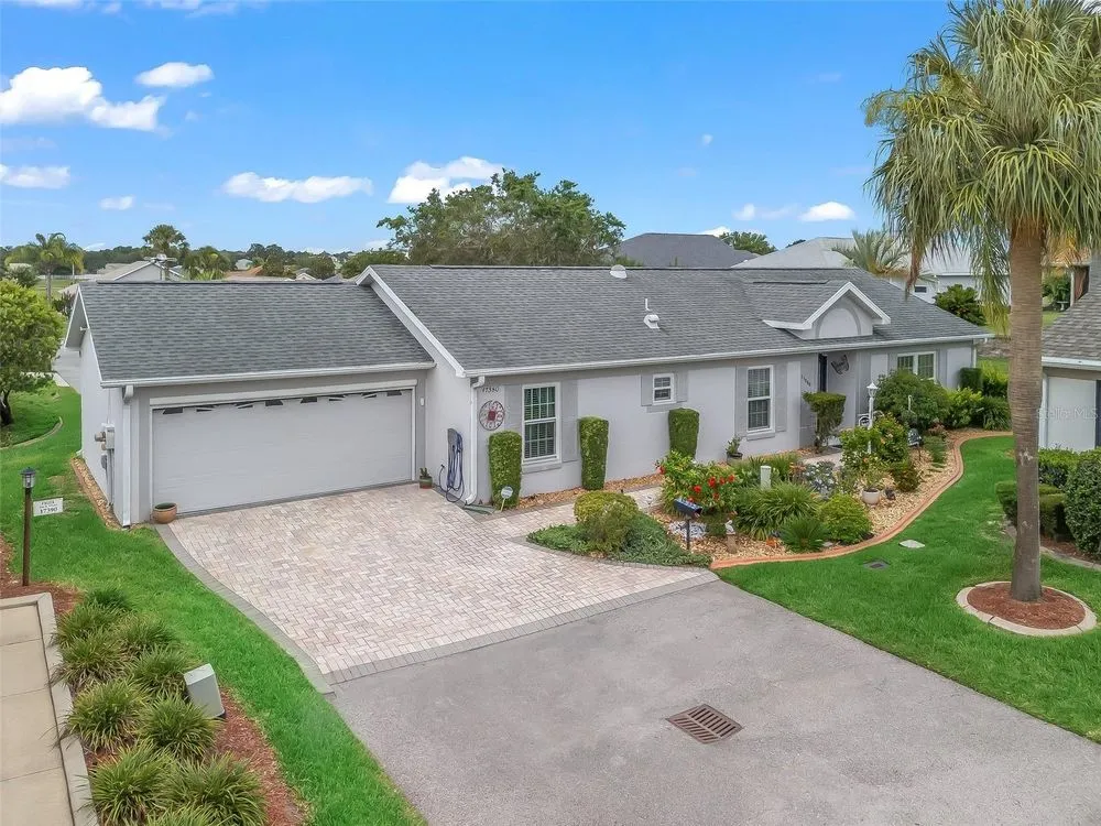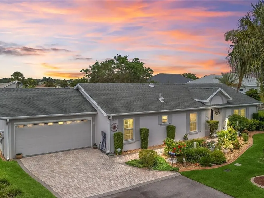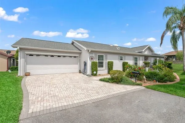 Stonecrest is a 55+ gated golf course community with all the amenities and 4 pools (one indoor), and just a Bridge Away By Golf Cart To The Villages! Come See This Charming 3/2 Concrete Block Casa Loma Villa with a 2 Car Garage! HVAC 2020! This Villa has an Open Concept Floor Plan, No Carpet, and Tremendous Curb Appeal featuring Paver Driveway, and Walkway, a Meticulously maintained Landscaping, and a Covered Front Entrance with an Elegant Leaded Stain Glass Door! The Dining and Living area combination creates a Spacious gathering area, perfect for entertaining family and friends! The Light & Bright Kitchen is bathed with natural light from the Solar Tube, and features a Vaulted ceiling, Newer Windows, Newer Appliances, Bosch Dishwasher, Tile Backsplash, a Pantry Closet, White Wood Cabinets, and Plenty of Counter Space! The spacious Primary suite offers a Walk in Closet, and En Suite bathroom. The En Suite bathroom showcases a Large Vanity, Solar Tube, Linen Closet, and a Walk in Shower. Guest Bedroom 2 provides plenty of space featuring a Double Closet, and is located close to the Guest bathroom with the Third Solar Tube making the hallway filled with natural light. Bedroom 3 (No Closet) features Double Door entry, and can be used as an office or Den. The Glass Enclosed Lanai showcases a Mini Split A/C Unit, Tile flooring, and has access to the nice size Tiled Back Patio, creating a Fantastic Additional living space, perfect for enjoying Outdoor Dining, beautiful Florida Sunsets, and Tropical breezes! The 2 Car Garage offers room for your vehicles, and an Electric screen door. The home is hard wired for a Generator! Some Furnishings, and Golf Cart are Negotiable. Stonecrest is a 55+ gated golf course community with all the amenities, pools, pickleball courts, softball, 18 hole championship golf course, Broad Stripes Golf & Social Club and over 80 different clubs to join! Stonecrest is just a bridge away by golf cart to the Villages. It is a community with Private Roads and 24 Hour Security! As a private gated golf course community, you can expect a high level of privacy and security. Overall, this home offers a combination of Great Outdoor Space, a Desirable Location, and a Secure Community Setting. A WONDERFUL LIFESTYLE AWAITS YOU IN STONECREST!