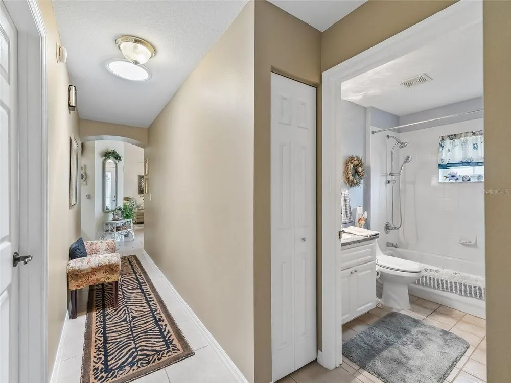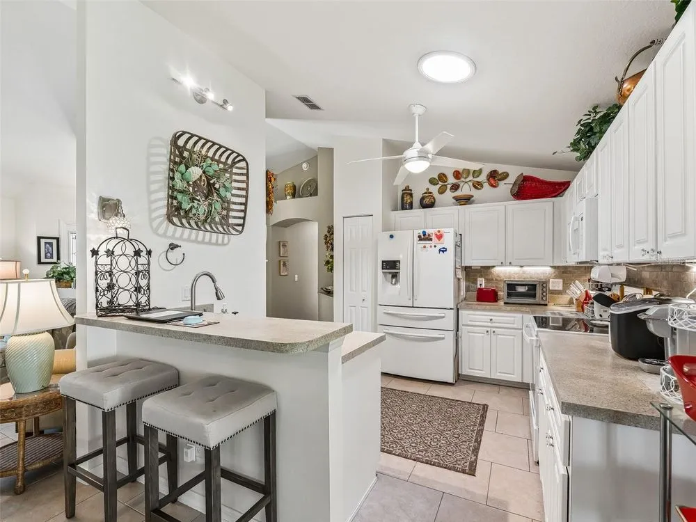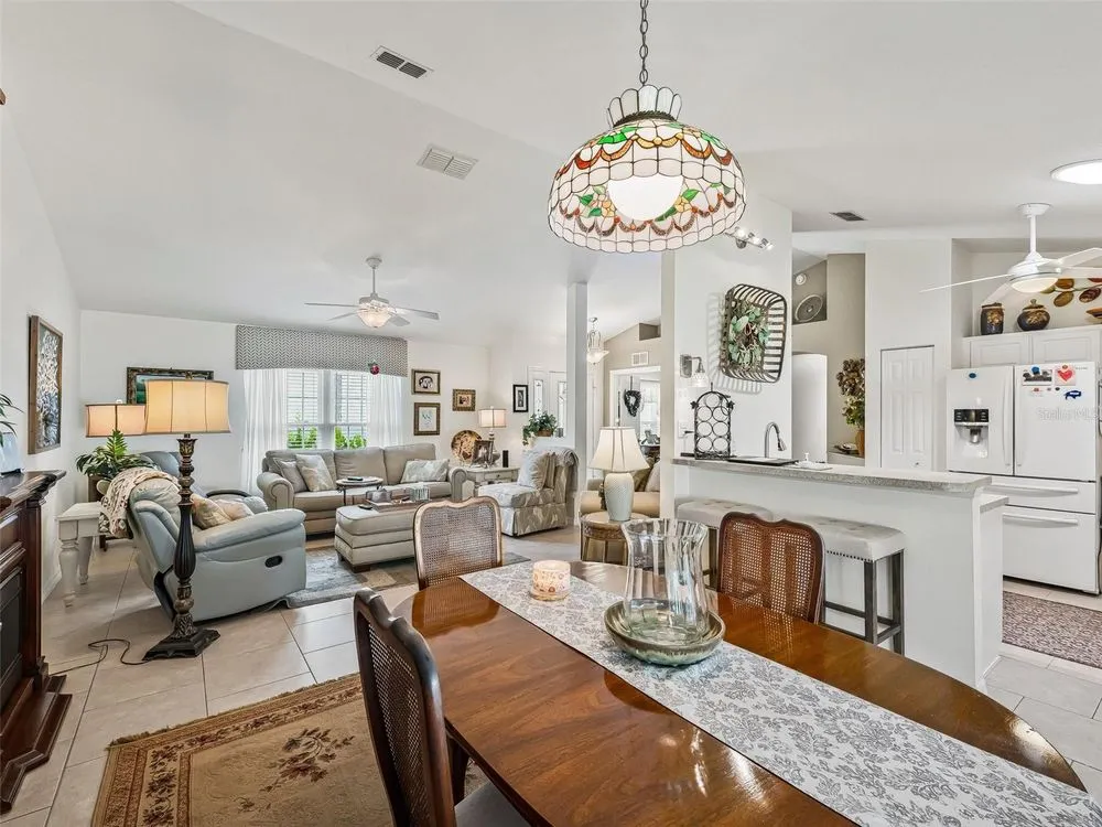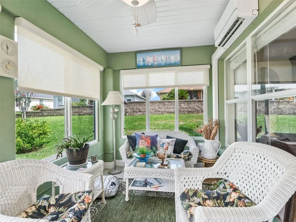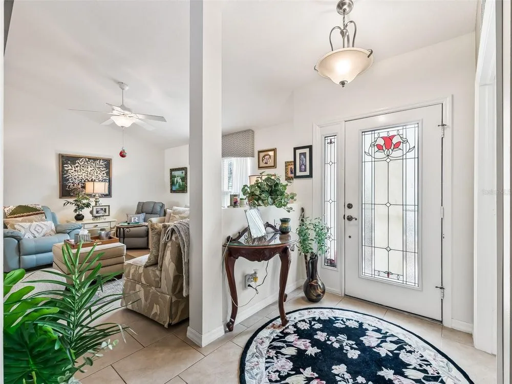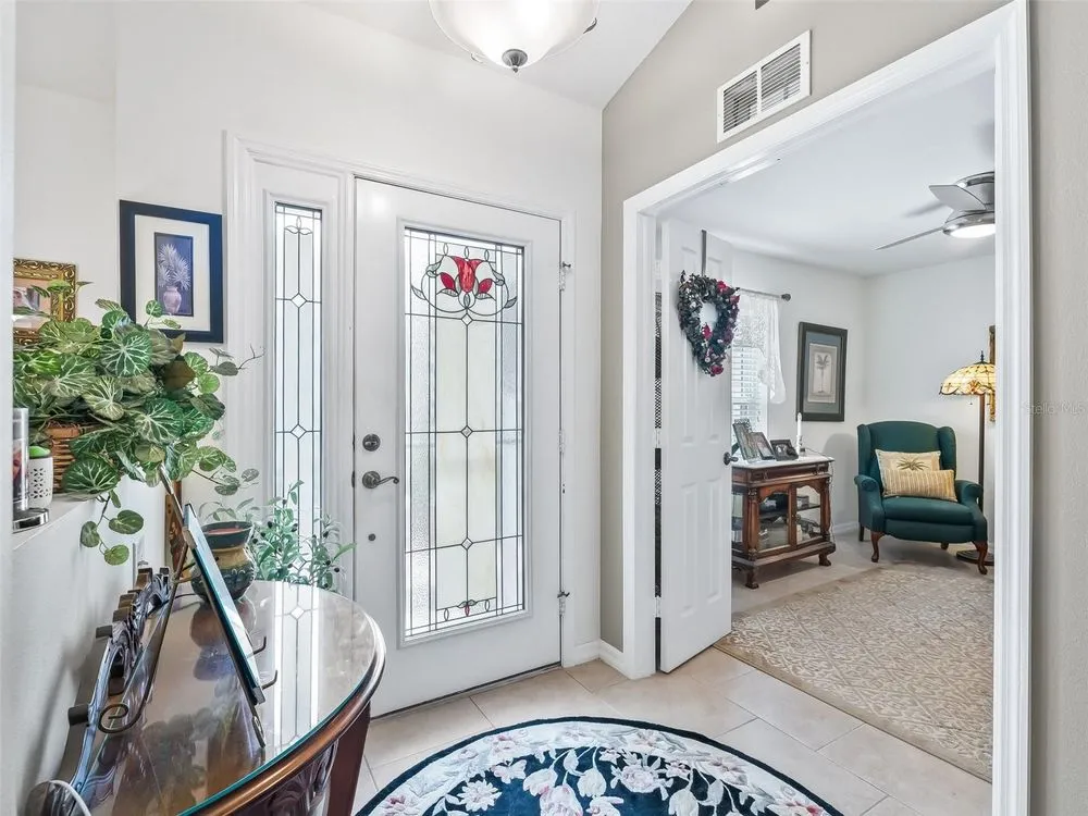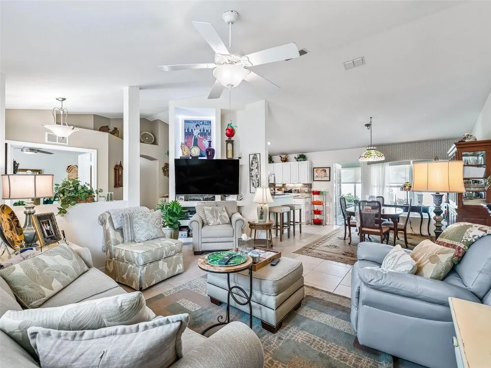 Stonecrest is a 55+ gated golf course community with all the amenities and 4 pools (one indoor), and just a Bridge Away By Golf Cart To The Villages! Come See This Charming 3/2 Concrete Block Casa Loma Villa with a 2 Car Garage! HVAC 2020! This Villa has an Open Concept Floor Plan, No Carpet, and Tremendous Curb Appeal featuring Paver Driveway, and Walkway, a Meticulously maintained Landscaping, and a Covered Front Entrance with an Elegant Leaded Stain Glass Door! The Dining and Living area combination creates a Spacious gathering area, perfect for entertaining family and friends! The Light & Bright Kitchen is bathed with natural light from the Solar Tube, and features a Vaulted ceiling, Newer Windows, Newer Appliances, Bosch Dishwasher, Tile Backsplash, a Pantry Closet, White Wood Cabinets, and Plenty of Counter Space! The spacious Primary suite offers a Walk in Closet, and En Suite bathroom. The En Suite bathroom showcases a Large Vanity, Solar Tube, Linen Closet, and a Walk in Shower. Guest Bedroom 2 provides plenty of space featuring a Double Closet, and is located close to the Guest bathroom with the Third Solar Tube making the hallway filled with natural light. Bedroom 3 (No Closet) features Double Door entry, and can be used as an office or Den. The Glass Enclosed Lanai showcases a Mini Split A/C Unit, Tile flooring, and has access to the nice size Tiled Back Patio, creating a Fantastic Additional living space, perfect for enjoying Outdoor Dining, beautiful Florida Sunsets, and Tropical breezes! The 2 Car Garage offers room for your vehicles, and an Electric screen door. The home is hard wired for a Generator! Some Furnishings, and Golf Cart are Negotiable. Stonecrest is a 55+ gated golf course community with all the amenities, pools, pickleball courts, softball, 18 hole championship golf course, Broad Stripes Golf & Social Club and over 80 different clubs to join! Stonecrest is just a bridge away by golf cart to the Villages. It is a community with Private Roads and 24 Hour Security! As a private gated golf course community, you can expect a high level of privacy and security. Overall, this home offers a combination of Great Outdoor Space, a Desirable Location, and a Secure Community Setting. A WONDERFUL LIFESTYLE AWAITS YOU IN STONECREST!