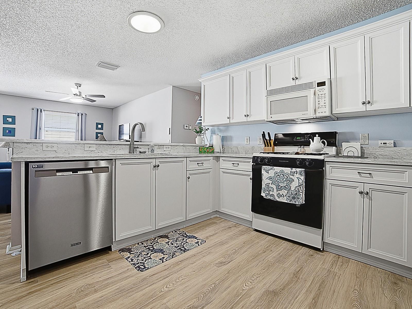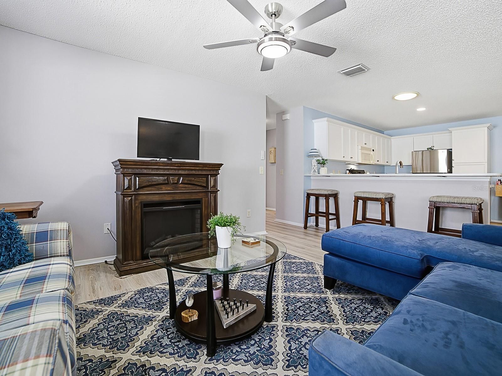 - Ceiling Fan(s), Living/Dining Room, Open Floorplan, Main Level Primary, Stone Counters