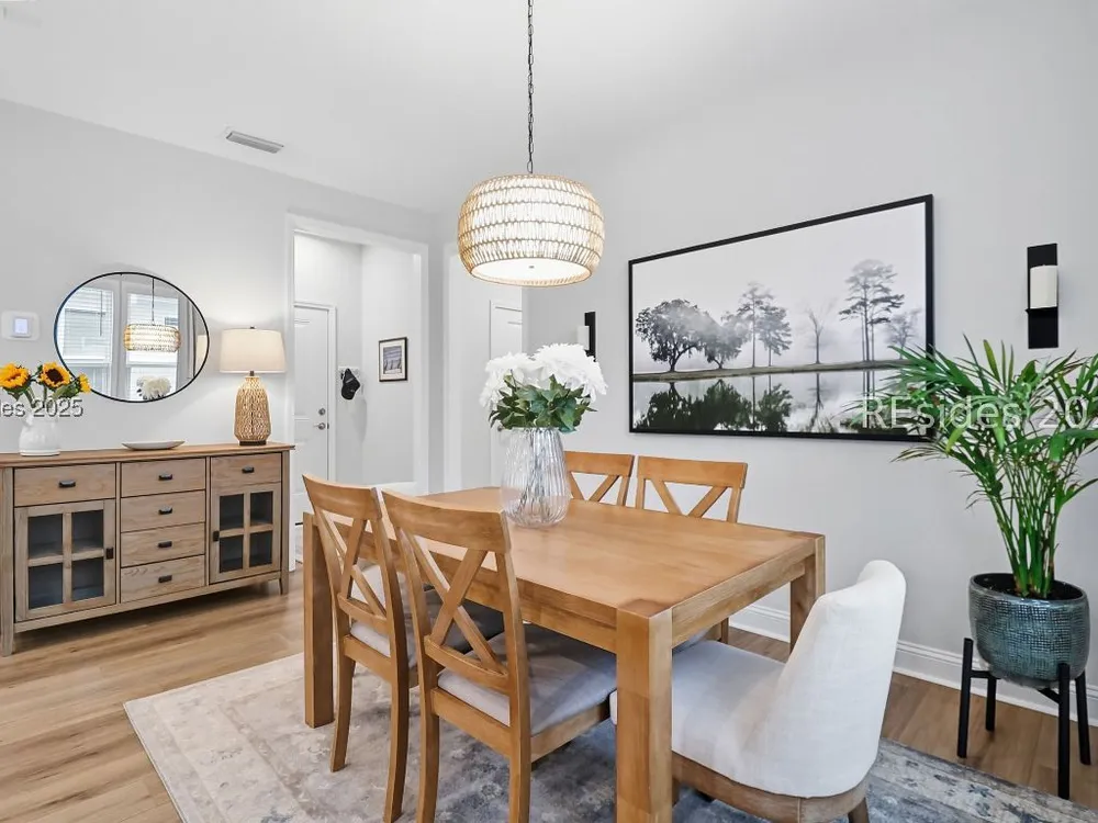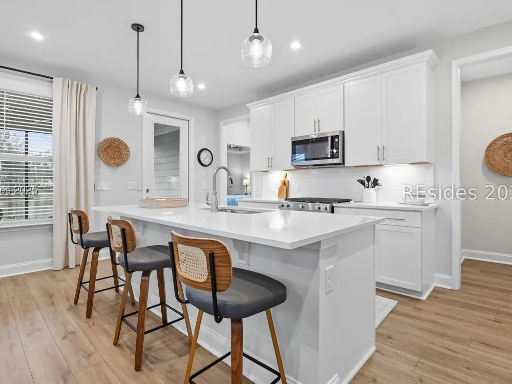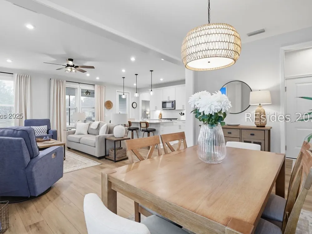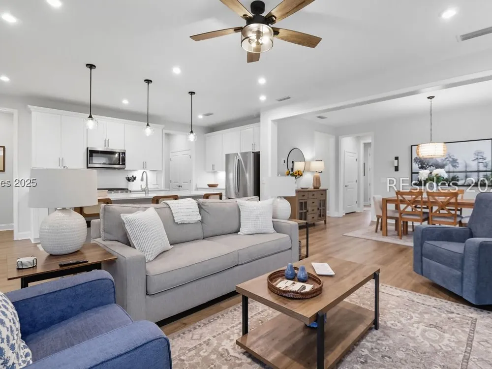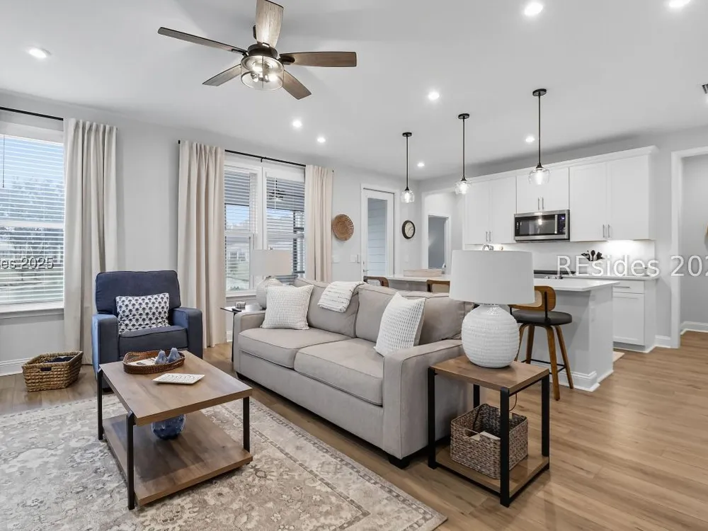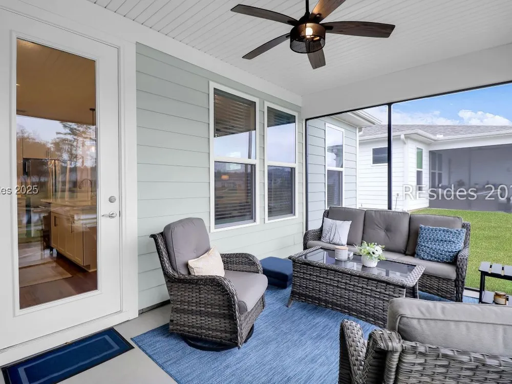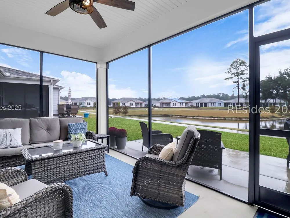 Situated in one of the newest neighborhoods of Sun City Hilton Head, this beautifully designed Ellenton Duet Model offers the perfect blend of modern comfort and Southern charm. Ideally positioned on a premium lagoon-view homesite, you'll enjoy tranquil water vistas and easy access to the brand-new, multi-million-dollar amenity center coming soon! Why wait to build? This move-in-ready home has it all simply add your personal touches and start living the Sun City lifestyle today. The open-concept floor plan features 2 bedrooms and 2 full baths, a bright and airy kitchen, dining, and living area, and seamless indoor-outdoor flow to a screened lanai and extended patio, perfect for morning coffee or evening relaxation. Thoughtfully appointed with builder upgrades, including a finished garage, luxury vinyl plank flooring throughout, under-cabinet lighting, upgraded cabinetry and countertops, and an enhanced kitchen layout. Located in a professionally managed neighborhood, residents enjoy low-maintenance living with landscaping, fertilization, and weed control included. Experience the best of resort-style living in one of the community's most desirable new sections your Lowcountry dream begins here!