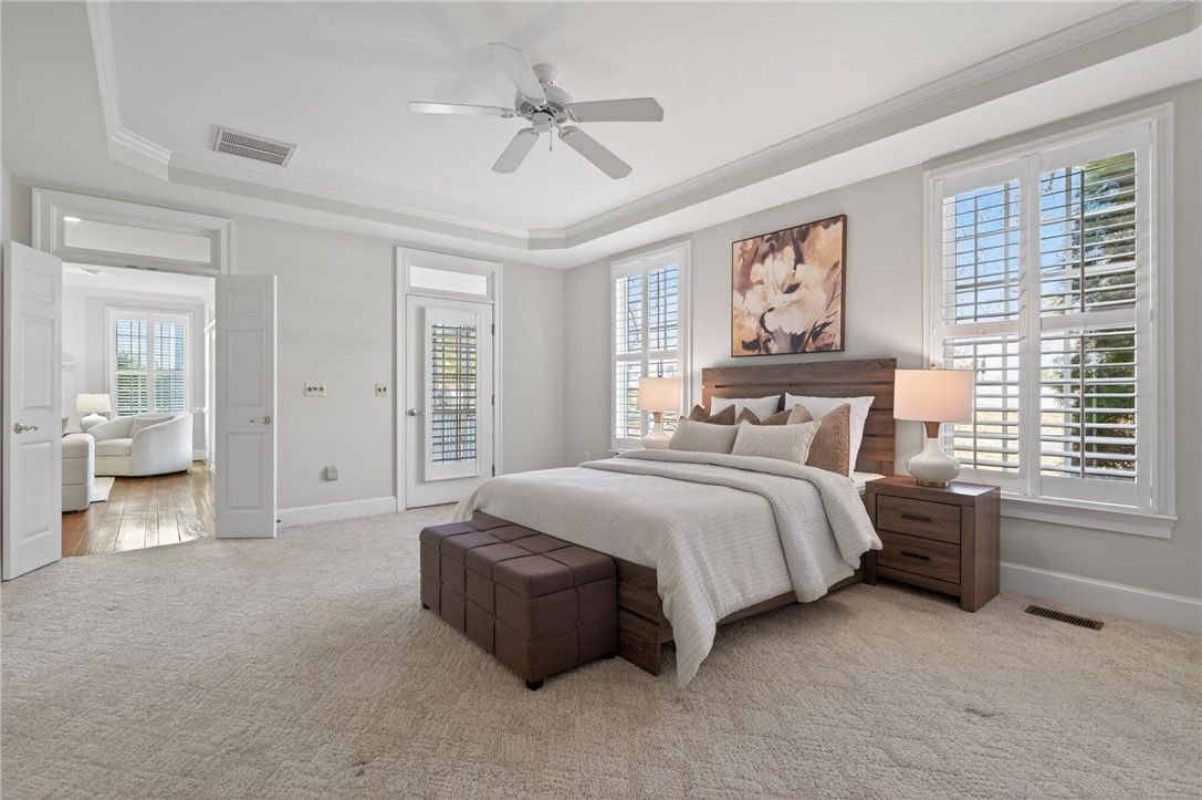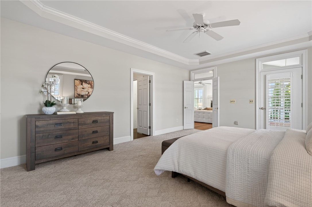 - Attic Access, Bookcases, Built-in Features, Tray Ceiling(s), Ceiling Fan(s), Dining Area, Separate/Formal Dining Room, Double Vanity, Eat-in Kitchen, French Door(s)/Atrium Door(s), Granite Counters, High Ceilings, Pantry, Recessed Lighting, Walk-In Closet(s), Window Treatments