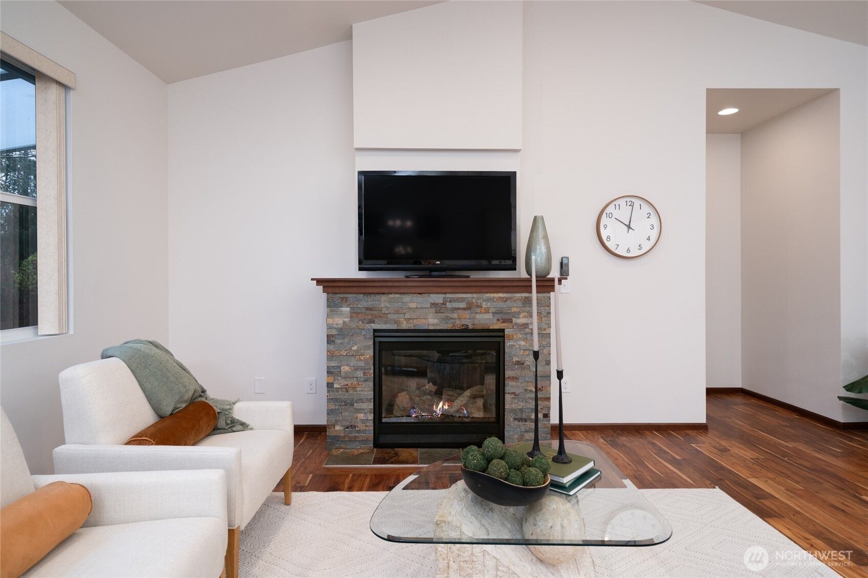Easy Living in Woodside’s 55+ Community. Welcome to Woodside, one of Skagit County’s most desirable active adult communities—where comfort, simplicity, and connection come together. Designed for those 55 and better, this beautifully maintained single-level home offers the ease of low-maintenance living, with the HOA ($220/month) taking care of yard work so you can spend more time enjoying what matters most. Inside, you’ll find a bright and inviting great room with large windows that bring in natural light and frame views of the private backyard. that looks onto the green belt. The open layout flows effortlessly into a well-appointed kitchen featuring a generous island. Warm Acacia hardwood floors, tile accents, and soft bedroom carpeting create a comfortable and welcoming feel throughout. The cozy fireplace adds the perfect touch for relaxing evenings, while the dining area opens to an extended patio with covered awning —perfect for enjoying Skagit County’s fresh air year-round. The primary suite is a peaceful retreat with its own private bath (roll in shower) and ample storage. Two additional bedrooms offer flexibility for guests, hobbies, or a home office. Set in a quiet, thoughtfully planned neighborhood with nearby walking paths and green spaces, this home offers a relaxed pace of life while still being close to the charm, nature, and conveniences that make Skagit County so special. If you’re looking for comfort, community, and easy living—this is it.