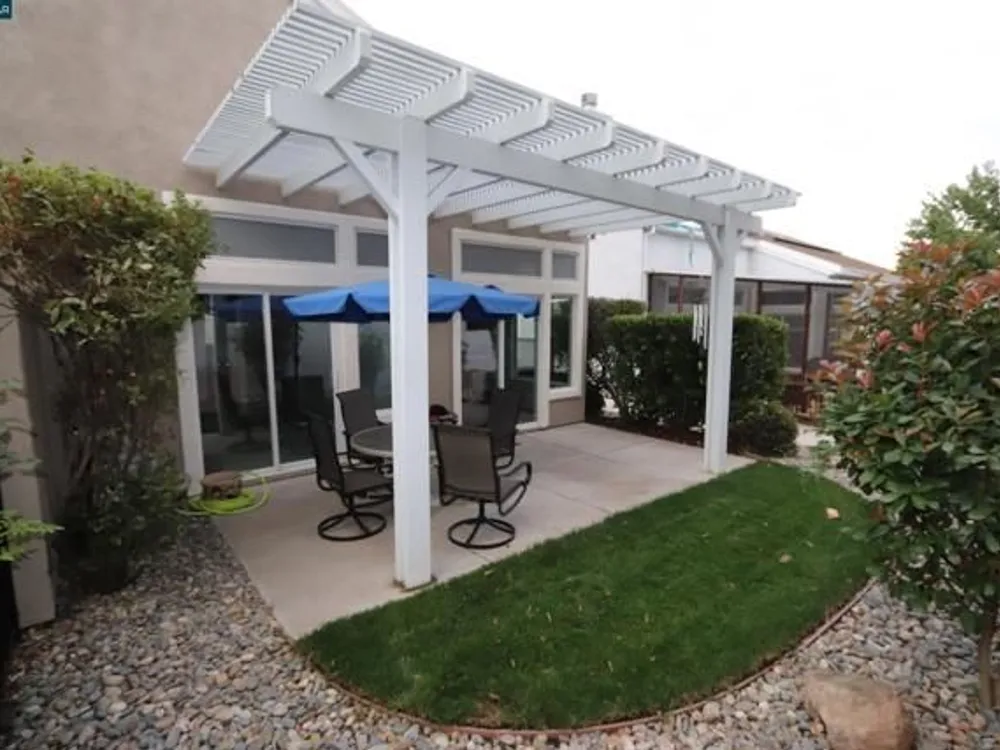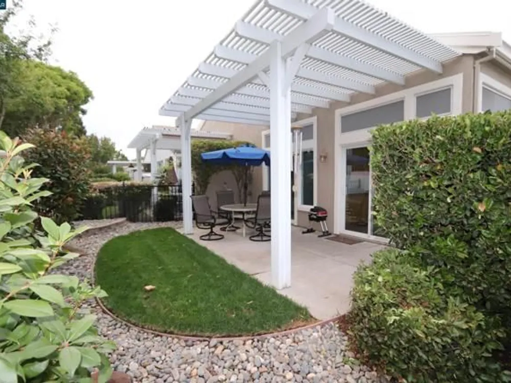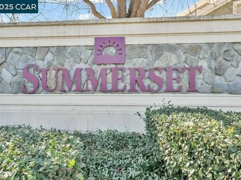 This is a duet – The Bartlet model - Open SUNDAY Sept. 28th from 12-3pm. This home has 2 bedrooms, 2 baths and a 1car garage with extra depth. The home is about 994 sq ft (see floor plan). Kitchen has tile counters, lots of cabinets, gas stove/oven, microwave, dishwasher and refrigerator and custom flooring w/ large dining area. New carpet & paint throughout the interior plus some nice ceiling fans. A large living / family room with plantation shutters. Primary bedroom w/ walk-in closet, primary bath has a stall shower. On the other side of the house is the guest bedroom and guest bathroom with a tub/shower combo. The laundry is a stackable washer & dryer in a closet. These duet lots are not huge with about 2,570 sq ft, however, check out the nice patio & patio cover, new grass and low maintenance landscaping and no rear neighbors. Summerset 1 is a gated 55 + senior community - The HOA is $175 monthly and includes swimming pool, hot tub, gym, tennis, bocce ball, activity clubs to join, dinners & dances, security gates & more. Just minutes away from Kaiser Hospital & John Muir, Safeway & CVS.