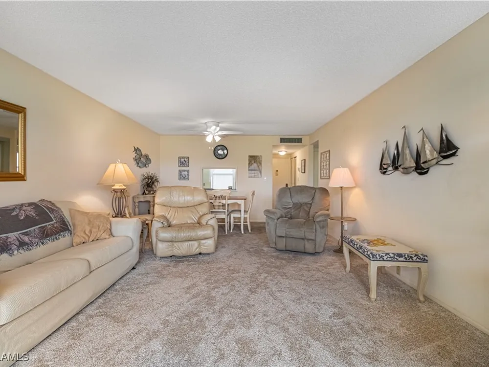 Come and Take a Look at this Greenbrier Model with 2 bedrooms and 2 Baths. Conveniently located steps away from one of six pools. Lanai has been opened up for more living Space with a beautiful view of Seven Lakes Golf Course. Impact Resistant Windows in the Kitchen and Bedrooms. Primary Bedroom has double closets and ensuite bathroom with walk-in shower. A/C is 2021. Condo fees which are inclusive of all the amenities that you can enjoy here which include, golf course with no fees, 6 tennis courts, pickle ball courts, bocce ball, shuffleboard. An auditorium that hosts many events (Dinners and Dancing) trivia, bingo to name a few. On site Recreative Department that keep you as active as you like. Card clubs, sewing, quilting, camera club... Your condo fees also cover your internet, cable, water, trash removal and lawn maintenance. As an owner you pay your electricity. Come and take a look at this piece of paradise in our 55+ community, which is Fort Myers hidden gem. Centrally located close to shopping, restaurants, internation airport and so much more. Come take a look at our beautiful community!!!