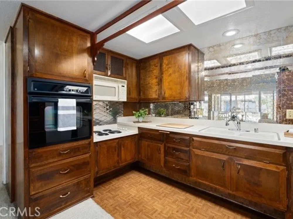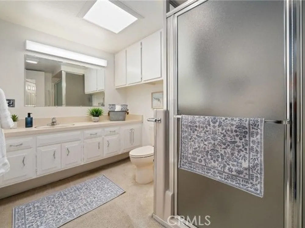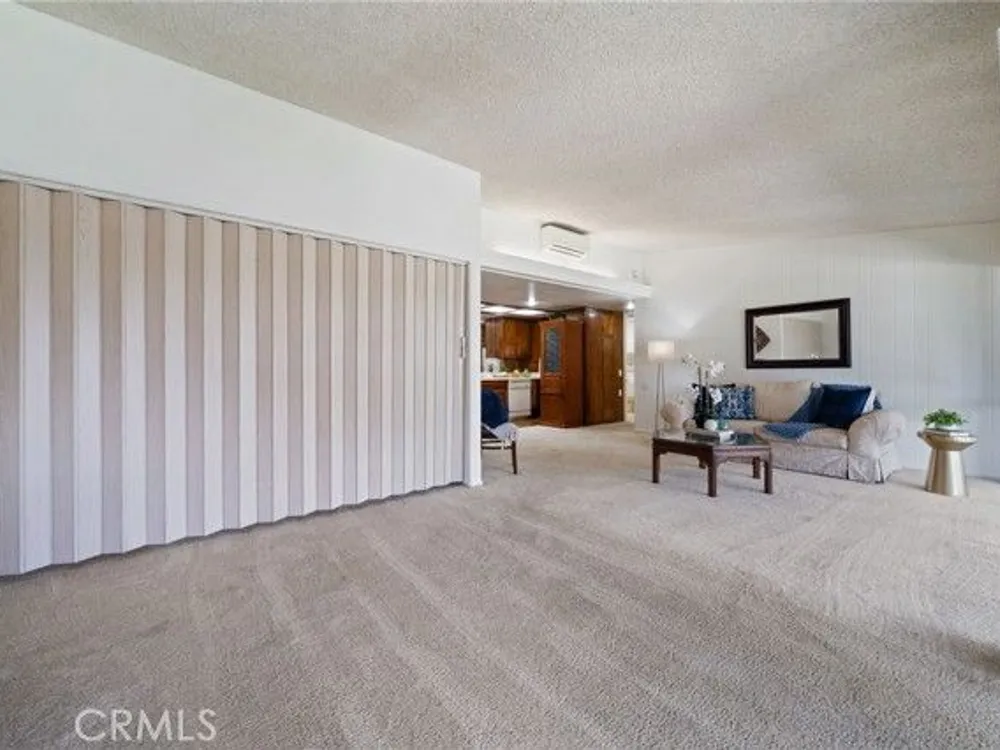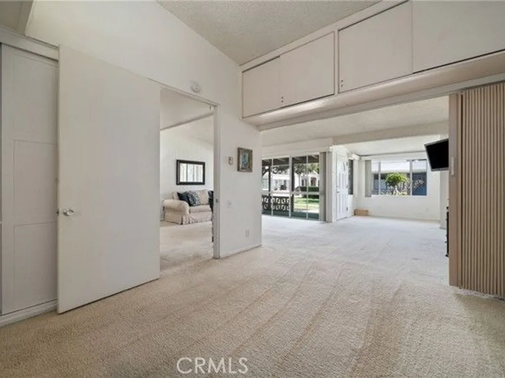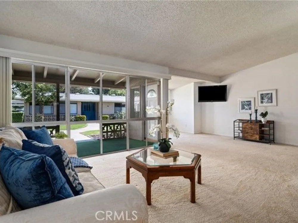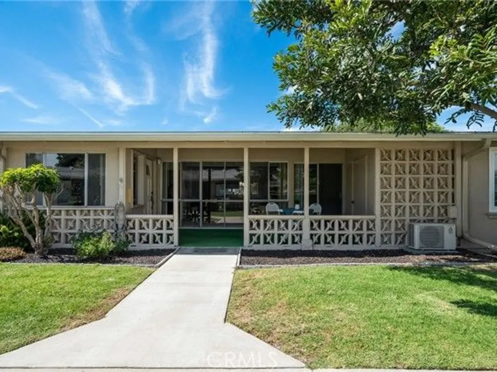 What a beautiful location! This desirable south-facing unit in Mutual 14 is just steps from the golf course, offering a partial golf course view and a truly peaceful setting. The expanded floor plan still provides generous outdoor space, perfect for enjoying the cool ocean breezes and iconic Southern California sunshine. Inside, vaulted ceilings and skylights in both the kitchen and bathroom create a bright and airy atmosphere throughout the home. Fresh interior paint, newer vertical blinds, and a heat pump ensure a comfortable environment with year-round climate control. The versatile layout includes a second bedroom currently opened to the living room, enhancing the open-concept feel. Folding doors allow for privacy when needed—making this space ideal as a home office, guest room, or flexible living area. Additional features include convenient in-unit laundry located in the bathroom and extra built-in storage in both bedrooms, maximizing space and functionality. Mutual 14 offers a prime location within Leisure World, just moments from popular amenities such as the golf course and aquatic center. This mutual is known for its pride of ownership, with many residences featuring beautifully maintained gardens and inviting patios. Come live the life of leisure! Leisure World is a vibrant, 55+ active adult community offering 24-hour security with guarded patrols. With over 200 activity and social clubs, it’s a place designed for an enriching lifestyle. Enjoy amenities such as a swimming pool, spa, 9-hole golf course, state-of-the-art gym, sports court, billiards, bocce ball, and pickleball. The amphitheater hosts summer concerts and holiday events, while six clubhouses provide ample space for gatherings. Additional conveniences include a health care center, pharmacy, post office, café, car wash, art and ceramics room, woodshops, a library, and a convenient bus system. Whether you're looking to relax, explore new hobbies, or make lifelong friendships, Leisure World has everything you need for a fulfilling and active lifestyle. One assigned carport located in building 153 space 10