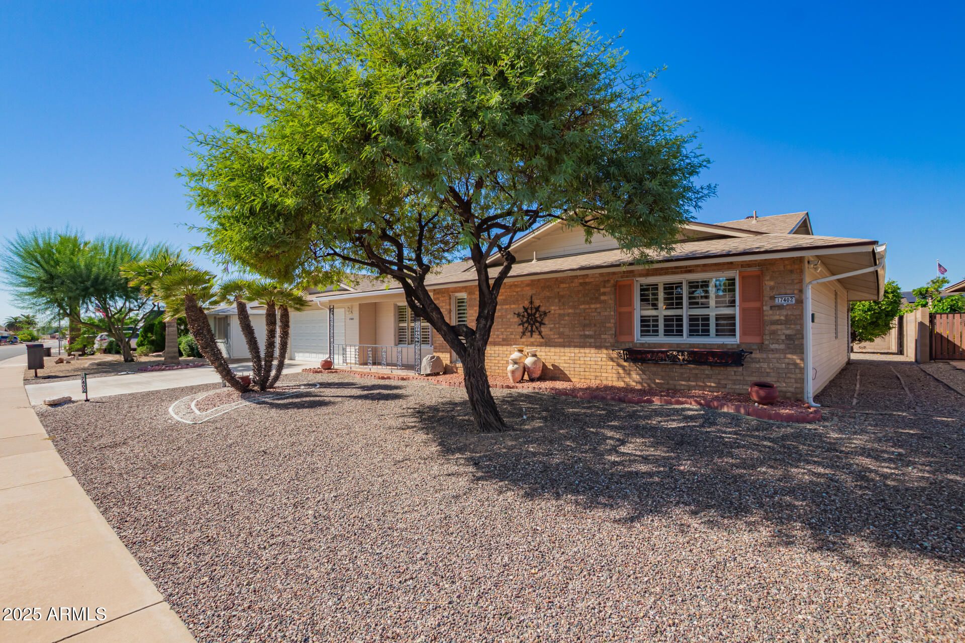 Welcome to this bright, move in ready home featuring comfortable living and low maintenance desert landscaping. Inside you'll find an open living/dining area, neutral colors, and good natural light easy to furnish and enjoy. Kitchen has ample cabinet space and overlooks the main living areas. Private bedrooms and interior laundry for convenience. The former patio has been professionally enclosed and permitted, creating flexible extra living space ideal for hobbies, office, or sunroom. New roof in 2021 for added peace of mind. Also enjoy all the benefits of the active adult community of Sun City featuring some of the best golf courses in town, recreation centers, pools, clubs, and nearby shopping/dining. Come check it our for yourself!!!