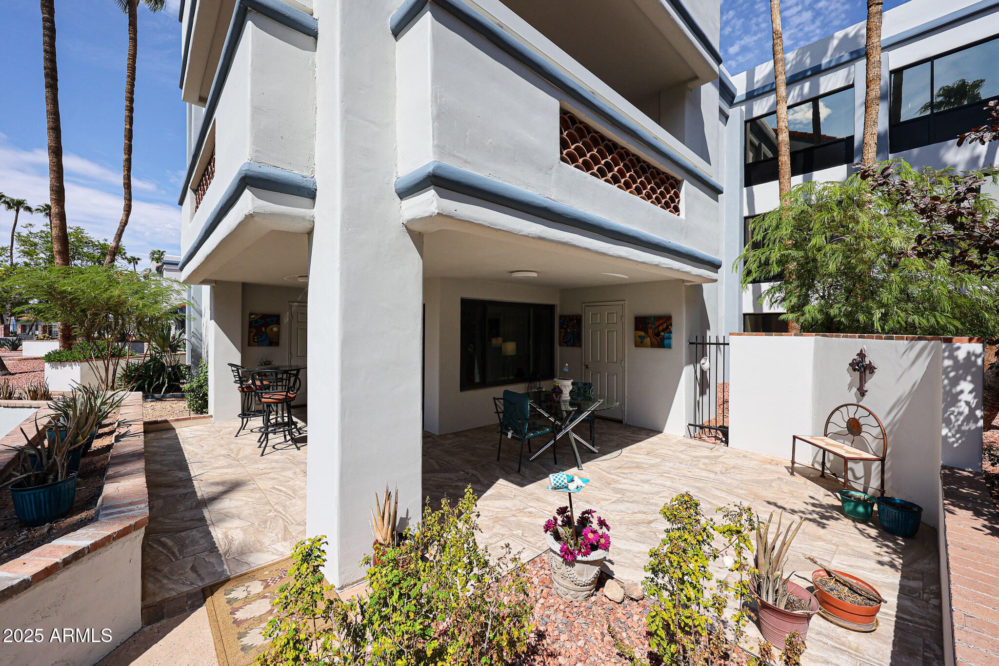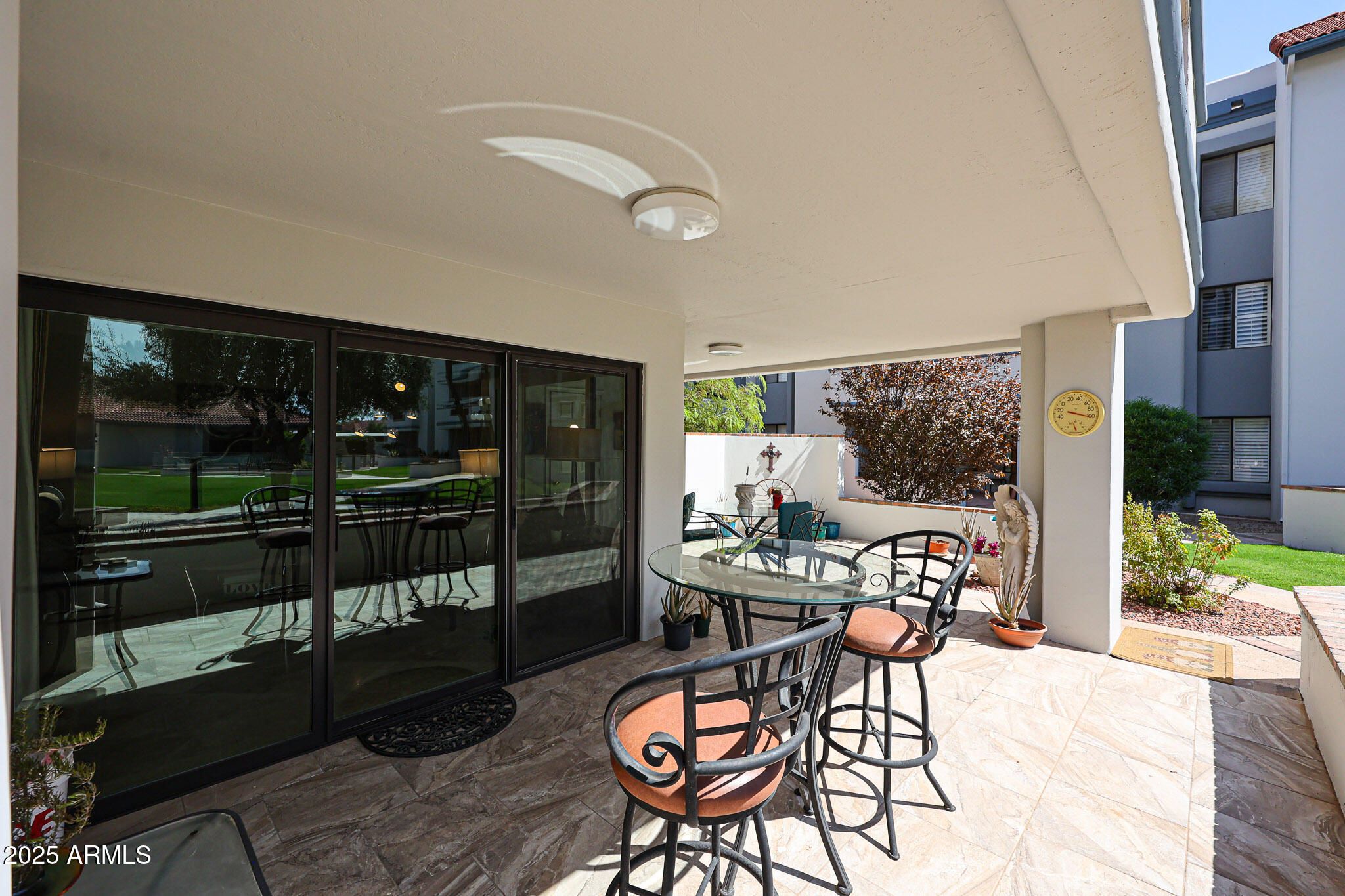 *Stunning courtyard ground floor location of this 2 bedrooms, 2 bathrooms with wrap around in this Oasis like living at The Heritage. Travertine floors throughout including shower and closet. Base boards are easy to clean. Top of line appliances including with conduction oven/microwave, induction stove top . ''Red Dragon'' granite countertops in kitchen. Primary bath totally redone with top-of-the-line Kesha Cabinets from Scottsdale (soft close), with Brazilian granite on top of cabinets. Amarine high quality faucets and lighting fixtures, Guest bathroom with upgrade sink and granite countertop. Upgraded Milgard windows and patio door from Lowes, all dual pane with extra thick glass which are a real plus. Exceptionally nice drapes and window cover. Newer A/C good condition from George Brazil. Patio has been totally retiled including separate storage and laundry located off the patio all at the same time, so everything matches. Extra heavy load washer and dry with base drawers. Very low electrical bills.