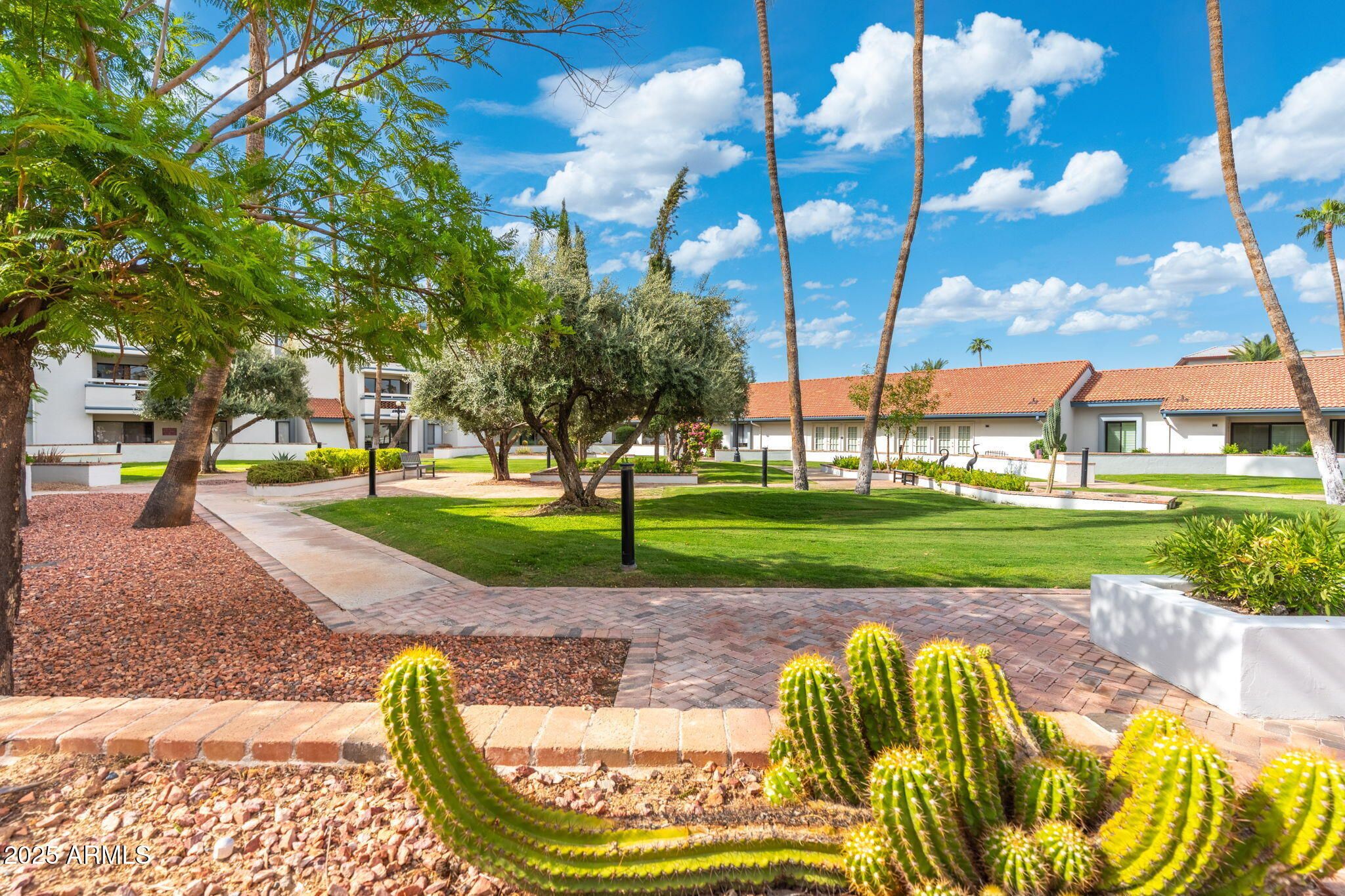 Newly updated Heritage Sun City condo. This two bedroom two bath home features stainless steel appliances, new LED lighting, a large primary bedroom with a walk in closet, fresh paint, and a large patio to enjoy the beautiful Arizona weather, The Heritage Sun City community is ready to welcome you in and share many amenities with you. Some of the amenities include: a large pool and hot tub, manicured landscaping inside of the enormous courtyard, billiards room, community rooms, a secured building, gated parking and many HOA functions that allow you to get to know your new neighbors. This first floor unit is spotless and ready for you to move right in and enjoy all that Sun City has to offer.