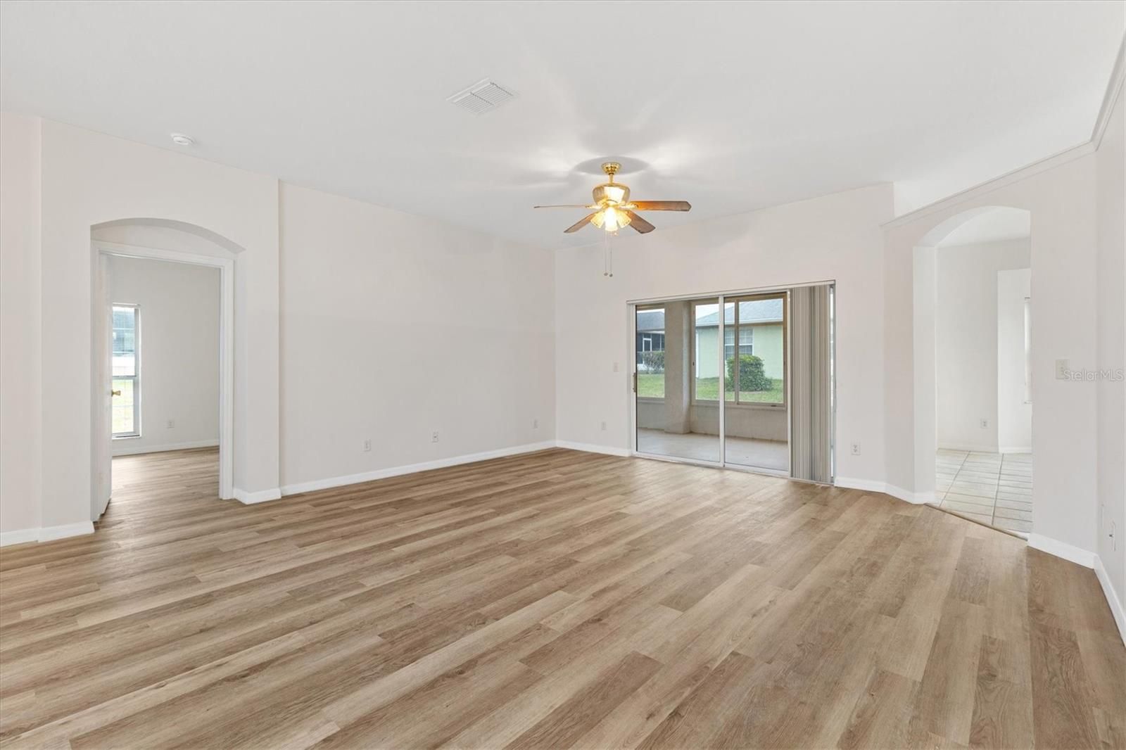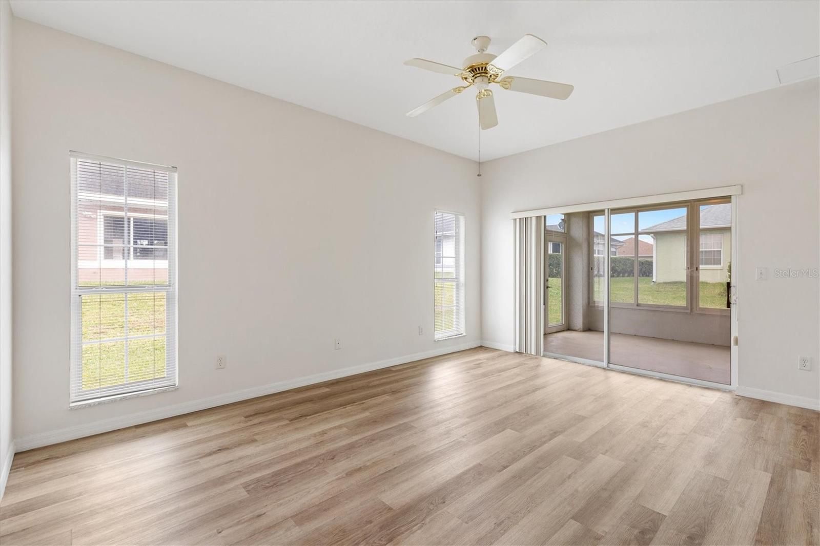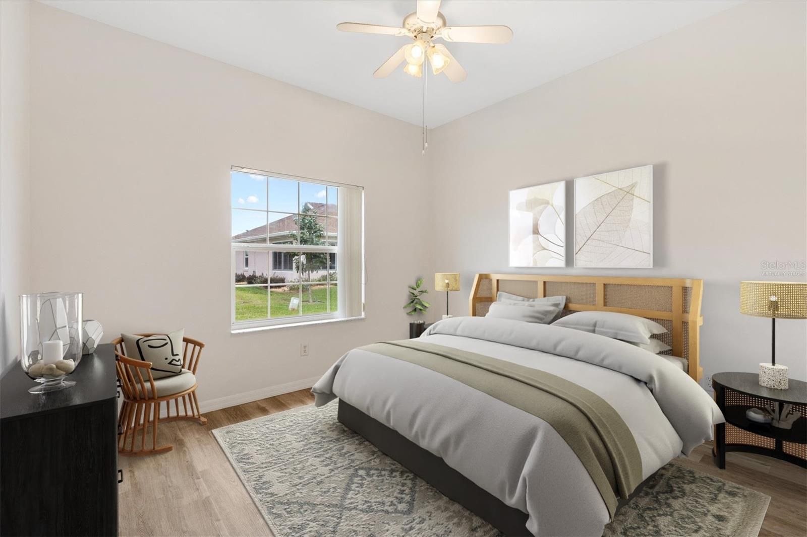 One or more photo(s) has been virtually staged. Located in the Exclusive 55+ Golf Community of STONECREST, with all the amenities, this home is bursting with NEW LIFE and ready for its next owner! The interior features BRAND NEW LVP flooring in all non-tiled areas, Fresh INTERIOR paint throughout, NEW Stainless Steel appliances, NEW comfort-height toilets in both bathrooms, an updated dining room, foyer, and kitchen lighting package, and a new ceiling fan on the lanai. With a NEW ROOF 2021, HVAC system 2018, and acrylic windows added to the lanai in 2022, the home is truly MOVE-IN ready. The desirable Captiva split floor plan includes three bedrooms, two baths, high ceilings, and a spacious, open layout constructed with durable CONCRETE, BLOCK, STUCCO and STEEL STUDS. The lanai and backyard provide additional space to create the Florida lifestyle you’ve been dreaming of, whether it's relaxing, entertaining, or enjoying the sunshine year round. Situated just minutes by golf cart from shopping, dining, and medical facilities, this property places you at the heart of convenience and comfort. Here, you’ll step into the retirement lifestyle so many dream about, don’t miss the opportunity to make it yours.