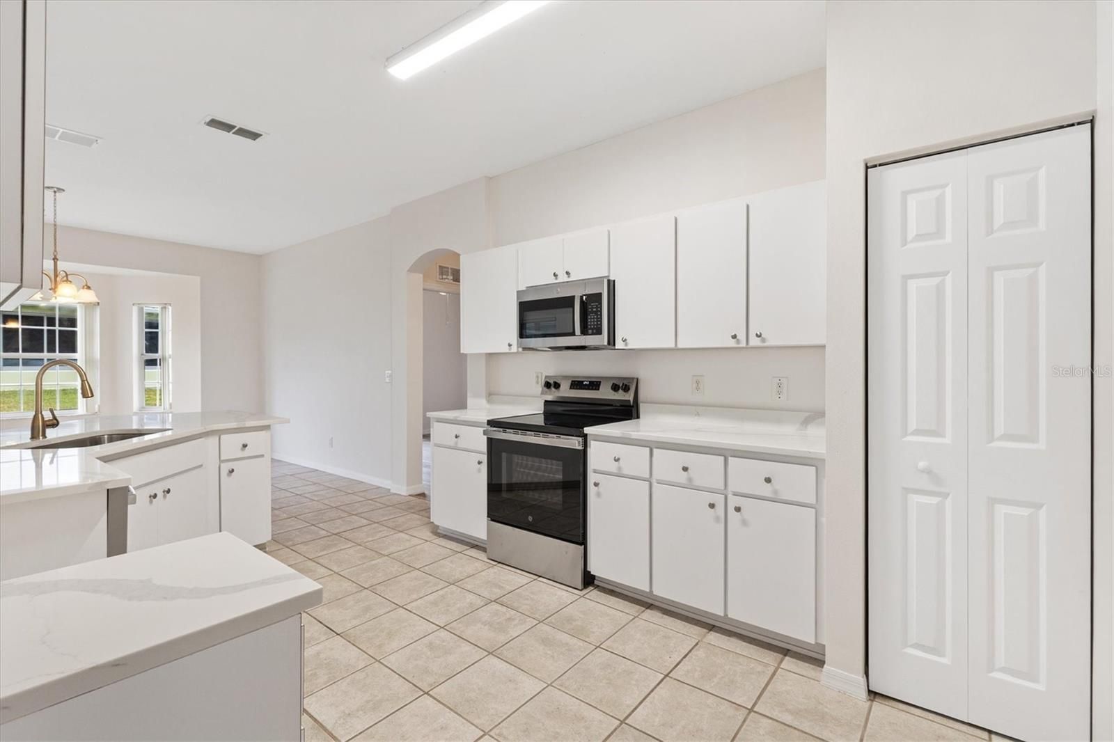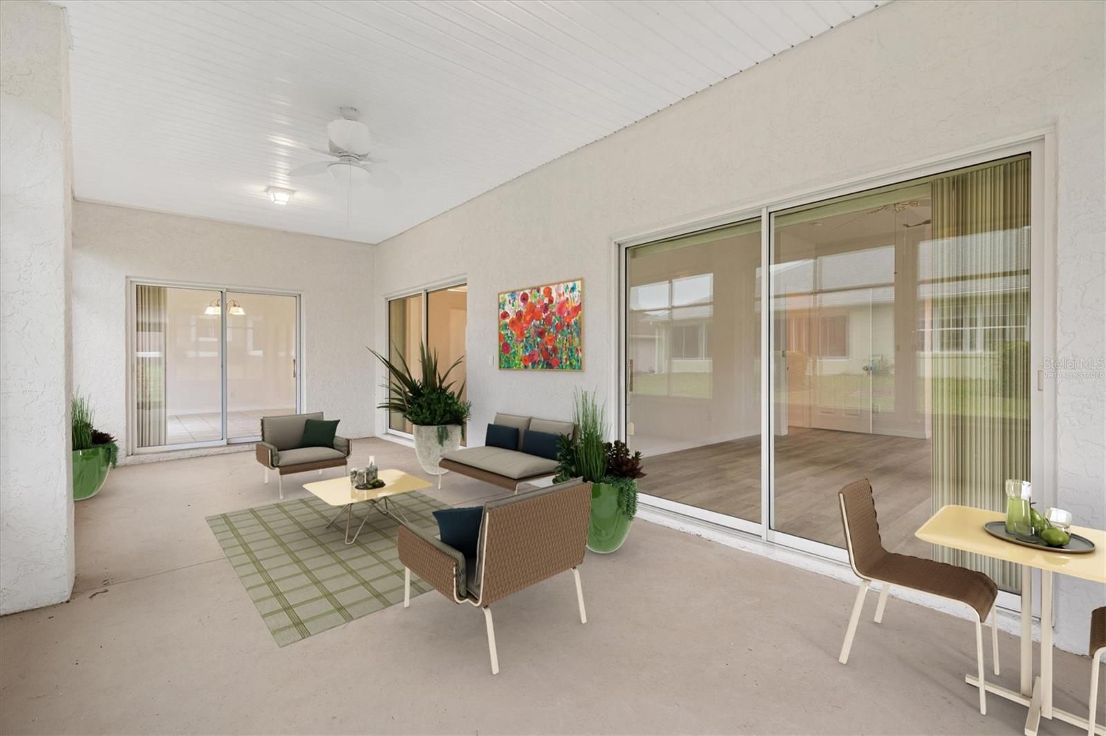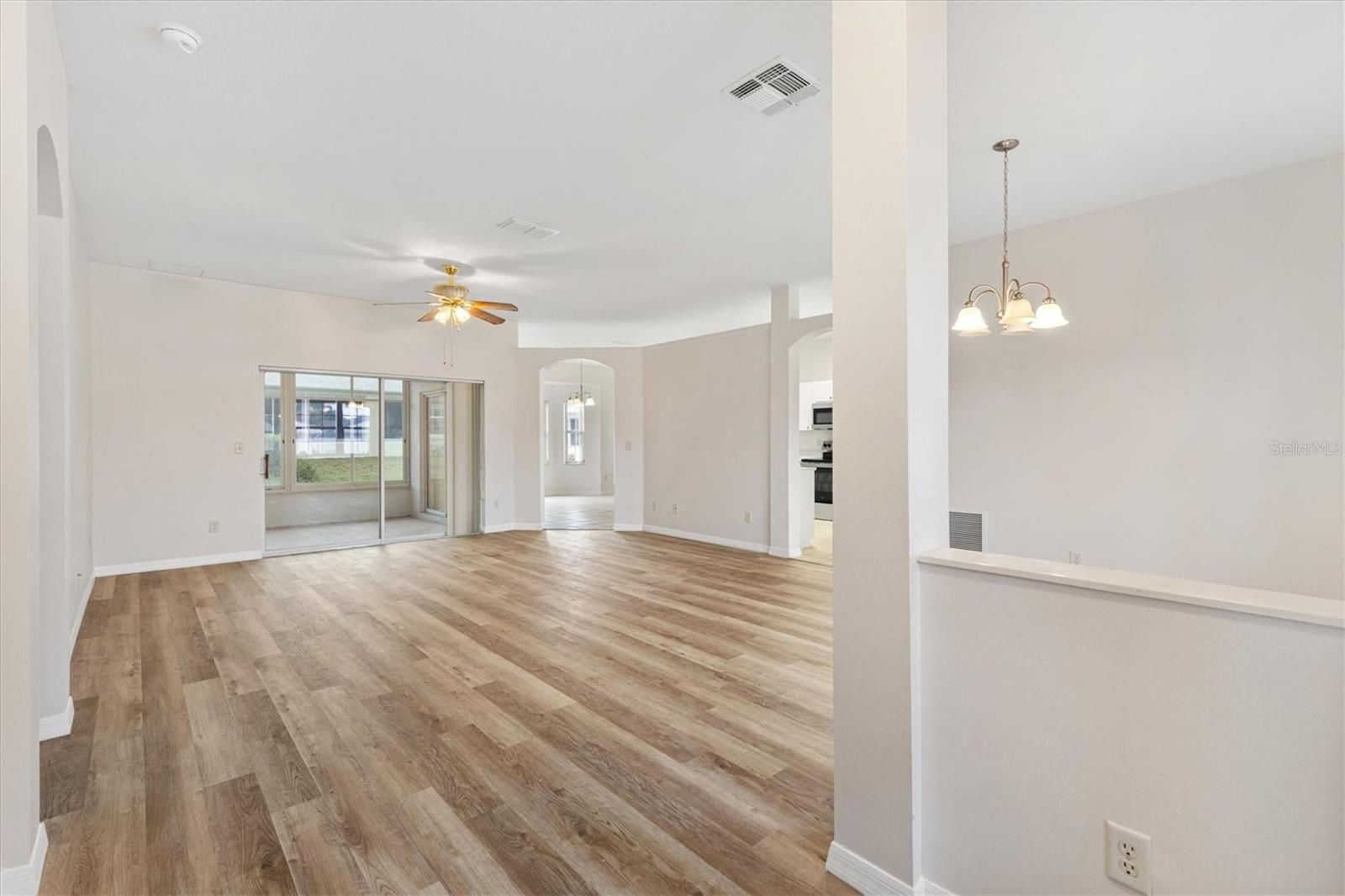 One or more photo(s) has been virtually staged. Located in the Exclusive 55+ Golf Community of STONECREST, with all the amenities, this home is bursting with NEW LIFE and ready for its next owner! The interior features BRAND NEW LVP flooring in all non-tiled areas, Fresh INTERIOR paint throughout, NEW Stainless Steel appliances, NEW comfort-height toilets in both bathrooms, an updated dining room, foyer, and kitchen lighting package, and a new ceiling fan on the lanai. With a NEW ROOF 2021, HVAC system 2018, and acrylic windows added to the lanai in 2022, the home is truly MOVE-IN ready. The desirable Captiva split floor plan includes three bedrooms, two baths, high ceilings, and a spacious, open layout constructed with durable CONCRETE, BLOCK, STUCCO and STEEL STUDS. The lanai and backyard provide additional space to create the Florida lifestyle you’ve been dreaming of, whether it's relaxing, entertaining, or enjoying the sunshine year round. Situated just minutes by golf cart from shopping, dining, and medical facilities, this property places you at the heart of convenience and comfort. Here, you’ll step into the retirement lifestyle so many dream about, don’t miss the opportunity to make it yours.