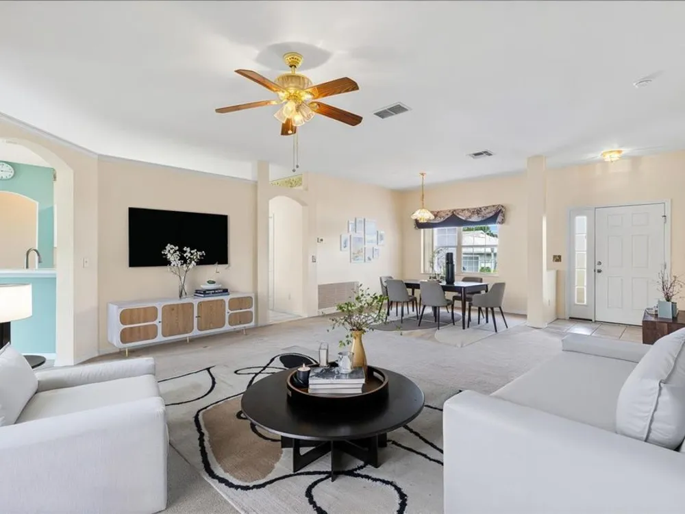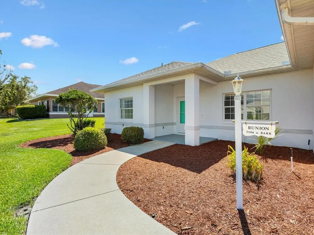 One or more photo(s) has been virtually staged. Located in the Exclusive 55+ Golf Community of STONECREST, this home is bursting with potential and ready for you to put your personal stamp on it! With recent updates already in place, NEW ROOF (2021), NEW HVAC system (2018), and NEW ACRYLIC WINDOWS on the lanai (2022), you can focus on the fun part: making it your own! The Captiva split floor plan offers 3 Bedrooms, 2 Baths, High ceilings, and a spacious layout built with durable CONCRETE/BLOCK/STUCCO with STEEL STUDS. Imagine taking this solid foundation and transforming it with your own style, whether that means creating a modern retreat, or an entertainer’s dream. The lanai and backyard provide even more space to design the Florida lifestyle you’ve been dreaming of. All this home needs is your vision and a little TLC to unlock its full charm. With shopping, dining, and medical facilities just minutes away by golf cart, you’ll not only be customizing a house, you’ll be stepping into a lifestyle. Don’t miss the chance to turn this blank canvas into your perfect retirement haven!