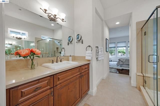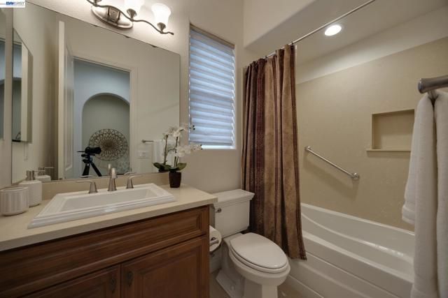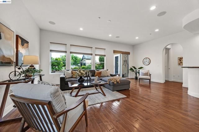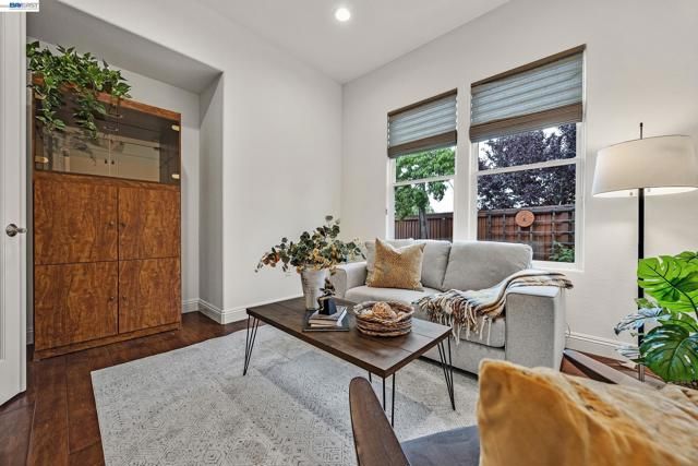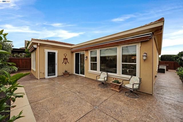 Highly upgraded Costa Dorada model offering 1,946 sq ft with over $100,000 in original builder upgrades. Freshly painted interior (April 2026) creates a light, bright, move-in-ready feel. The home features premium Anderson Maple hardwood flooring, Hunter Douglas custom blinds, and a versatile smart space with built-in cabinetry perfect for a home office, hobby area, or additional storage. Enjoy modern conveniences, including a central vacuum system and home theater pre-wire. Step outside to a beautifully landscaped front and backyard, complete with two electric shade overhangs and retractable blinds for comfortable outdoor living year-round. Owned solar adds efficiency and long-term savings. The garage is equally impressive with built-in cabinets and a dedicated workbench for added functionality. Quality finishes and thoughtful upgrades throughout make this home truly stand out. A detailed list of upgrades is available in the disclosures for buyer review. Residents enjoy access to Club Los Meganos with indoor/outdoor pools, fitness center, pickleball, tennis, on-site dining, and a full calendar of social activities.