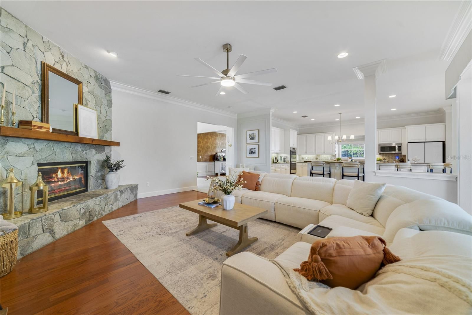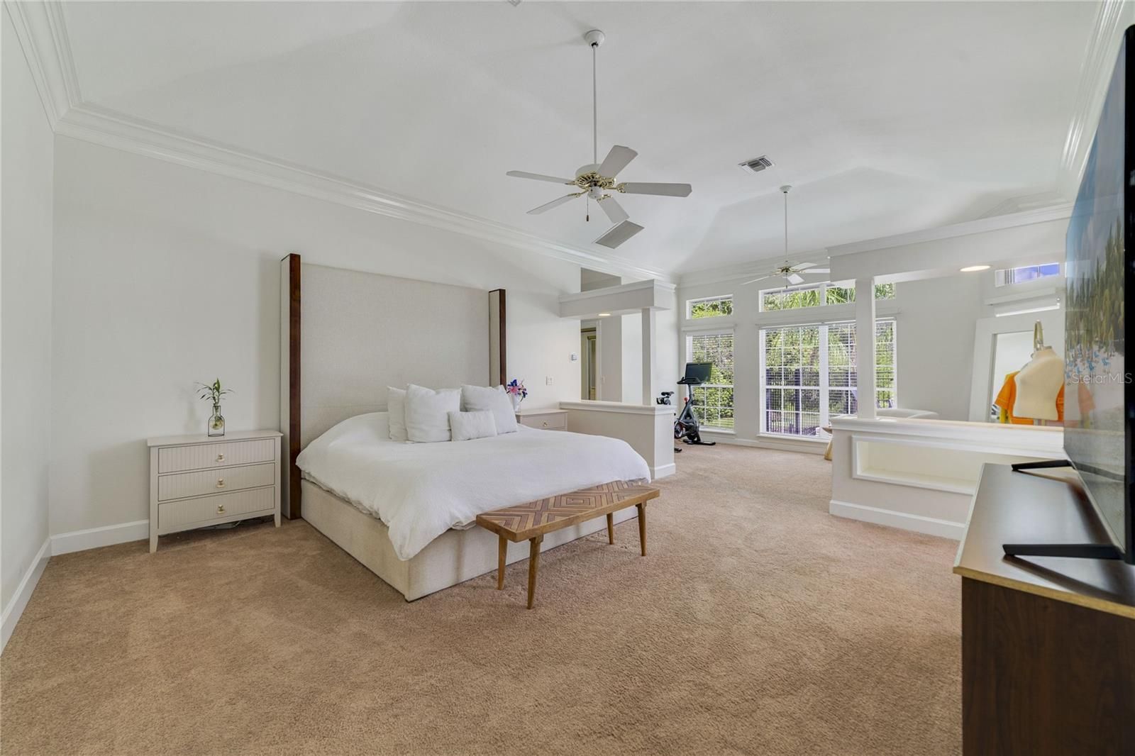- Built-in Features, Cathedral Ceiling(s), Crown Molding, Eat-in Kitchen, High Ceilings, Kitchen/Family Room Combo, Open Floorplan, Walk-In Closet(s), Wet Bar