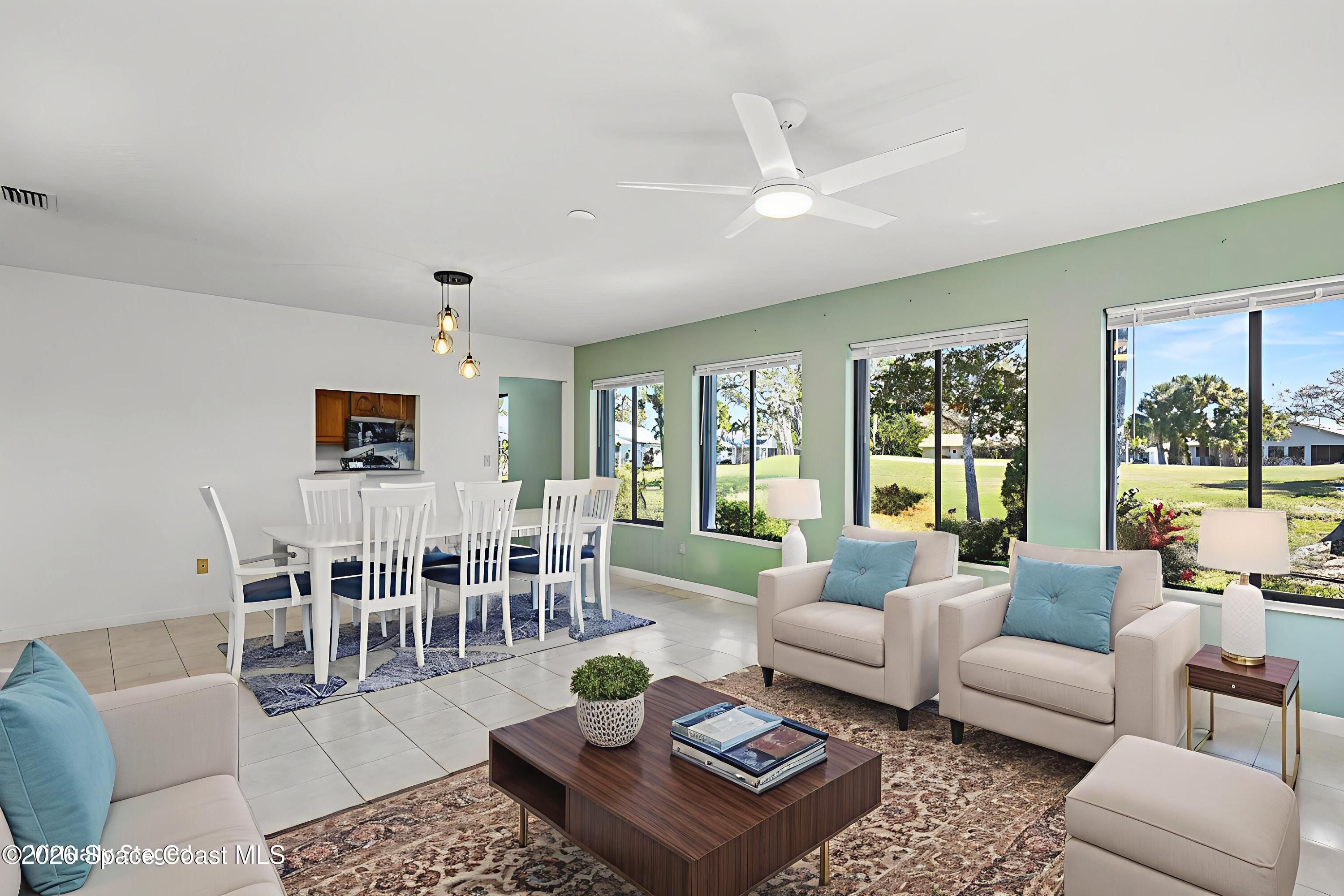Discover resort-style living in this charming Concord model, perfectly situated in a prestigious country club community offering top-tier amenities for an exceptional Florida lifestyle. Enjoy beautiful WATER and GOLF views, along with a newer roof (2022) for peace of mind. The spacious great room features vaulted ceilings, while the extended Florida Room provides additional space to relax or entertain. Highlights include an indoor laundry room, large walk-in pantry, split floor plan, and accordion shutters for storm protection. Nicely landscaped and move-in ready—schedule your private showing today! Home to over 600 military veterans, Indian River Colony Club is a private 55+ country club community offering a unique blend of camaraderie, comfort, and care. Residents enjoy an extensive home maintenance program and access to exceptional amenities, including an 18-hole golf course, fine dining with an executive chef, the casual 19th Hole restaurant and bar, fitness center, heated pool, tennis, croquet, bocce ball, shuffleboard, and more. This pet-friendly, gated community boasts over 60 social and activity groupsmaking every day feel like a vacation.