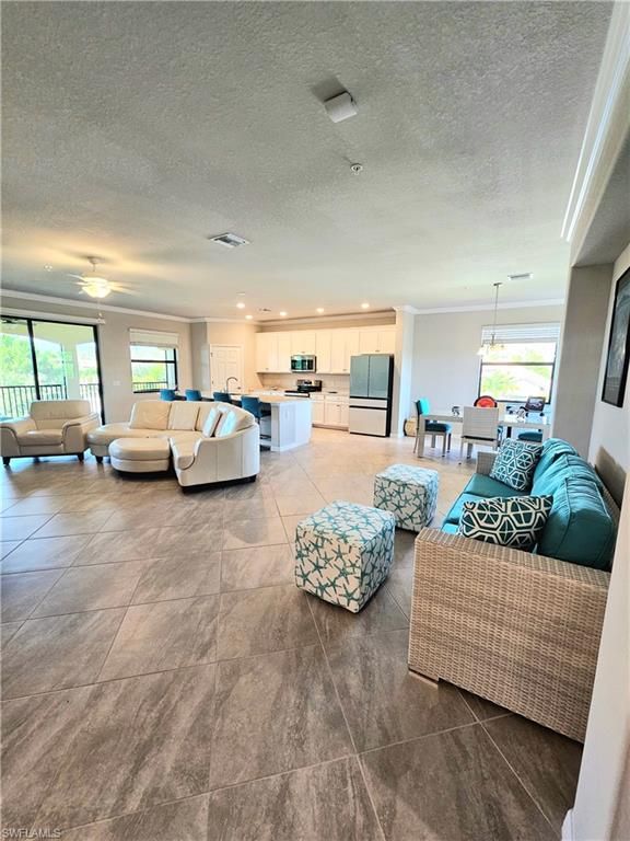 This is the one you've been waiting for!!! Absolutely IMMACULATE upper level coach home located at the very end of the street with fantastic westerly SUNSET VIEWS overlooking the lake! Pride of ownership shows throughout this spectacular home. From the moment you walk in to the grand staircase with fresh high end carpeting, you know you are in for a treat. As you ascend the stairs into the great room, you are greeted by abounding light and a spacious open floor plan with a HUGE island, walk-in pantry, two closets, and GORGEOUS CUSTOM Samsung refrigerator and dishwasher which do convey with the home. Then you cannot help but be captivated by the views from your expansive 275 square foot LANAI which is accessible from both the living room and the primary suite. As you enter the primary suite, you will notice the perfectly matched tile which continues throughout the entire upper living space, giving great continuity throughout this home. The suite contains not one, but TWO of the best walk in closets you've seen in any home. Then there is the primary bath...WOW...the GIANT shower, not just two sinks, but two separate vanities with tons of storage and separate water closet complete this private oasis. Then across the great room you will find the "GUEST WING" containing a full bath, two oversized tiled bedrooms with walk in closets, and a laundry room with a new LG washer and a higher efficiency HVAC unit installed in 2025. These homeowners did not forget the 3 CAR tandem garage in their need for clean! It has been finished with custom turquoise and black epoxy, and the fridge is included! This home includes the social membership to all of Bonita National's fabulous amenities including: 4 swimming pools, 2 restaurants, state of the art gym, pilates studio, spa, a very active TENNIS program with pro shop, off season golf privileges, and coming soon...PICKLEBALL and BOCCE BALL. Don't delay, schedule your private showing today so you can join us in this amazing active community where lifelong friendships are made!