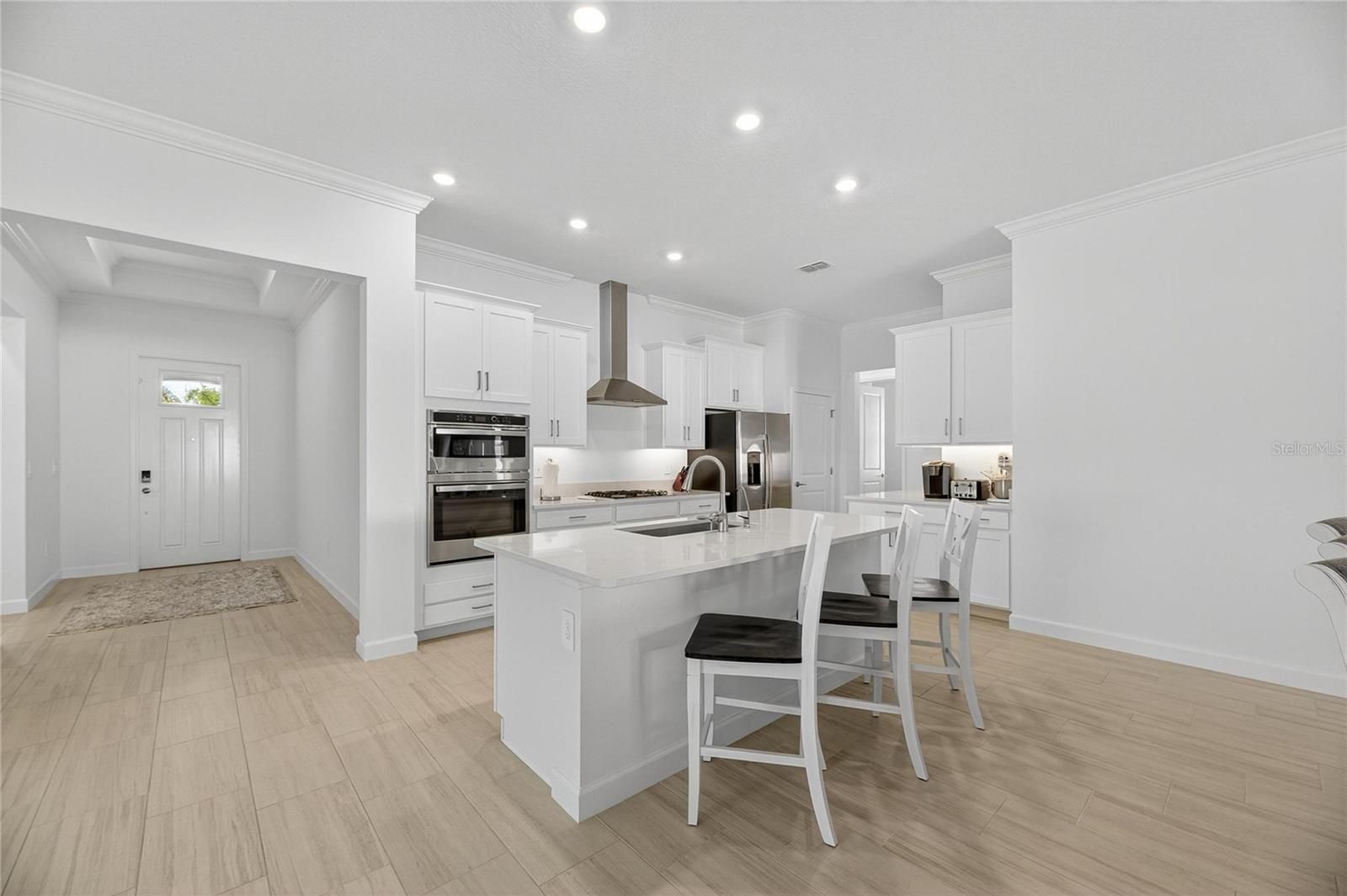 Welcome home to this beautifully upgraded residence at 17415 Holly Well Ave. Nestled in a vibrant and well-connected community just south of Tampa, this home offers modern luxury, vaulted tray ceilings and designer finishes from floor to ceiling. The inviting open-concept layout flows effortlessly from the gourmet kitchen into a bright and spacious great room where family and friends will gather with ease. The heart of the home is the chef-inspired kitchen, anchored by a generous island and quartz countertops, tall shaker cabinetry, stainless-steel appliances and a dedicated butler’s pantry that expands your prep space and storage. Adjacent, a walk-in pantry ensures every detail is covered. The wood-look tile flooring spans the main living areas, lending warmth and continuity while making maintenance simple. Three private bedroom suites provide comfort and flexibility, with the primary retreat designed for total relaxation. The master bedroom features a tray ceiling, plush carpeting and a window that invites natural light without sacrificing privacy. Once inside, you’ll step into the spa-inspired master bath, a soaking tub and oversized walk-in shower, dual vanities with elegant fixtures, and a custom closet that conveniently connects directly to the laundry room. Whether it’s settling in at the end of the day or entertaining, the design emphasizes flow and ease. Outside, the covered lanai overlooks a generous backyard, offering a tranquil setting for morning coffee or an evening wind-down. With plenty of space to personalize the outdoor area, this home invites you to enjoy both ease and potential. The oversized three-car garage (2-car + golf-cart capacity) offers abundant storage and workshop potential thanks to a walk-up attic space. Positioned for convenience, the home is minutes from dining and shopping in Wimauma and Sun City Center. Local favorites include SOL Mexican Restaurante and Don Julio’s Wimauma. For healthcare and peace of mind, the area is served by the full-service HCA Florida South Shore Hospital in Sun City Center, offering 24/7 emergency care and advanced services. Easy access to major roadways places the excitement of Tampa and Gulf Coast beaches within reach, while preserving the peaceful, suburban-Florida backdrop you’ll love. Whether you’re entertaining in the chic kitchen and open living area, relaxing in the luxurious master suite, or enjoying the expansive lot and garage space, this home checks every box for today’s lifestyle. Don’t miss the opportunity to call this turnkey retreat your own. Schedule your private showing today!