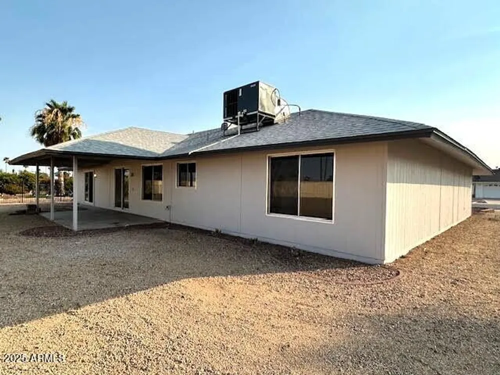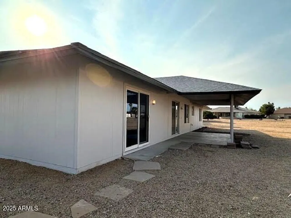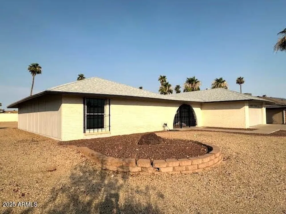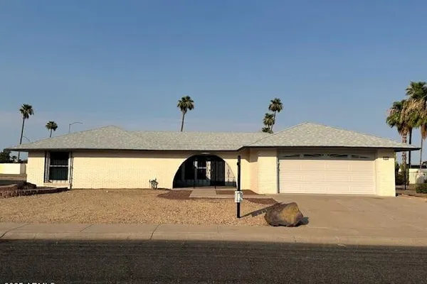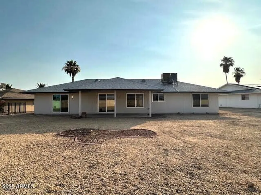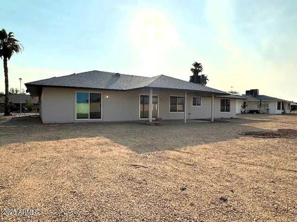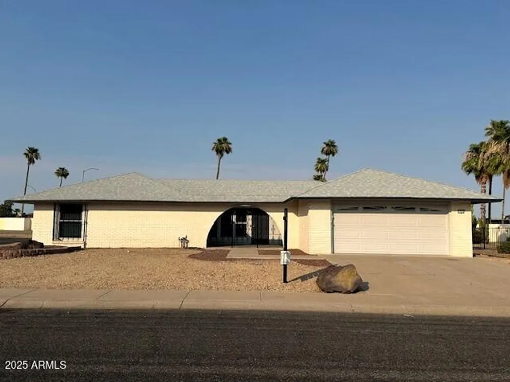Affordable, rare 3BD/2BT ''Castillo'' model home on a large lot! Thoughtful updates throughout, including New Exterior Paint, NEW Laminate flooring, NEW Tall Baseboards, NEW Interior Paint, NEW LED Lighting, Refreshed Bathrooms & Kitchen w/Farmhouse Sink. The large living area offers a warm yet flexible, inviting space perfect for everyday living or entertaining. All 3 Bedrooms have Walk in Closets, with NEW LED Lighted Ceiling Fans. Enjoy the expansive backyard—ideal for outdoor dining, play, or gardening - there's even room for a pool addition. The Tandem Garage can accommodate 2 cars and a Golf Cart. Plus - newer Roof and Heat pump. Solar loan to be paid off by seller at closing. Move-in ready! Close to all the amenities Sun City West has to offer. Enjoy 55+ living at its best!