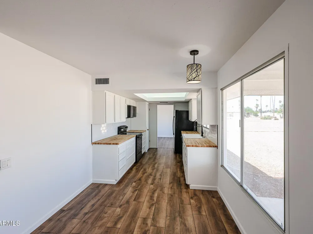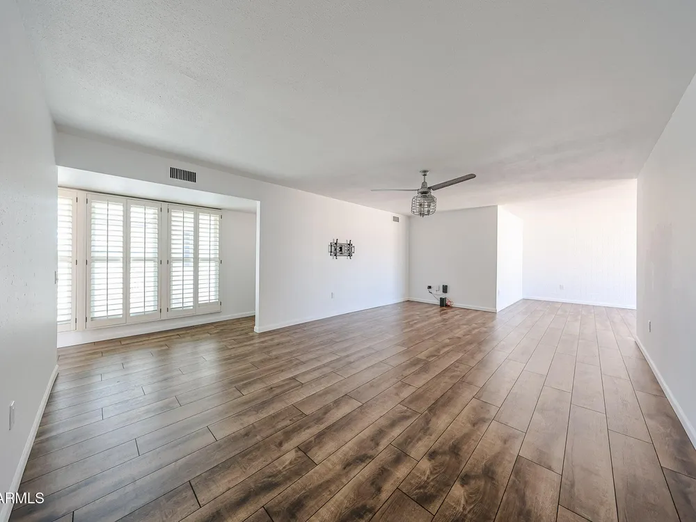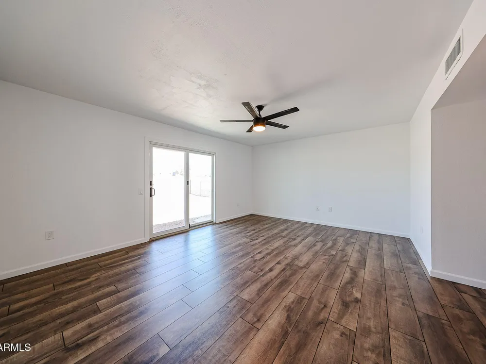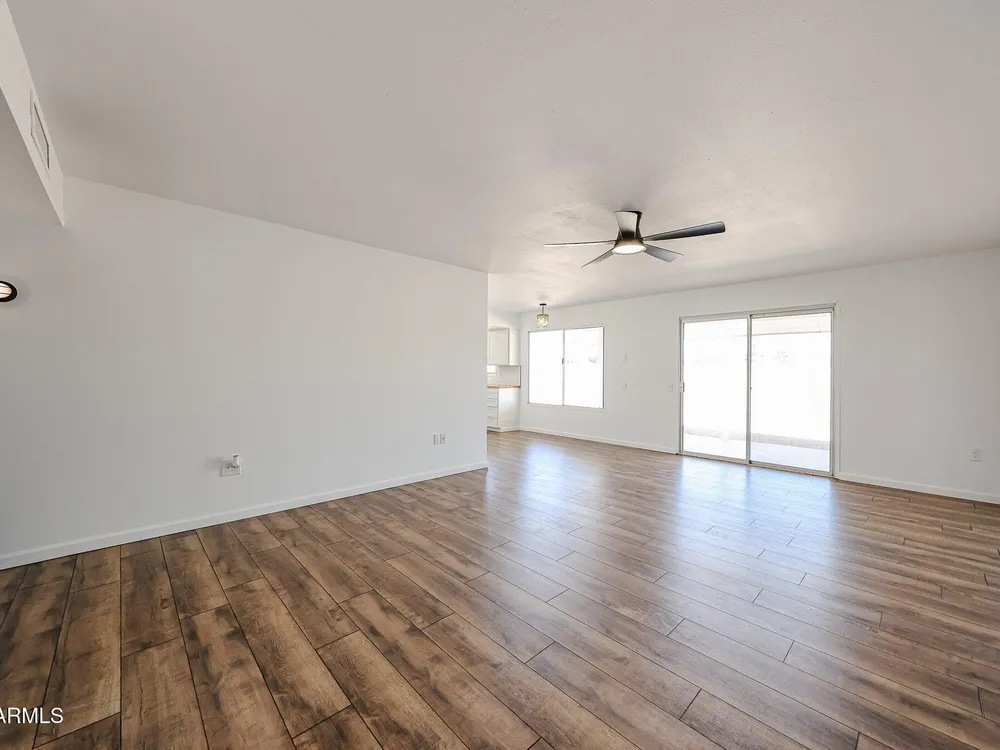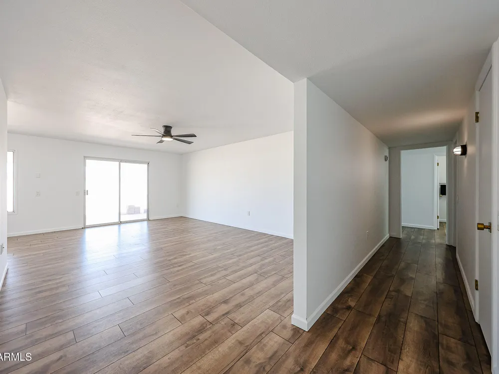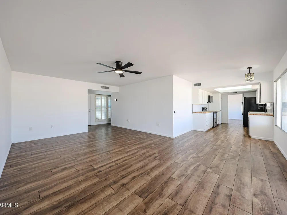 Affordable, rare 3BD/2BT ''Castillo'' model home on a large lot! Thoughtful updates throughout, including New Exterior Paint, NEW Laminate flooring, NEW Tall Baseboards, NEW Interior Paint, NEW LED Lighting, Refreshed Bathrooms & Kitchen w/Farmhouse Sink. The large living area offers a warm yet flexible, inviting space perfect for everyday living or entertaining. All 3 Bedrooms have Walk in Closets, with NEW LED Lighted Ceiling Fans. Enjoy the expansive backyard—ideal for outdoor dining, play, or gardening - there's even room for a pool addition. The Tandem Garage can accommodate 2 cars and a Golf Cart. Plus - newer Roof and Heat pump. Solar loan to be paid off by seller at closing. Move-in ready! Close to all the amenities Sun City West has to offer. Enjoy 55+ living at its best!
