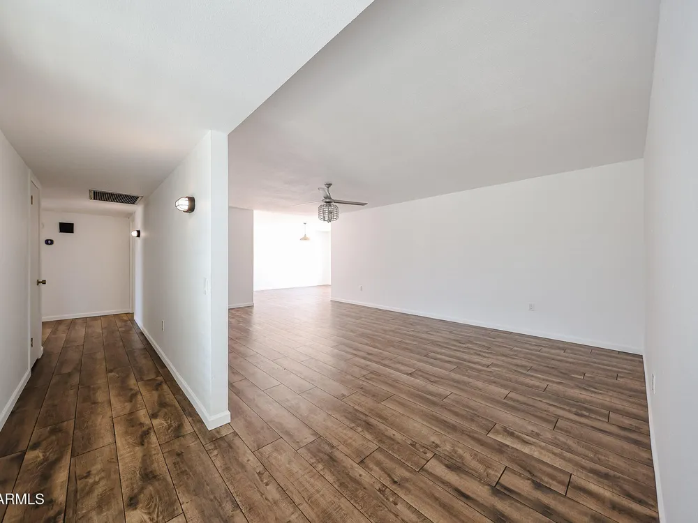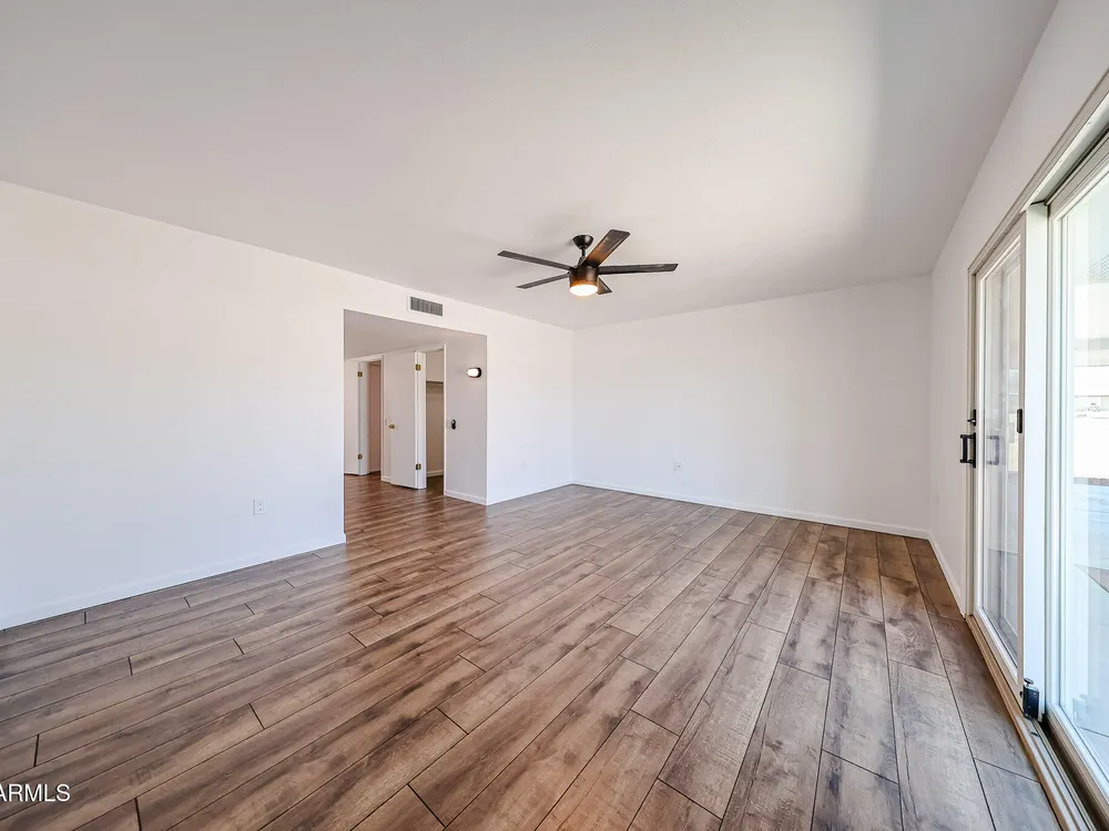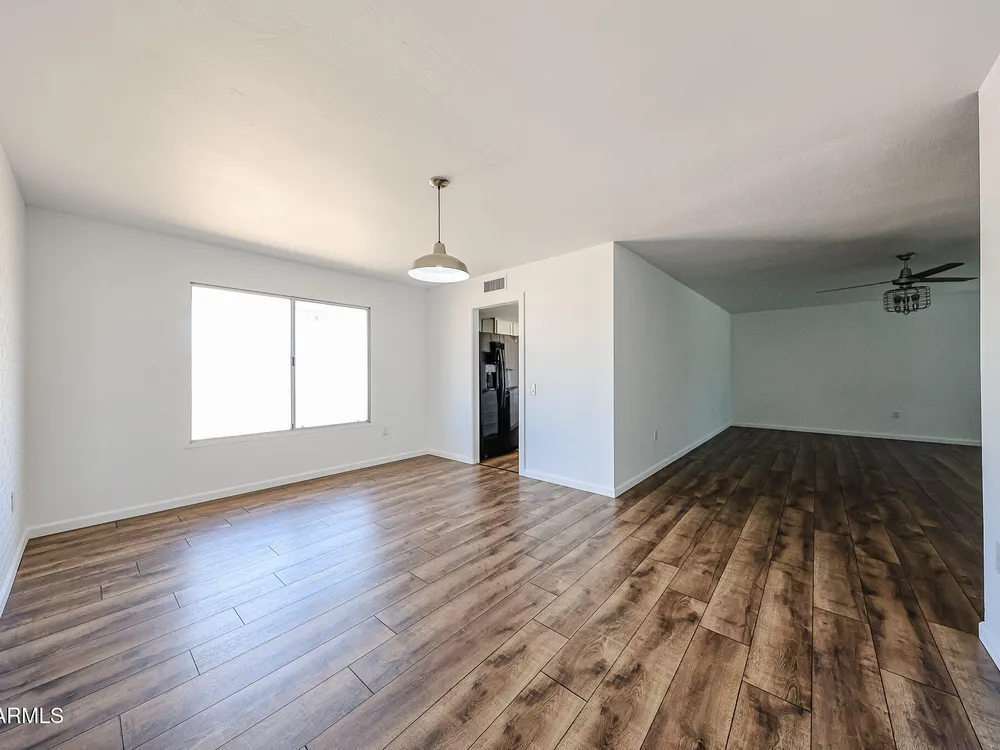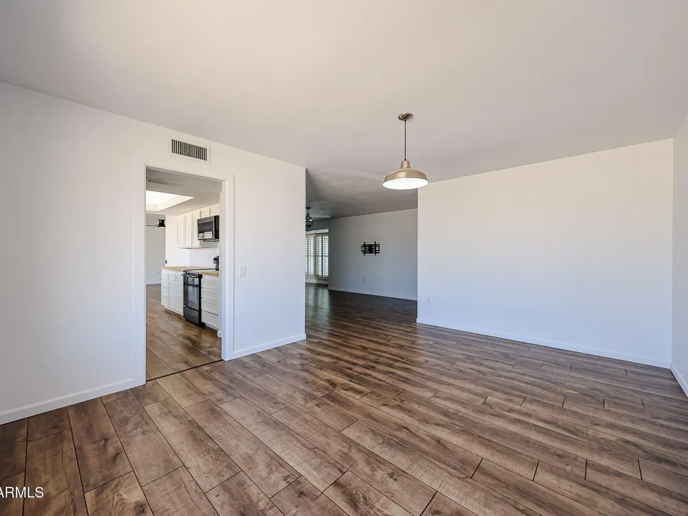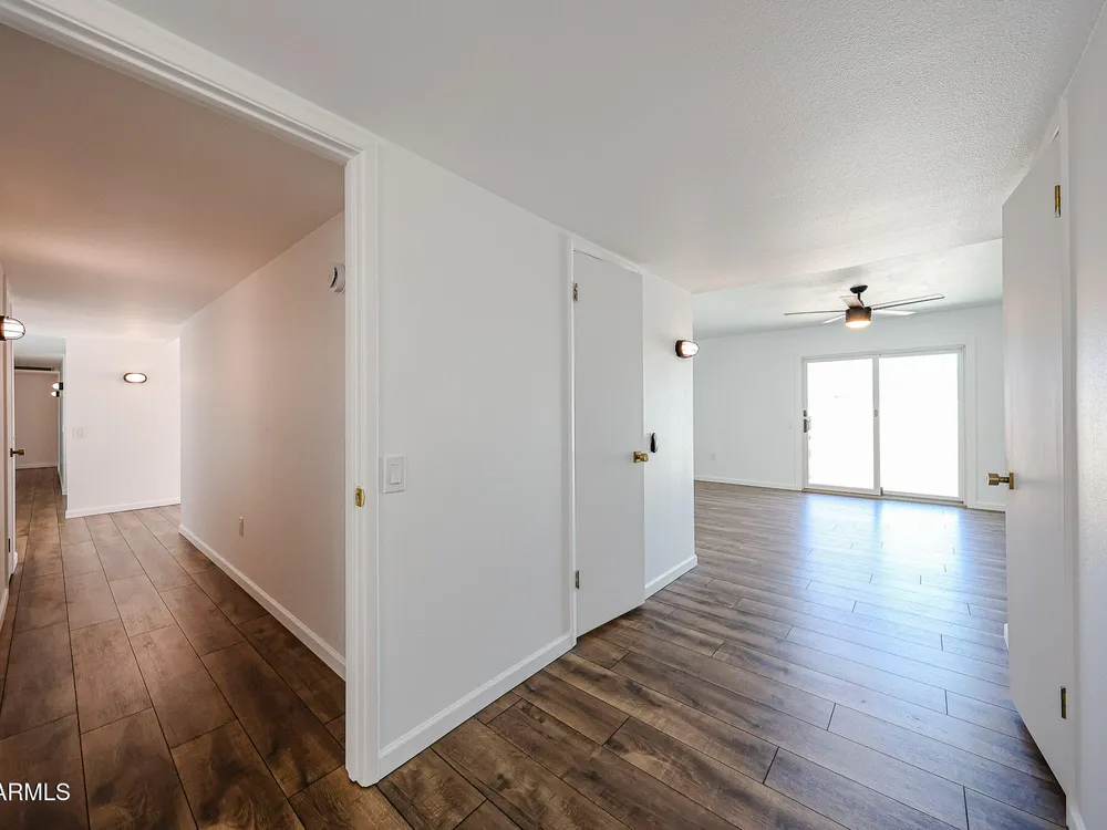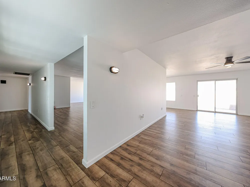 Affordable, rare 3BD/2BT ''Castillo'' model home on a large lot! Thoughtful updates throughout, including New Exterior Paint, NEW Laminate flooring, NEW Tall Baseboards, NEW Interior Paint, NEW LED Lighting, Refreshed Bathrooms & Kitchen w/Farmhouse Sink. The large living area offers a warm yet flexible, inviting space perfect for everyday living or entertaining. All 3 Bedrooms have Walk in Closets, with NEW LED Lighted Ceiling Fans. Enjoy the expansive backyard—ideal for outdoor dining, play, or gardening - there's even room for a pool addition. The Tandem Garage can accommodate 2 cars and a Golf Cart. Plus - newer Roof and Heat pump. Solar loan to be paid off by seller at closing. Move-in ready! Close to all the amenities Sun City West has to offer. Enjoy 55+ living at its best!