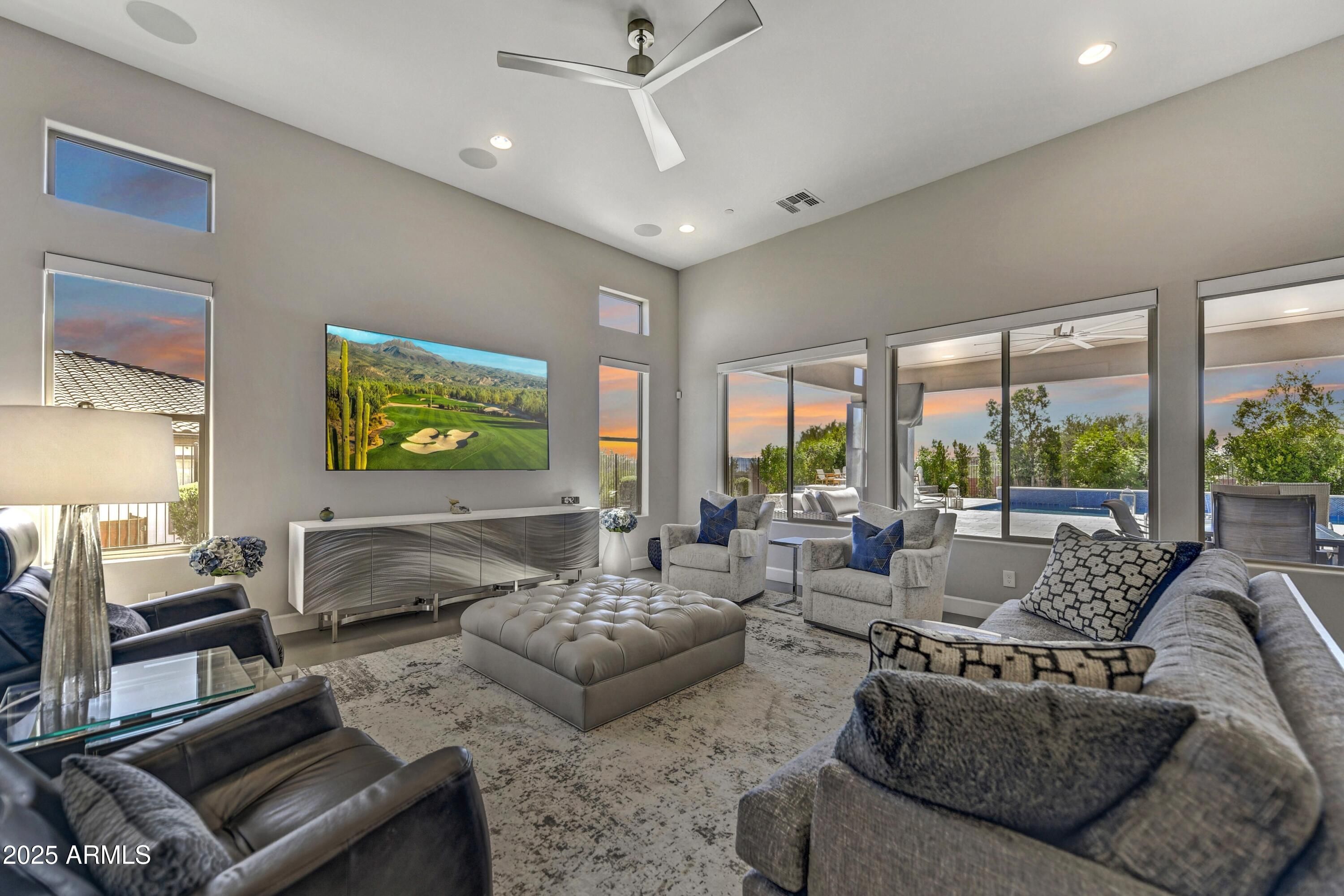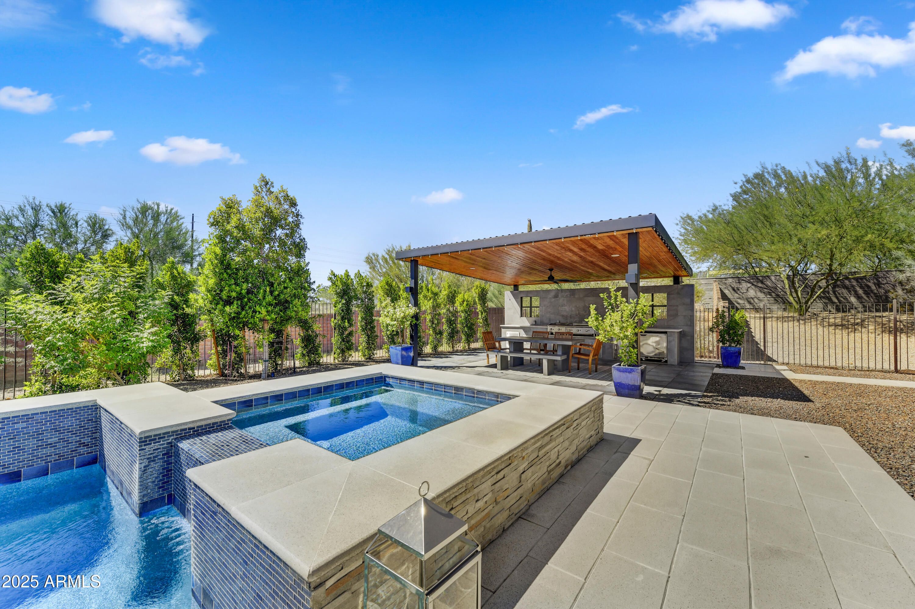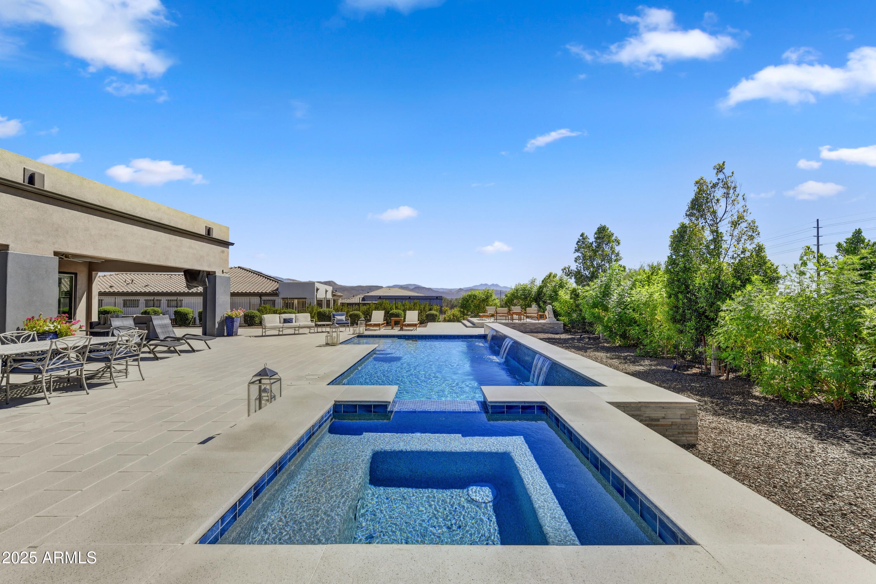 WATCH THE SUNRISE OVER FOUR PEAKS EACH MORNING! This stunning 2021 built Dorado Model with a Guest Casita offers 3480 sq. ft of living space featuring 3 en-suites. 3.5 baths, plus a separate Casita living space with built-in kitchen and sits on 16,800+sf one of the larger lots in the prestigious Trilogy at Verde River. Beautifully designed with luxurious upgrades the Chef's Kitchen showcases upgraded GE Monogram appliances expansive leather-finish granite countertops, custom lighting, decorative tile backsplash and a spacious walk-in pantry. Primary suite is generously sized and offers a walk-in closet, double sinks, custom lighted mirrors and a walk-in shower. The adjacent personal retreat room offers the perfect space for exercise, music, hobby room or relaxation. Din ing room that seats 12 guests beneath 2 crystal chandeliers complete with built-in wine rack & wine cooler expands with the multi-slide doors opening to the covered travertine patio. Enjoy resort-style amenities right at home, including a massive 17,000 gallon heated lap Pool and Spa, elegant Water Feature, gas Firepit & covered Outdoor Kitchen equipped w/commercial-grade burners, a char broiler, coolers & a large BBQ griddle. The outdoor area with oversized covered patio, real grass area, custom outdoor lighting & extended pavers is a true extension of the home for entertainment and to savor stunning views of Four Peaks and Majestic Sunsets! This exquisite home provides Resort Living at it's finest! Other notable features include a 3 car garage with storage, propane gas water heater, whole house hot water circulation, soft water and reverse osmosis system and a comprehensive security system. Experience the ultimate in Luxury Resort Living! This home is STUNNING - Inside and Out! Trilogy at Verde River offers upscale Resort living at its finest and the very best of all possible worlds, close to the conveniences of affluent North Scottsdale, yet secreted within the pristine privacy of the Sonoran Desert. The amenities are World Class with Tom Lehman inspired eighteen-hole Golf course, tennis courts, pickle ball courts, and bocce ball, heated lap pool and Resort style swimming pool, hot tub, Afterburn fitness center, Helen's demonstration Kitchen for cooking classes and a 7.5 acre dog park. The community center has casual poolside dining at Eddy's Diner and gourmet dining at award-winning Needle Rock Kitchen and Tap, Alvea Spa with full-service Salon and Spa amenities, Art Loft and events center. Trilogy at Verde River is adjacent to the Tonto National Forest and is situated in the middle of miles and miles of hiking and biking trails. Whether you're seeking a second, winter home, or will live here year-round, Trilogy at Verde River is an ideal distance from the hustle and bustle of North Scottsdale. You'll love the Resort living! What memories will you make?