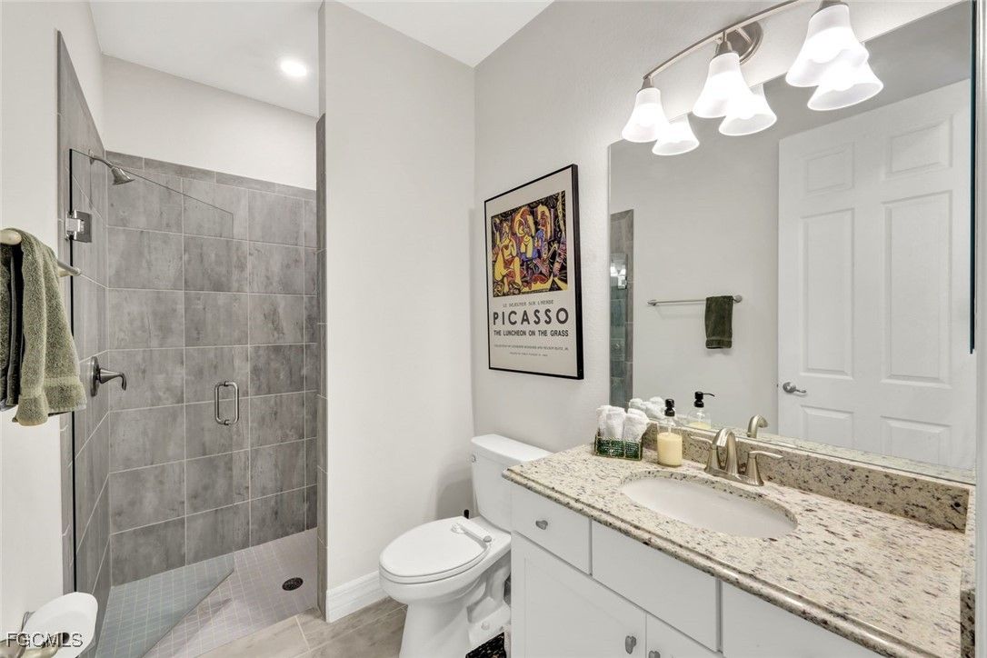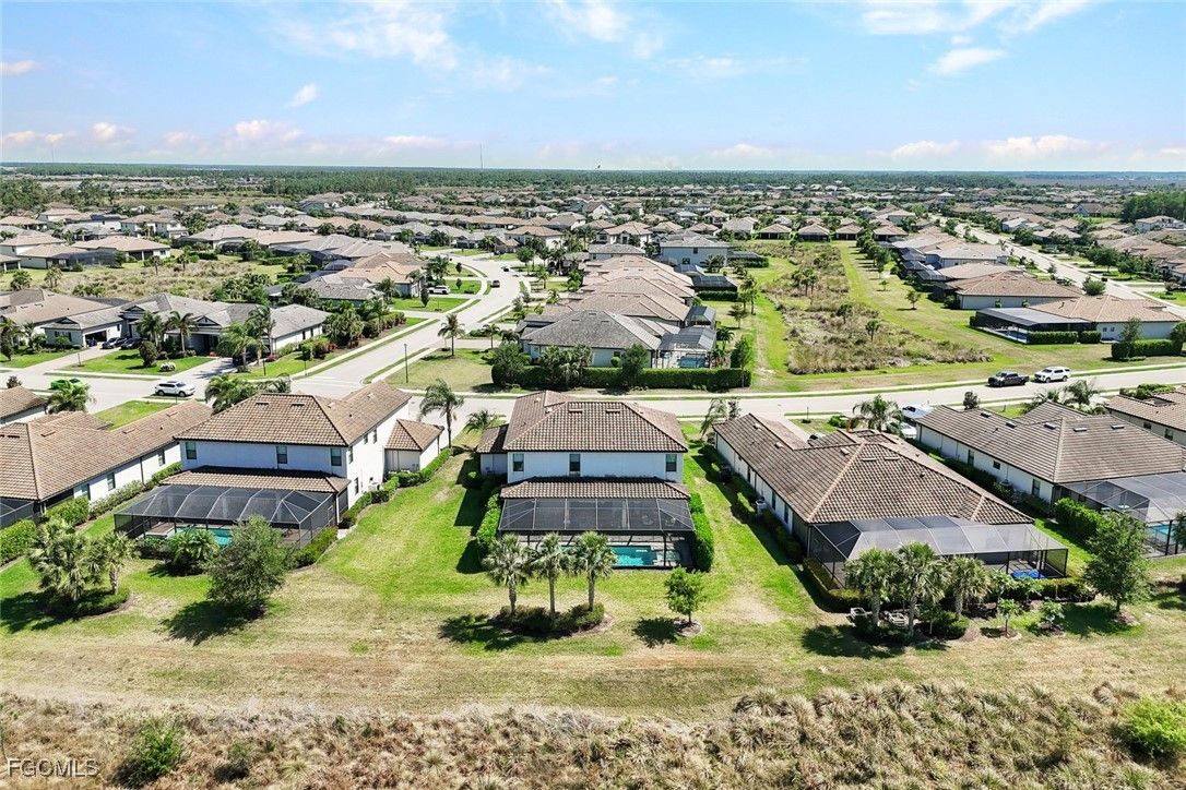 Welcome to this stunning pool home on one of the largest lots in sought-after The Place at Corkscrew! This spacious five-bedroom plus bonus room, three-bath residence offers an impressive 3,464 square feet of expansive, intentional design for modern lifestyles. The first floor offers seamless flow between spaces, ideal for everyday living and entertaining. The heart of the home is the bright and open kitchen, featuring classic white shaker wood cabinets, stainless steel appliances, granite countertops with a breakfast area just a short distance away. A formal dining room provides a setting for hosting dinners and gatherings, while a versatile den space can easily serve as a home office, library or additional living area. A private guest room on the main level is conveniently next to a full bath with a walk-in shower, ideal for visitors or multi-generational living. Designed for function and flair, the family room is a must-see highlight with a stunning tray ceiling, custom fireplace and pocket sliding doors that seamlessly connect indoor-outdoor living. Upstairs, the thoughtful layout continues with a large, inviting primary suite featuring an en-suite bath with separate shower, soaking tub and two generous walk-in closets for optimal storage and comfort. Three additional bedrooms offer plenty of room and flexibility for family or guests. A large loft adds even more living space, ideal as a game room, reading nook or play area. And don’t miss the huge bonus room, with custom built-in cabinetry and a mini refrigerator, an ideal spot for an entertainment lounge or hobby room. Go outside to your private outdoor oasis, complete with a modern pool and spa with plenty of under-truss area to relax. The large screened-in patio includes a picture frame enclosure, providing you with tranquil views of the preserve, which make every day feel like a getaway. On a large lot with ample space between neighbors, you’ll enjoy privacy and peace in this serene setting. Whether you're soaking in your poolside lounge chair or enjoying nature in your backyard, this home offers a blend of luxury, comfort and functionality. Enjoy resort-style living in a community known for its top-tier amenities, friendly atmosphere and unbeatable location. Don't miss this rare opportunity to own a move-in-ready home in one of Southwest Florida's most desirable neighborhoods.