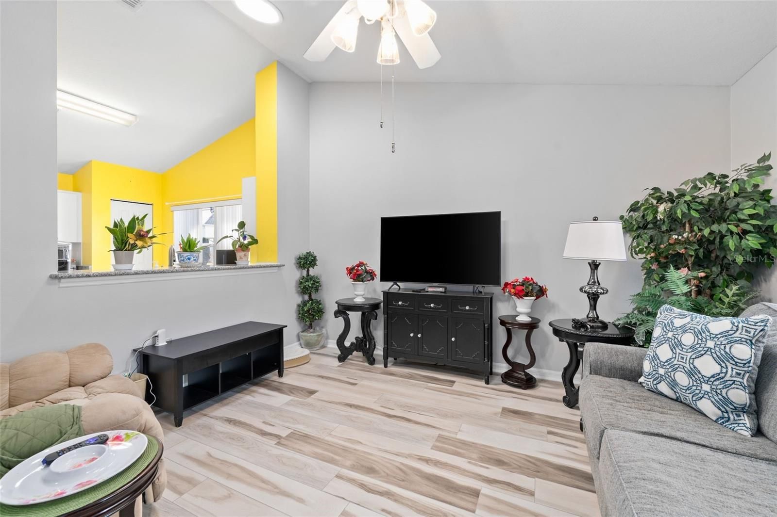 - Ceiling Fan(s), High Ceilings, Kitchen/Family Room Combo, Open Floorplan, Thermostat, Walk-In Closet(s), Window Treatments