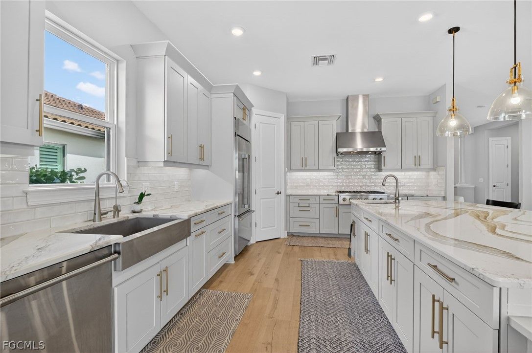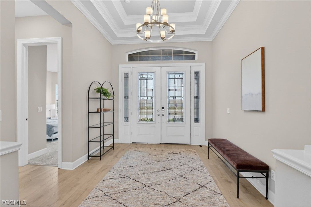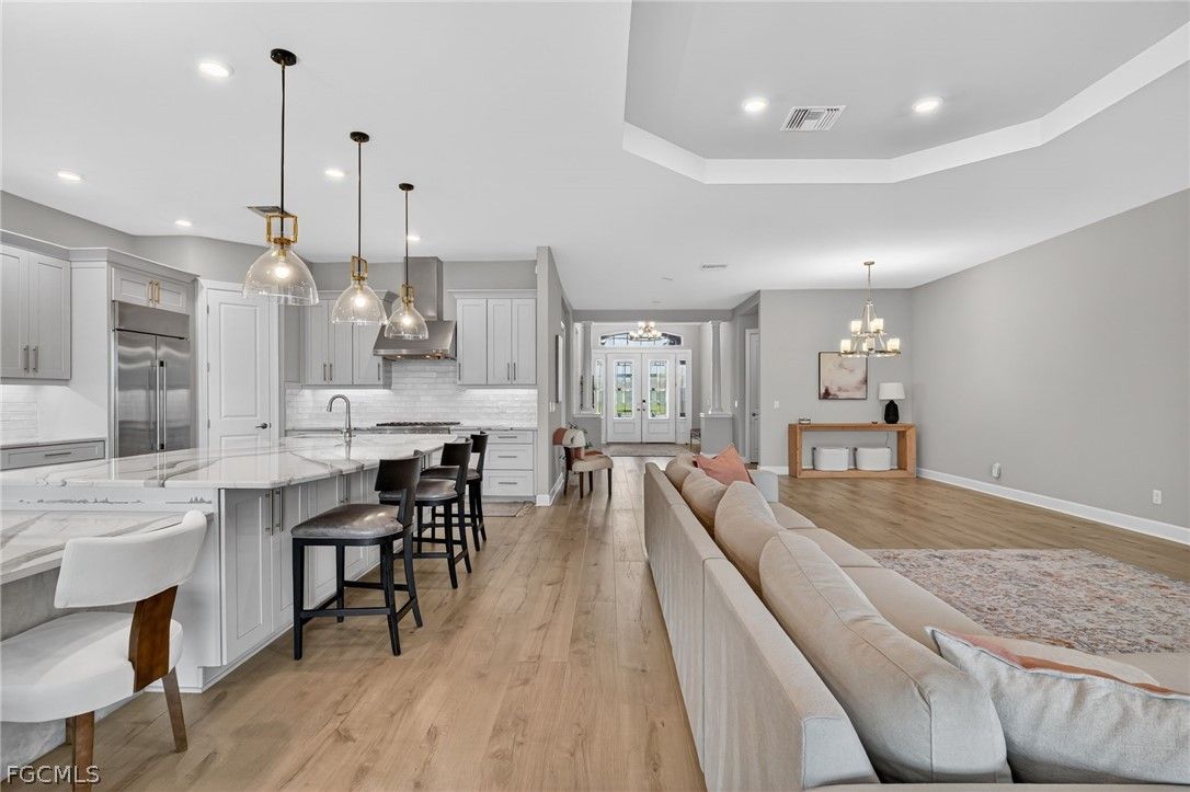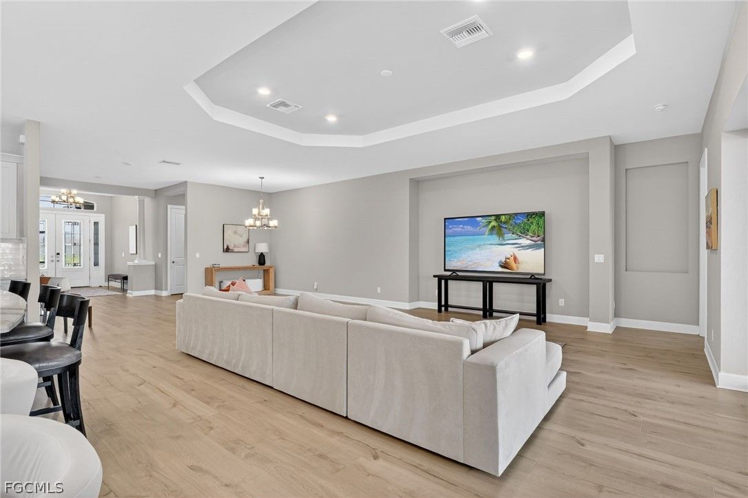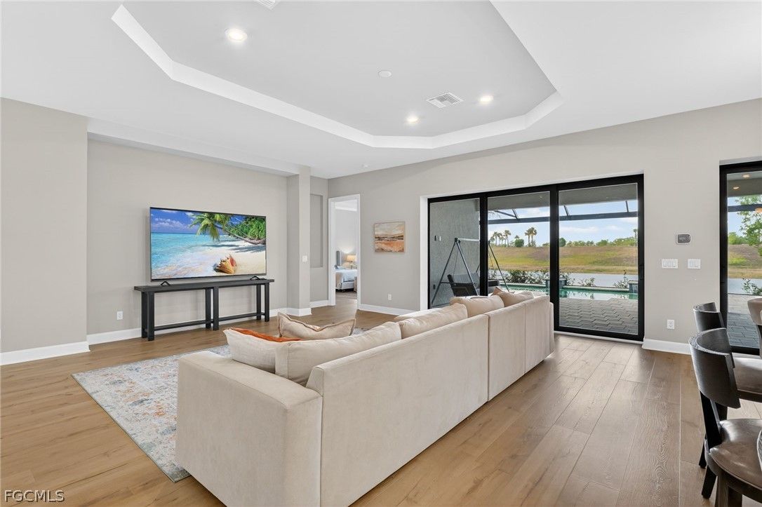 Some homes check the boxes. Others create a feeling of warmth the moment you walk through the door. This is one of those rare homes. Nestled within the highly sought-after Esplanade Lake Club, this barely lived-in waterfront masterpiece offers 3,095 square feet of impeccably designed living space — 3 bedrooms, a private den, 3 luxurious bathrooms, and a 2-car garage. And yes, it comes with something that simply cannot be replicated: direct lake access from your own private boat dock. From the moment you step inside, you'll feel it. Soaring ceilings. Rich wide-plank flooring. Expansive sightlines that pull your gaze effortlessly through the great room and straight out to the shimmering water beyond. This home is perfectly situated to capture stunning South Florida sunsets. This home doesn't just look beautiful — it flows, with every space connecting naturally and purposefully to the next. At the heart of it all is a chef's kitchen that means business — an oversized island, premium Monogram stainless steel appliances, custom cabinetry, and designer lighting that makes entertaining feel effortless and everyday living feel indulgent. Open to the great room and dining area, this is the space where mornings linger and memories are made. Retreat to the owner's suite, a sanctuary unto itself. A spa-inspired bath with dual vanities, a walk-in shower, an even more generous walk-in closet, and refined finishes that simply feel expensive. Two additional guest bedrooms and a versatile den round out the interior — ideal for visitors, a home office, or your own private escape. And then you step outside. The screened lanai is nothing short of a love letter to the Florida lifestyle. A stunning pool and spa overlook serene water views, while the fully appointed outdoor kitchen and generous entertaining area set the scene for everything from sunset cocktails to Sunday morning coffee. This is the kind of outdoor space that makes you forget the rest of the world exists. When you're ready to take to the water, your private boat dock awaits — your personal gateway to Lake Como for boating, paddleboarding, and soaking in the natural beauty of Southwest Florida at your own pace. As a resident of Esplanade Lake Club, you'll enjoy a resort lifestyle that rivals the finest communities in all of SWFL — a lakeside clubhouse, waterfront dining, resort-style pool, state-of-the-art fitness center, tennis, pickleball, scenic walking trails and loads of social activities to fit every interest. Every day here feels like a vacation. Homes like this simply don't come along often. Virtually brand new, meticulously appointed, and positioned on the water with private dock access — this is the kind of opportunity serious buyers move quickly on.