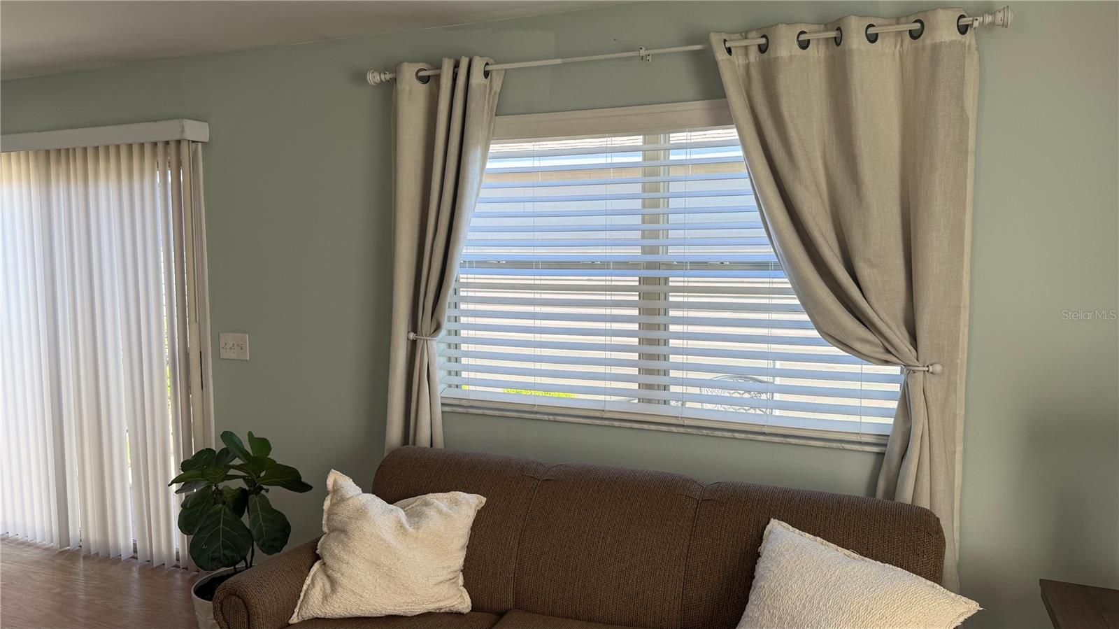 - Accessibility Features, Ceiling Fan(s), Living/Dining Room, Main Level Primary, Solid Surface Counters, Solid-Wood Cabinets, Thermostat, Walk-In Closet(s), Window Treatments