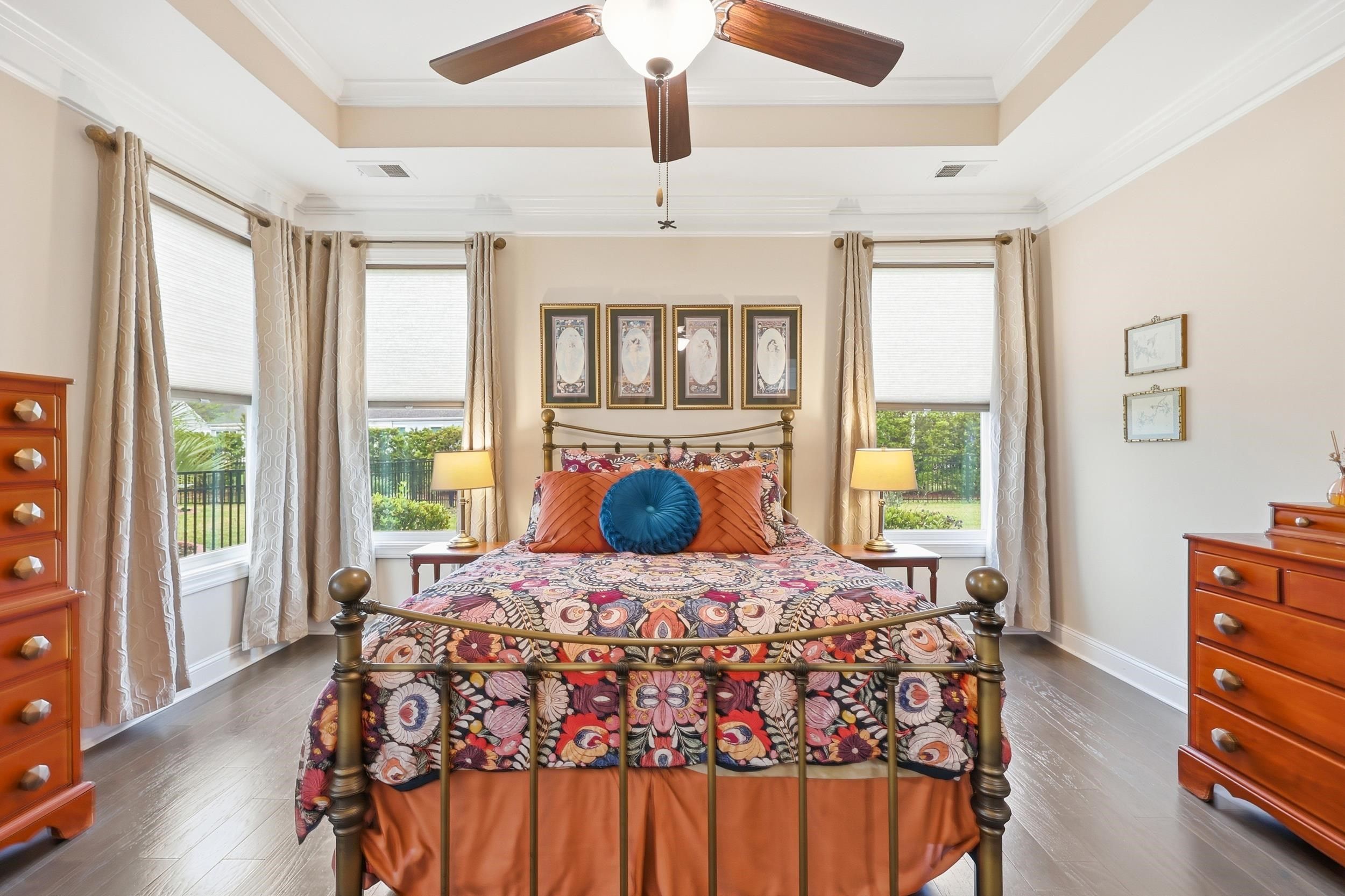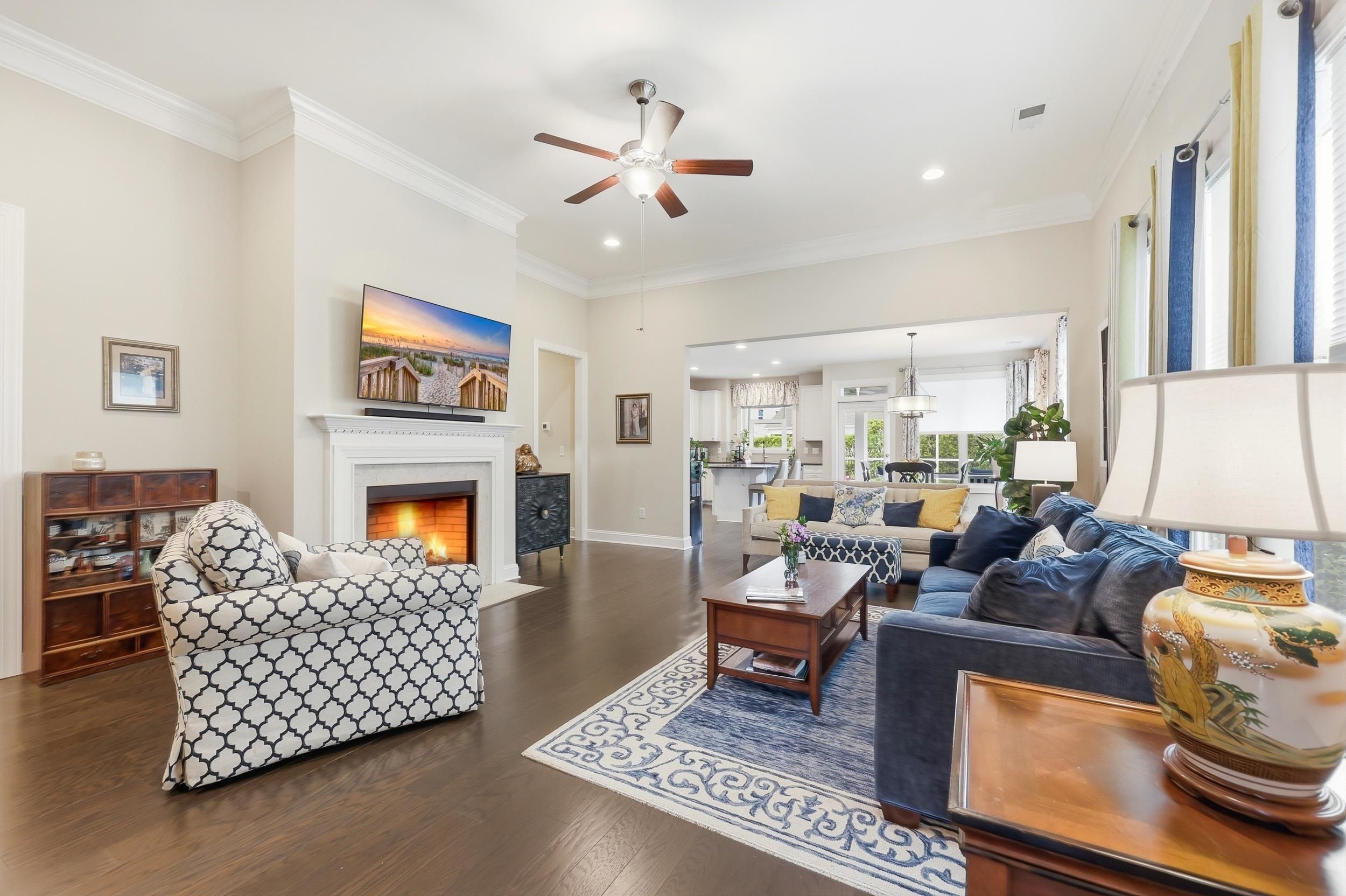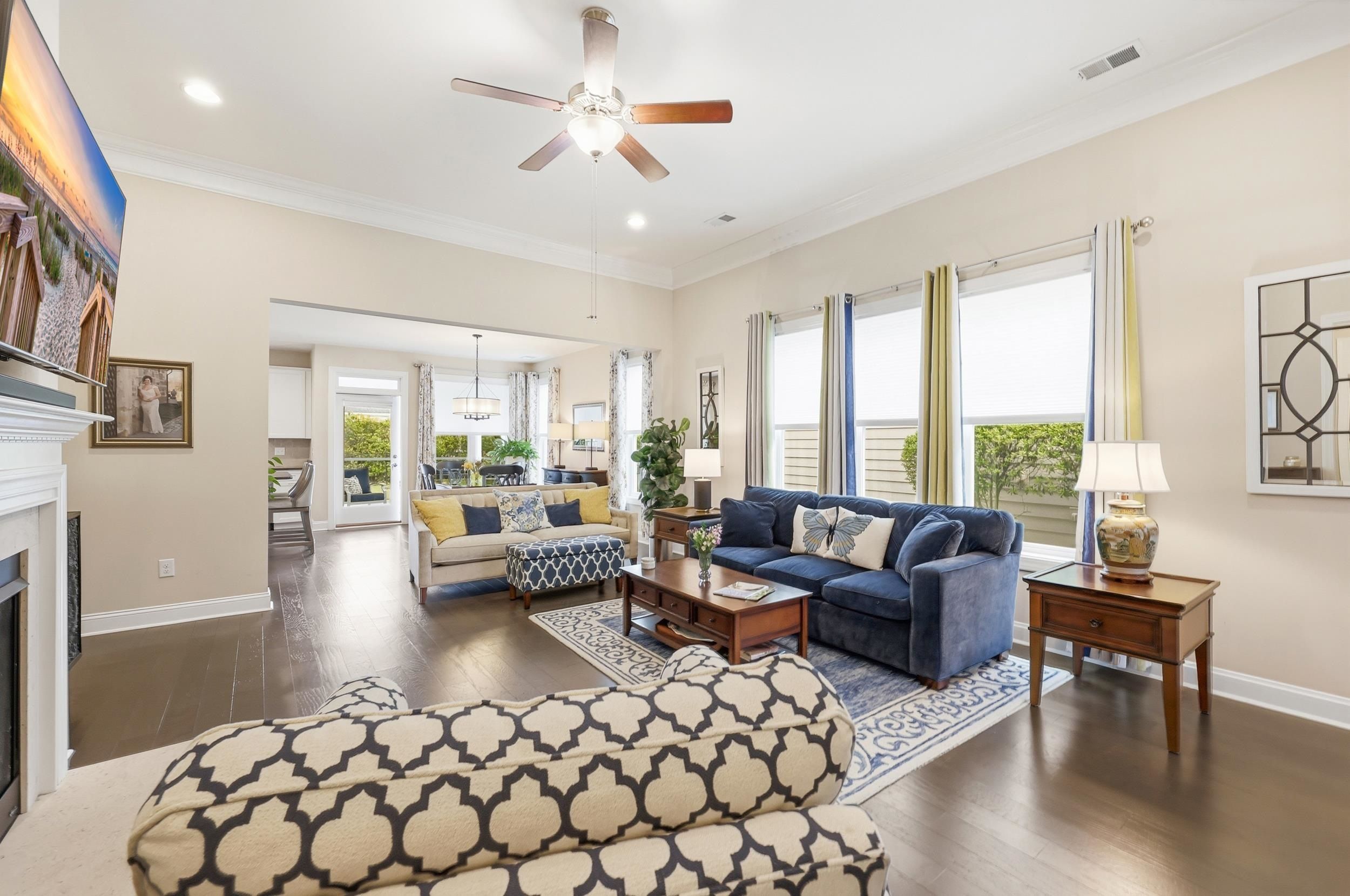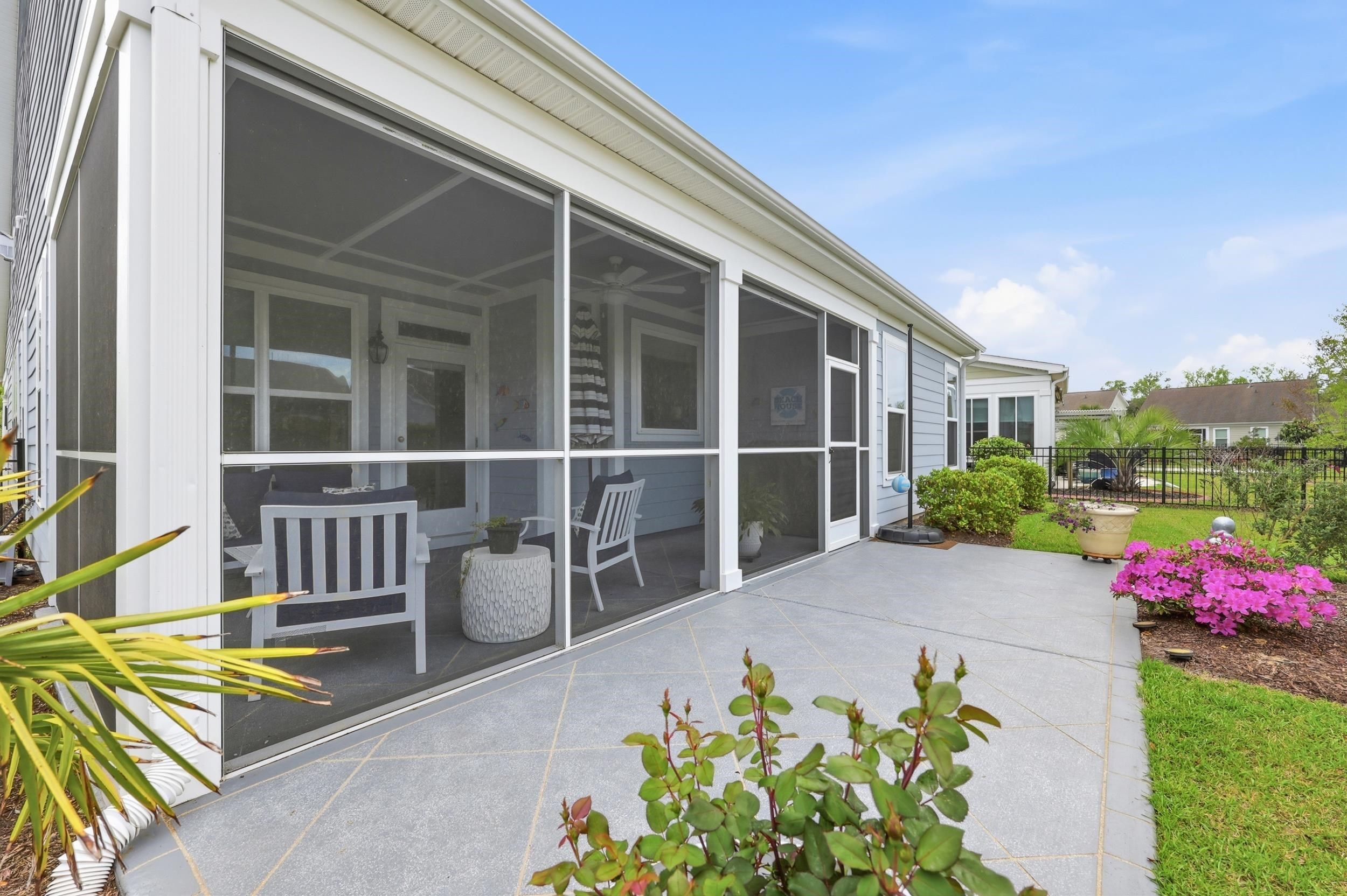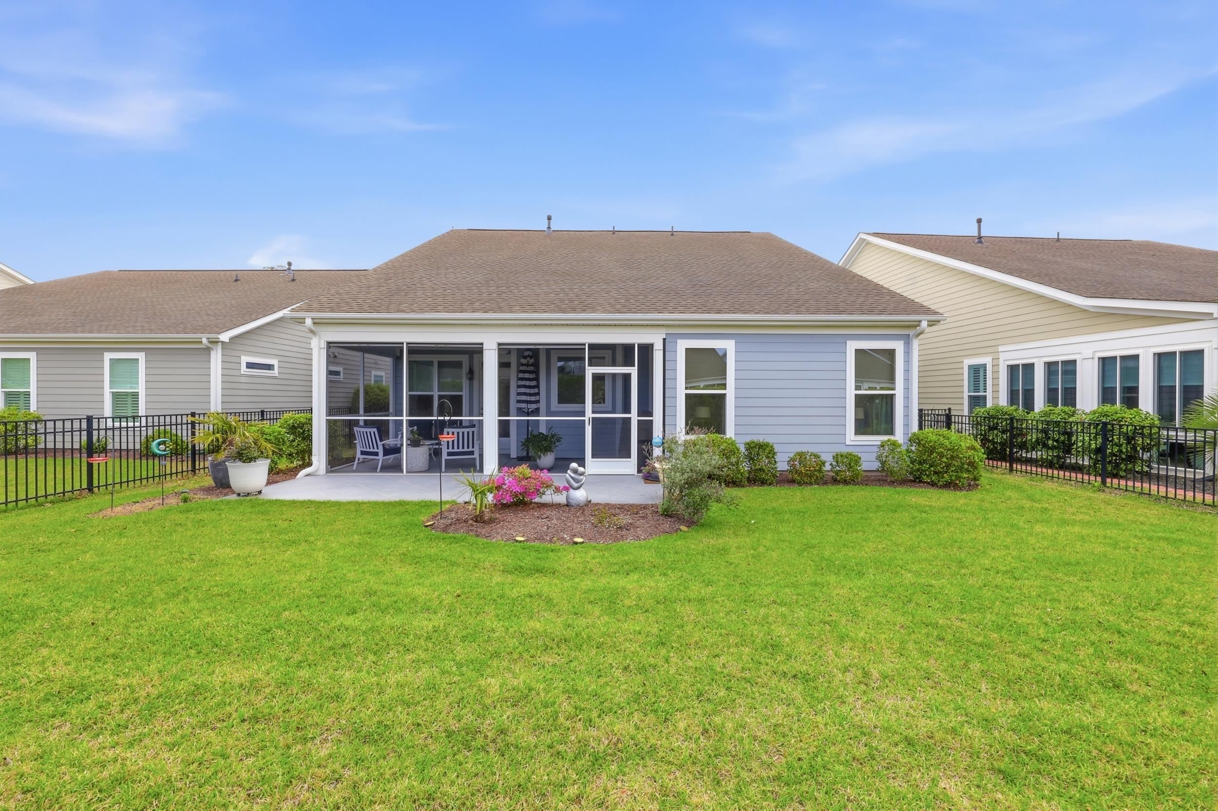 Serenity on Suncrest – Where Comfort Meets Effortless Living Welcome to Serenity on Suncrest, an immaculate open-concept home designed for both relaxed everyday living and elegant entertaining. From the moment you step inside, you’ll be greeted by an abundance of natural light, beautiful wood floors, and thoughtfully selected custom window treatments that create a warm and inviting atmosphere. The heart of the home is a stunning gourmet kitchen featuring double ovens, ample workspace, and seamless flow into the main living area—perfect for hosting family and friends. The cozy fireplace adds charm and comfort, while the screened-in porch offers the ideal spot to unwind and enjoy the peaceful surroundings. Step outside to one of the largest backyards in the neighborhood—professionally landscaped in both the front and back, creating a private oasis filled with lush plants and colorful flowers. Whether you’re enjoying quiet mornings on the front porch or relaxing in your serene backyard, this home truly embraces indoor-outdoor living. This thoughtfully designed one-level home includes an additional upstairs bedroom and full bath—perfect for guests seeking privacy and comfort. Living here means embracing a carefree lifestyle, with the HOA handling lawn care, tree maintenance, and shrub pruning at no additional cost. Residents also enjoy exceptional amenities, including a resort-style pool open year-round, a full-sized fitness center, pickleball and tennis courts, a pottery studio, a professional kitchen, and a wide variety of social activities to suit every interest. Serenity on Suncrest isn’t just a home—it’s a lifestyle defined by ease, beauty, and connection