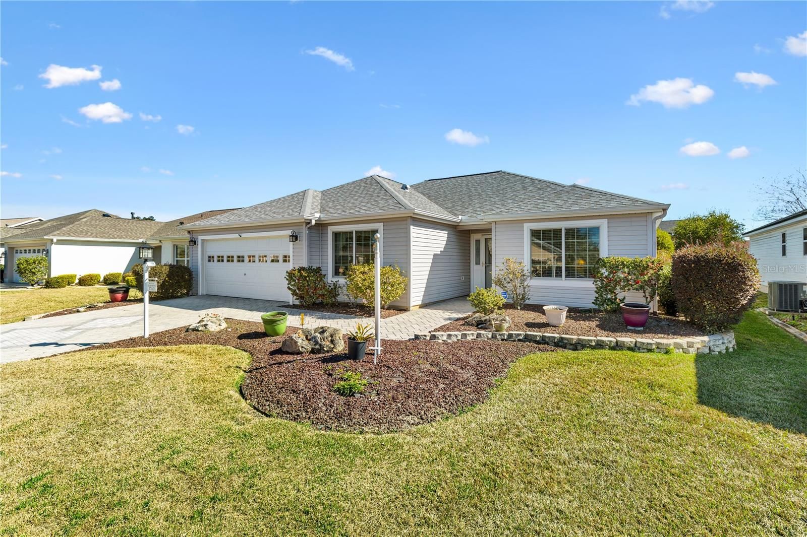 Beautiful Model Willow designer home featuring 3 bedrooms and 2 bathrooms with thoughtful upgrades throughout. Engineered hardwood floors flow through the living areas, and all closets are custom-built for maximum storage and style. The spacious primary suite features a custom walk-in closet and a well-appointed en-suite bathroom and has been upgraded with a Corian walk-in shower and dual sinks. Two generously sized guest bedrooms share a guest bathroom with a shower/tub combination, offering comfort and flexibility for family or visitors. Enjoy indoor-outdoor living with a covered summer kitchen, natural gas hookup, and a paver patio—perfect for relaxing or entertaining. Additional highlights include vaulted ceilings, inside laundry, and an expanded garage. Major updates provide peace of mind: roof (2021), windows (2019), water heater (2018), and a Rain Soft whole-home water filtration system. Original A/C system. A well-maintained home, move-in-ready home designed for comfort and everyday enjoyment. Golf Cart sold separately.