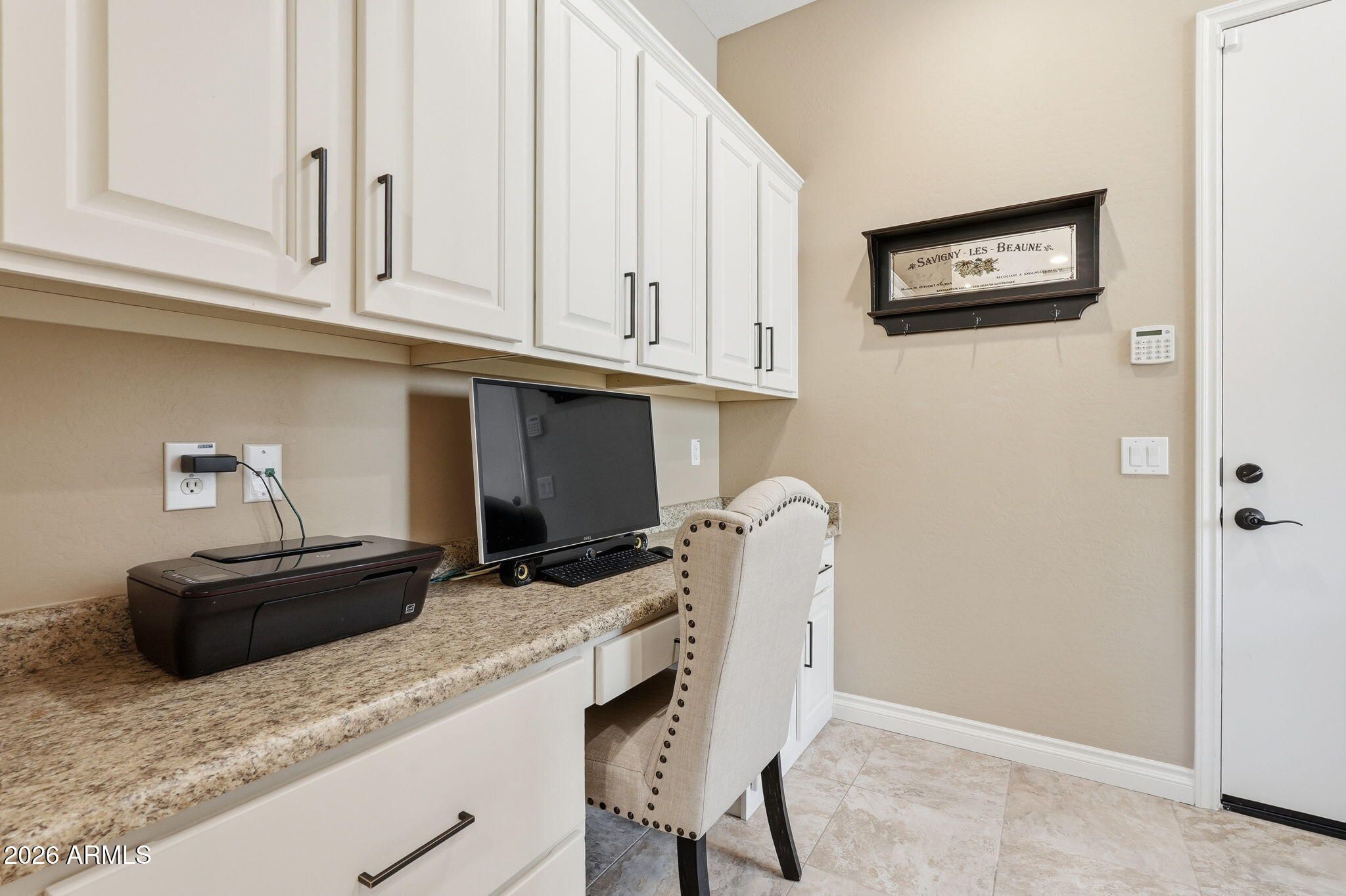 Welcome to resort living in Encanterra. This beautifully upgraded home includes an owned solar system and curb appeal that makes you slow down. From the paver front entry to the 8 foot interior doors and plantation shutters, every detail is designed for comfort and style. The chef's kitchen features a 5 burner gas cooktop, double ovens, a warming drawer, white alder cabinets with staggered uppers, granite counters, and a pantry. The den offers a hidden Murphy bed behind sliding bookcases for guests. Upgraded tile and wood are throughout the main areas. The backyard leads out from a 15 foot rolling glass wall. A paver patio, desert landscaping, a gas fireplace, and a built-in BBQ make the backyard perfect!