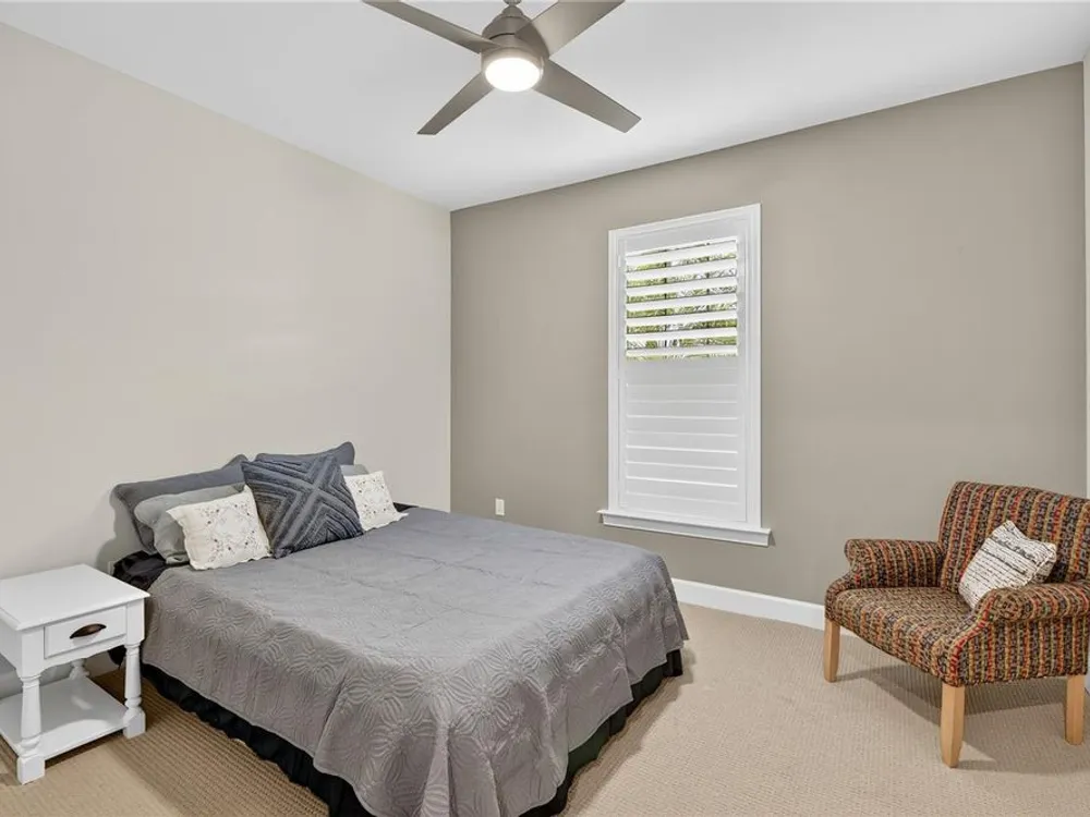- Eat-in Kitchen, High Ceilings, Main Level Primary, Split Bedrooms, Stone Counters, Thermostat, Window Treatments