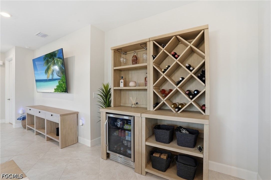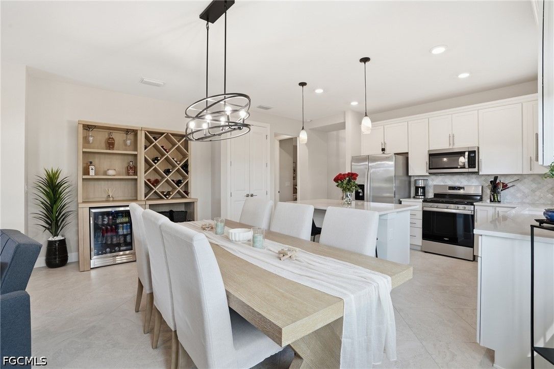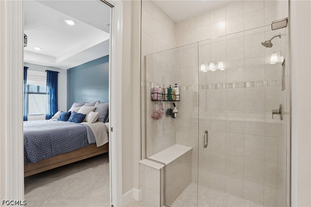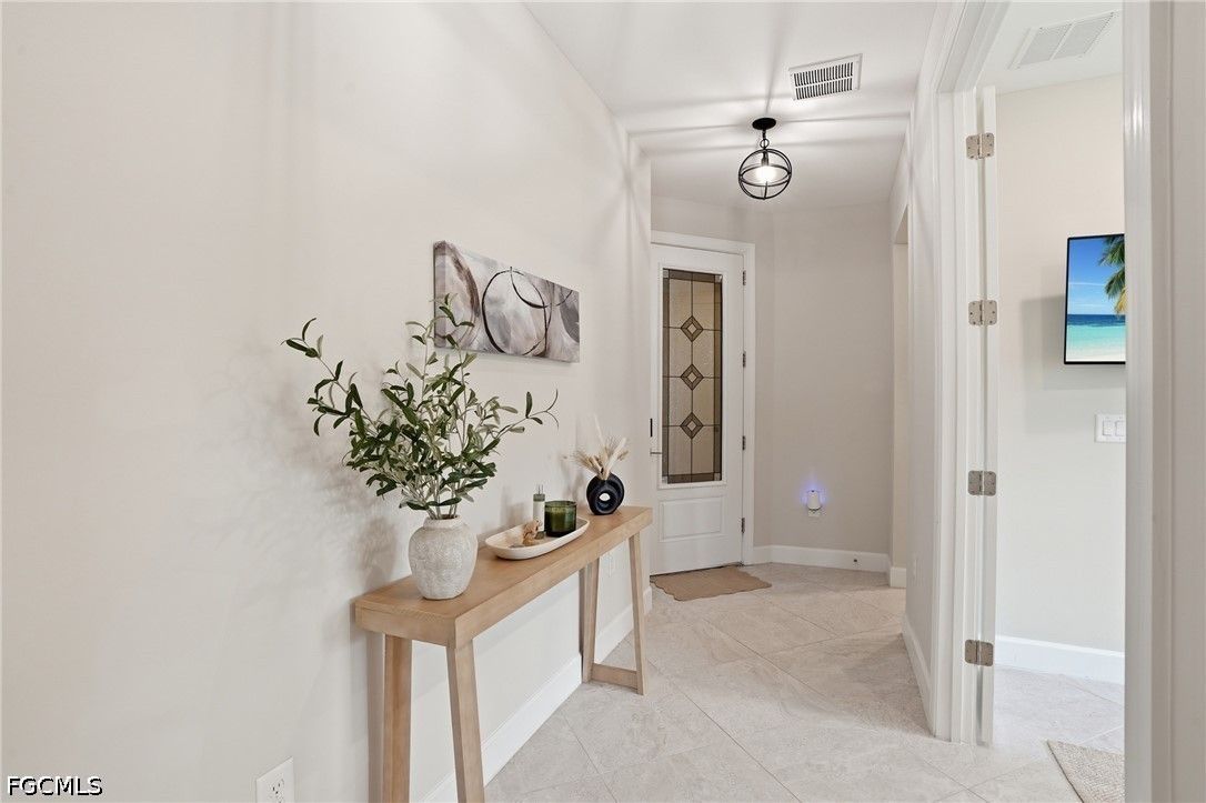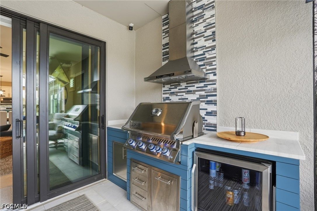This Esplanade Lake Club villa is loaded with upgrades and offers a functional layout with 2 bedrooms, a den, 2 bathrooms, and 1,579 sq ft of living space, all with tile flooring throughout. The open-concept kitchen and living areas flow directly to the outdoor space, featuring an 18’ x 22’ saltwater pool with a sun shelf and gas heater, covered lanai, outdoor kitchen with natural gas, and a fire pit—set up for both everyday use and entertaining. The covered lanai is also equipped with Storm Smart shutters, providing added protection and shade when needed. With western rear exposure, the backyard gets strong afternoon sun and sunset views. The home also includes a whole-house Generac 10kW generator and hurricane shutters along the rear for additional protection. Situated on a corner lot, it offers additional privacy and usable outdoor space. Inside, the home is equipped with natural gas for cooking, and the garage includes four 8’ x 4’ overhead hanging storage racks for added organization. Esplanade Lake Club is centered around Lake Como and features a lakeside clubhouse, resort-style pool and spa, fitness center, tennis, pickleball, and bocce courts, plus waterfront dining and a full-service bar. Residents also enjoy walking and biking trails, kayaking, and a full calendar of community events. Located approximately 25 minutes to Southwest Florida’s Gulf beaches and just minutes from RSW Airport, Florida Gulf Coast University, and Gulf Coast Town Center, this location provides convenient access to shopping, dining, and entertainment.