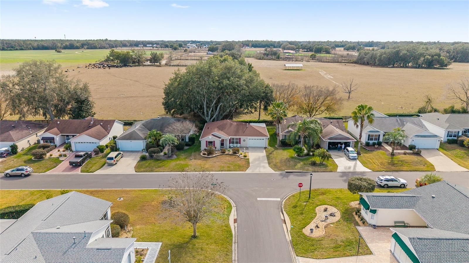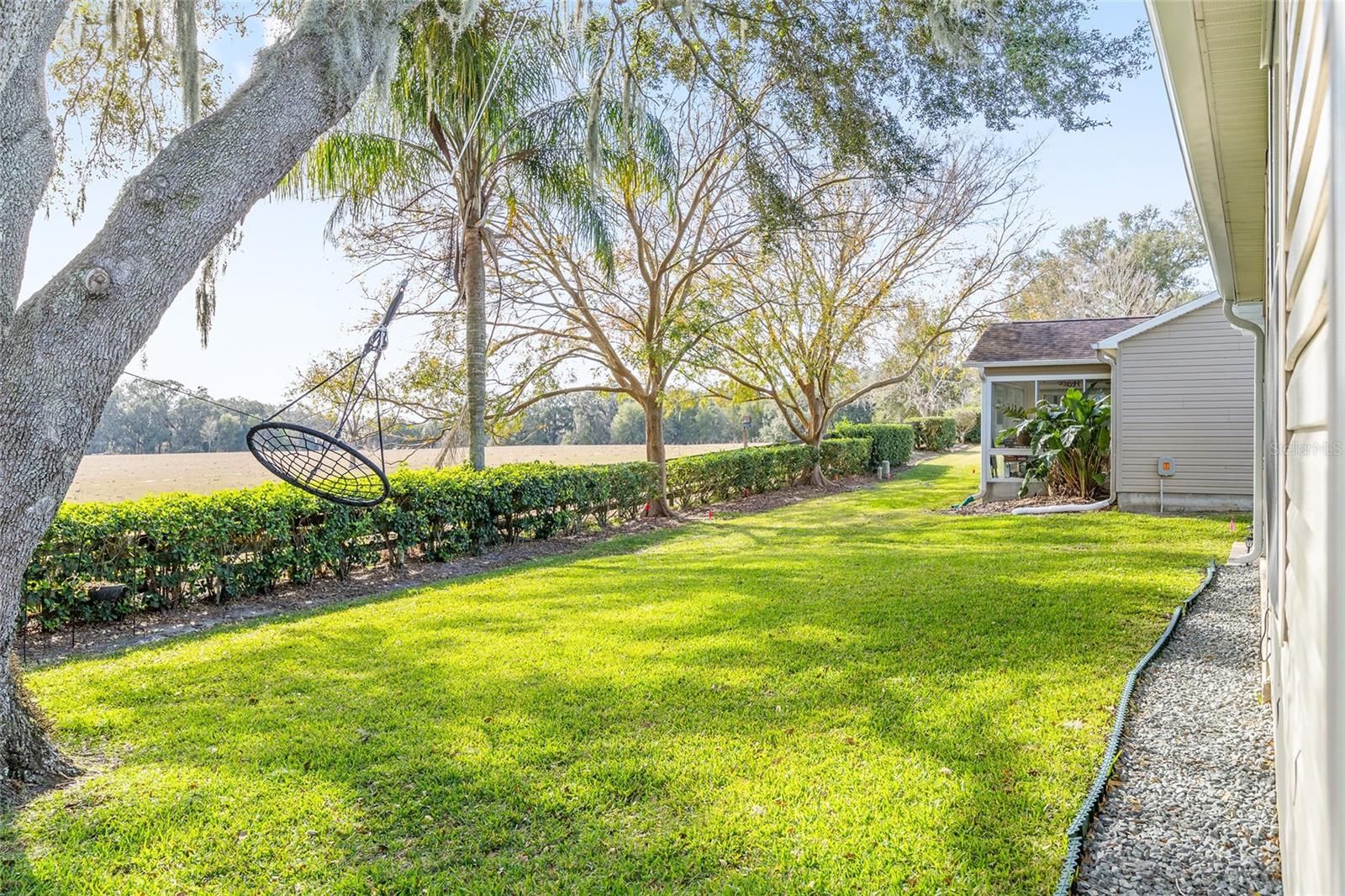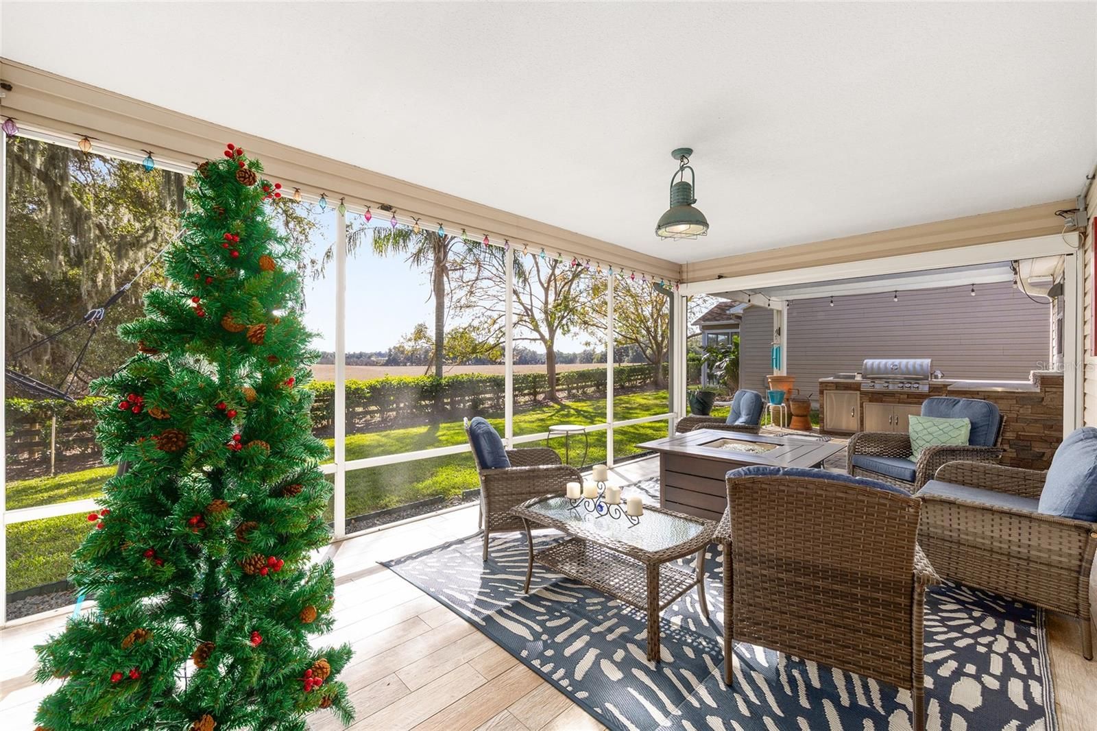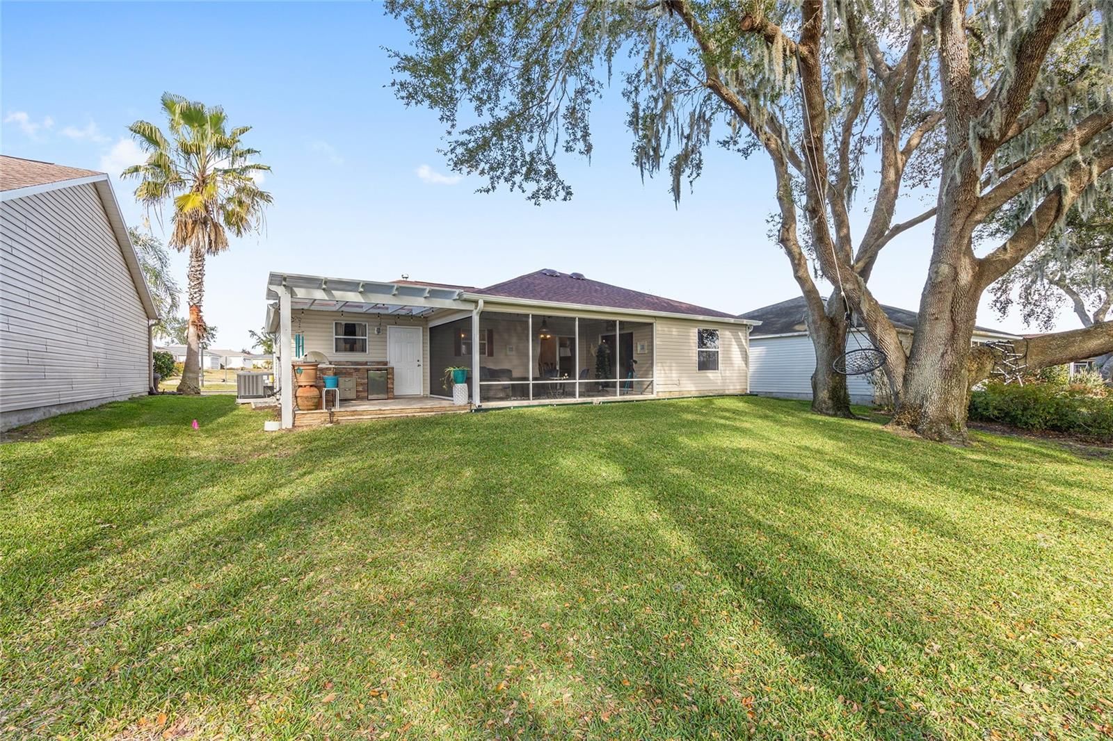 A LITTLE SLICE OF HEAVEN RIGHT HERE IN THE VILLAGES!! Adorable TURNKEY AUSTIN that backs up to a farm. Daily visits from the cows and donkeys! Beautiful Oak Trees and an OUTDOOR KITCHEN makes this beautiful home very peaceful and relaxing! The 20x12 screened lanai with beautiful new furniture and a gas firepit is the perfect place to entertain or nap! The front yard has beautiful stacked landscaping and a patio that leads you to the front door. MOVE-IN READY! JUST BRING YOUR TOOTHBRUSH!. BOND PAID!! ROOF 2024, HVAC 2025, HWH 2014.WHOLE HOUSE WATER FILTRATION SYSTEM 2025, LEAF FILTER GUTTERS 2025. A Barn Door to the guest room and bathroom provides privacy for guests. Walking distance to Chatham Rec Center and the Beautiful Executive courses Oakleigh and Amberwood. Nancy Lopez Legacy Country Club is a 5 minute golf cart ride as is Mulberry Grove Rec Center and Shopping Center. VA Clinic is also located in Mulberry Plaza. DON'T LET THIS ONE GET AWAY!! Schedule your private showing today!