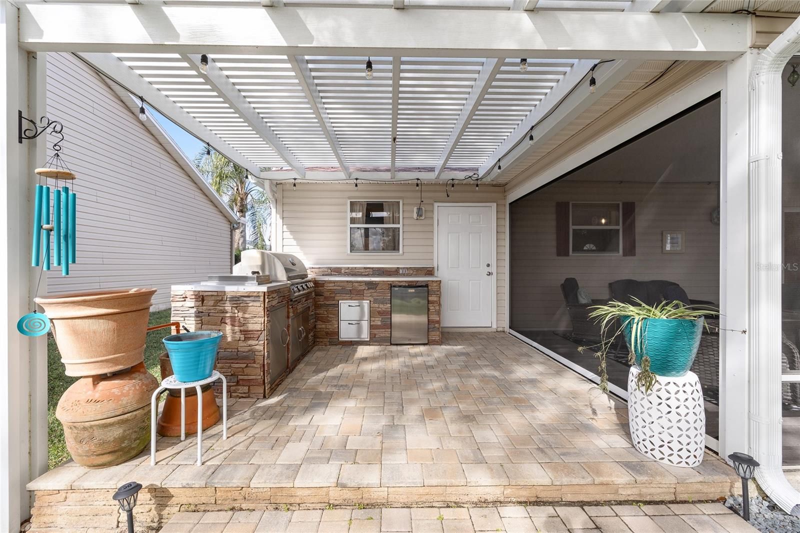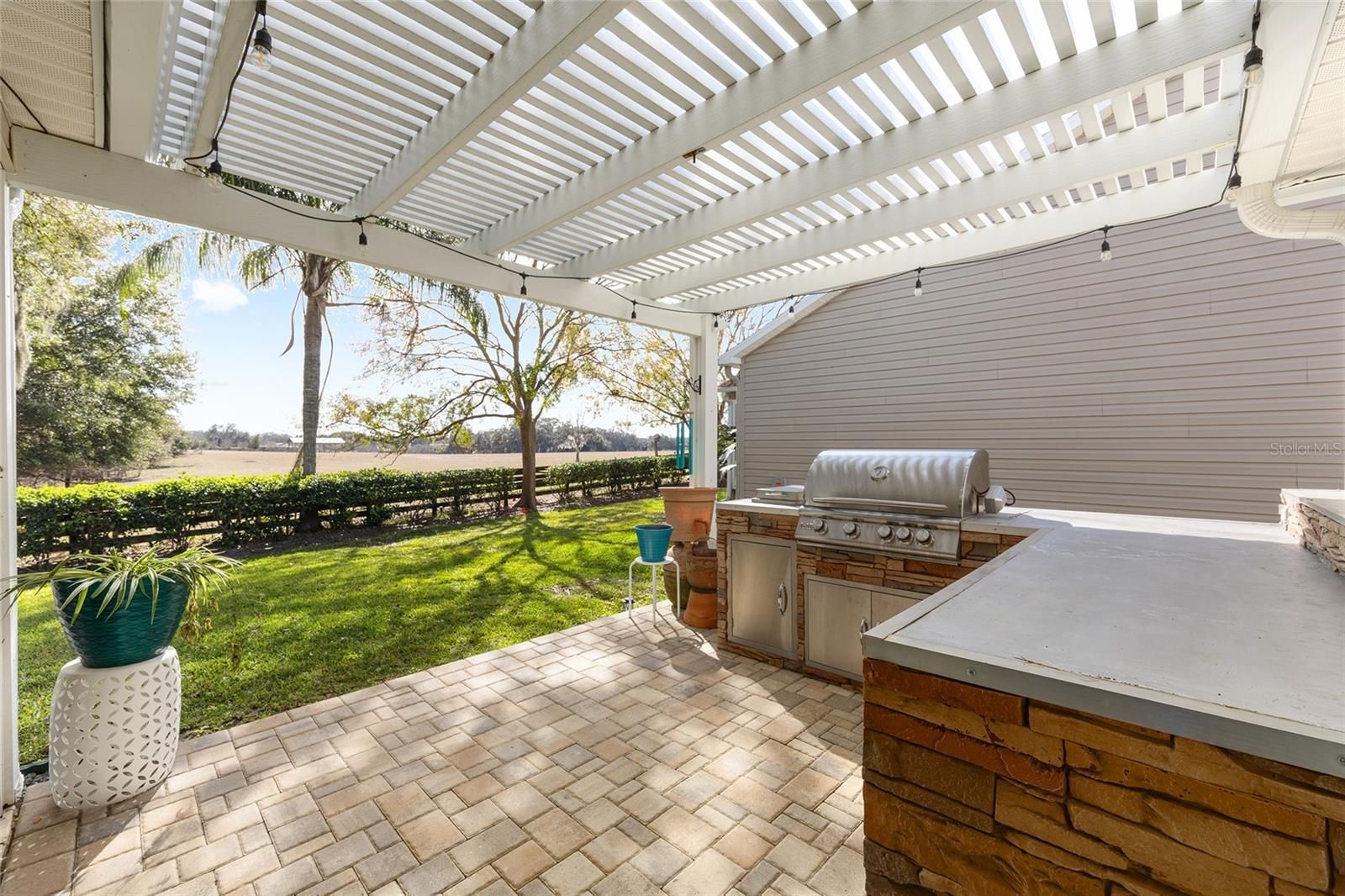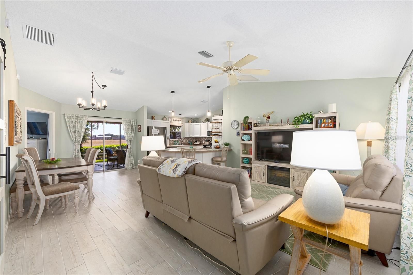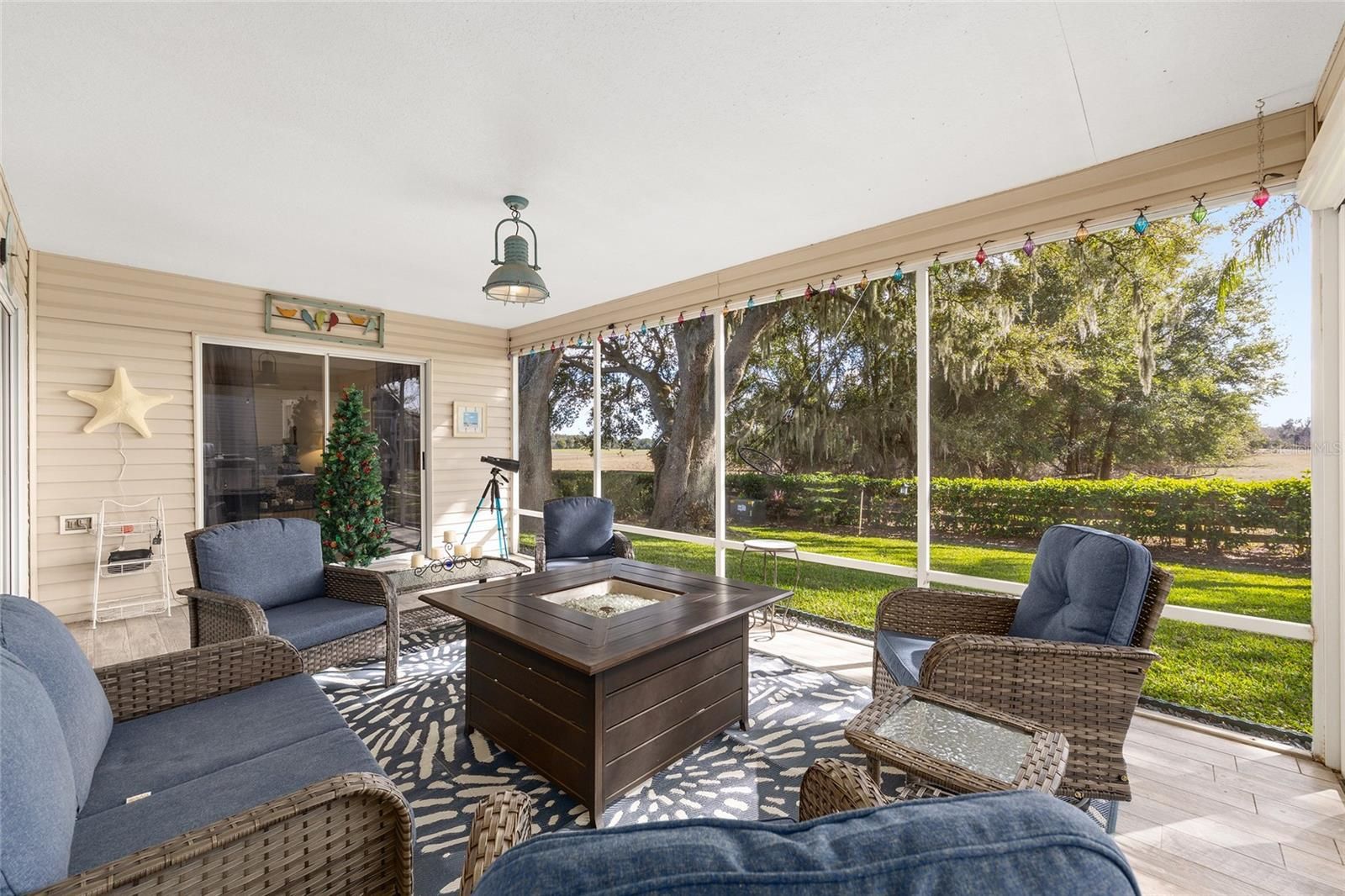 A LITTLE SLICE OF HEAVEN RIGHT HERE IN THE VILLAGES!! Adorable TURNKEY AUSTIN that backs up to a farm. Daily visits from the cows and donkeys! Beautiful Oak Trees and an OUTDOOR KITCHEN makes this beautiful home very peaceful and relaxing! The 20x12 screened lanai with beautiful new furniture and a gas firepit is the perfect place to entertain or nap! The front yard has beautiful stacked landscaping and a patio that leads you to the front door. MOVE-IN READY! JUST BRING YOUR TOOTHBRUSH!. BOND PAID!! ROOF 2024, HVAC 2025, HWH 2014.WHOLE HOUSE WATER FILTRATION SYSTEM 2025, LEAF FILTER GUTTERS 2025. A Barn Door to the guest room and bathroom provides privacy for guests. Walking distance to Chatham Rec Center and the Beautiful Executive courses Oakleigh and Amberwood. Nancy Lopez Legacy Country Club is a 5 minute golf cart ride as is Mulberry Grove Rec Center and Shopping Center. VA Clinic is also located in Mulberry Plaza. DON'T LET THIS ONE GET AWAY!! Schedule your private showing today!