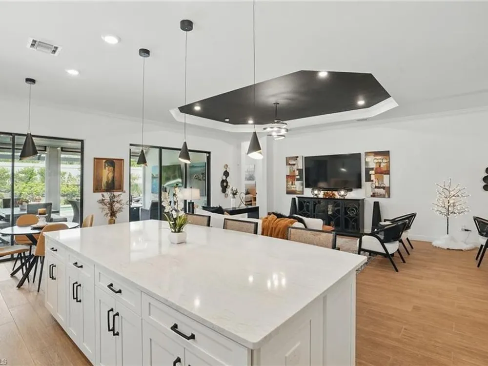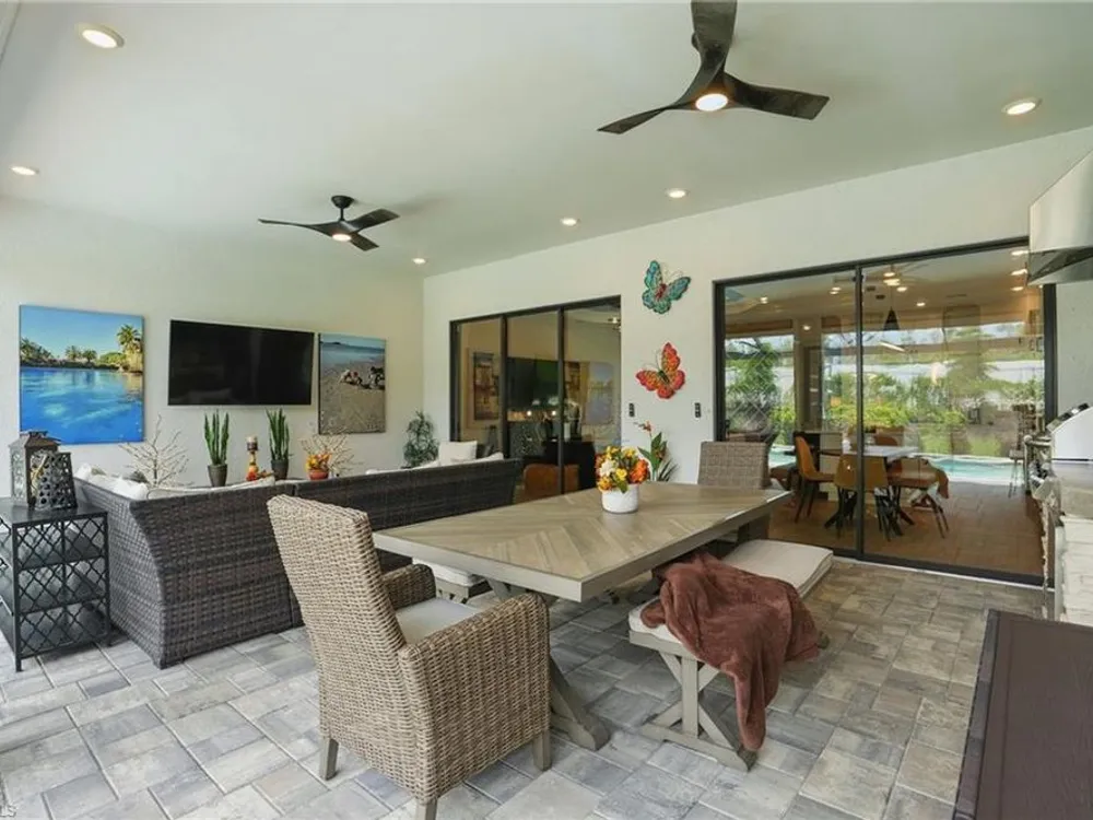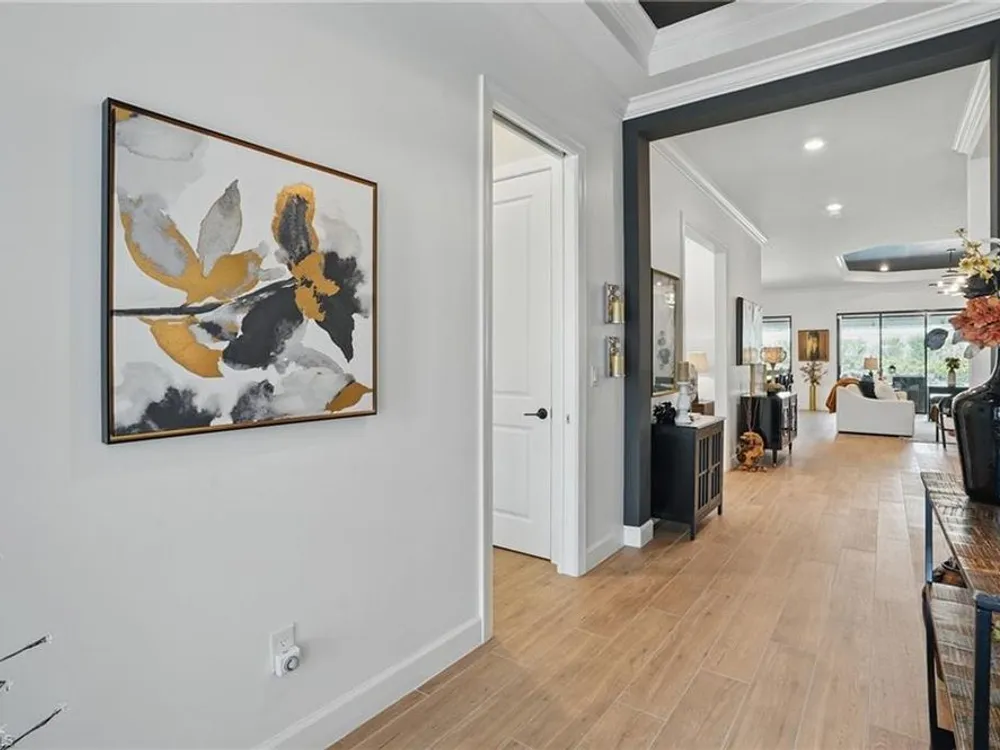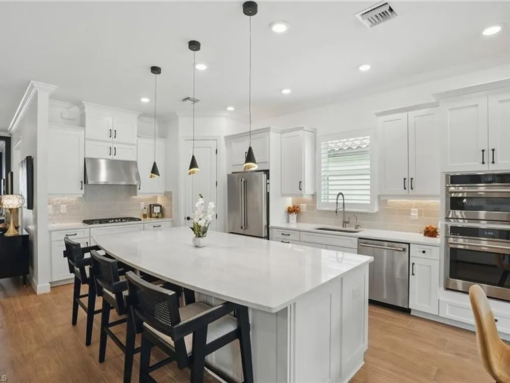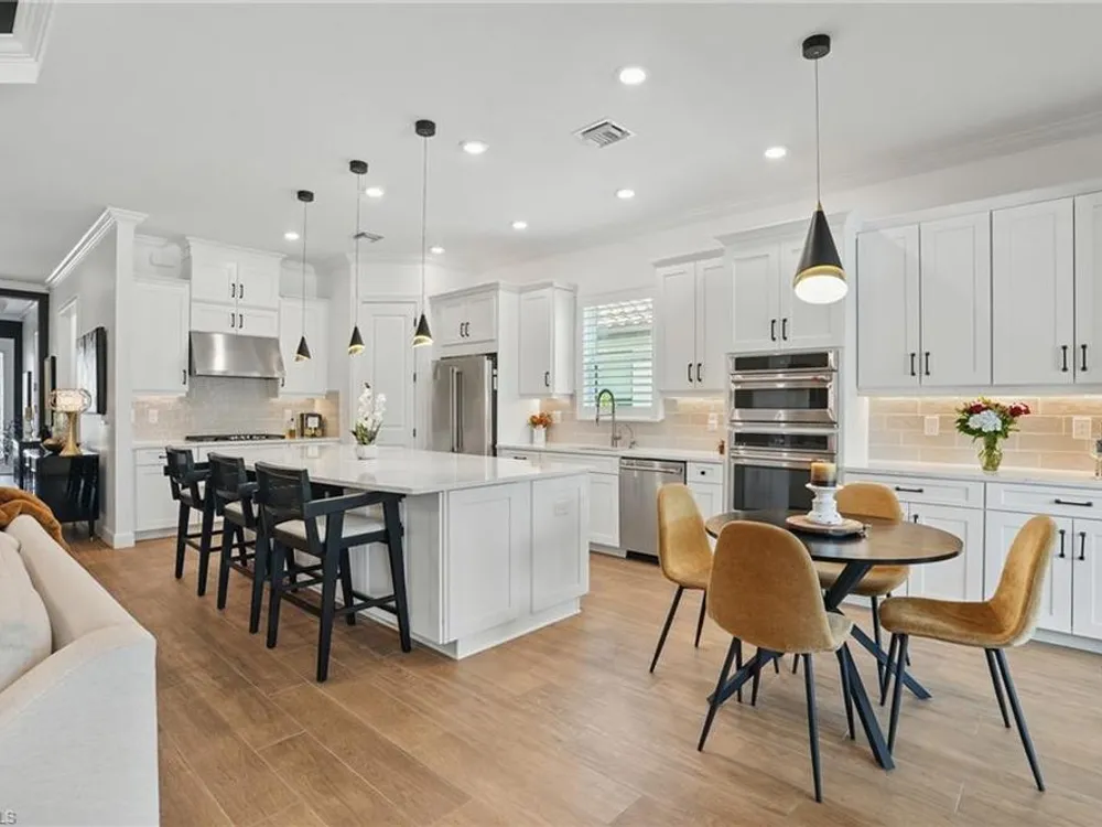 Welcome to 17467 Caravita Lane—where refined elegance meets resort-style living in the prestigious Esplanade Lake Club. This exceptional Lazio floor plan offers 3 bedrooms, a spacious den, 3 full bathrooms, and a 2-car garage, all perfectly positioned on a desirable eastern exposure homesite with tranquil sunrise views over your private pool oasis. Every inch of this residence has been thoughtfully curated with luxury in mind. Designer upgrades include plantation shutters, custom closet systems in every bedroom, high-end fixtures, and detailed trim work that exude sophistication. The chef’s kitchen flows effortlessly to an expansive living area and out to the fully equipped outdoor kitchen, ideal for entertaining. The lanai is a true retreat, featuring ambient pool lighting and hurricane-rated roll-down shutters for added peace of mind. Modern comforts include a whole-home water softener and reverse osmosis system, UV air purification integrated into the HVAC, and a whole-home generator—ensuring safety, comfort, and well-being. Located in one of Southwest Florida’s most coveted communities, Esplanade Lake Club offers an unparalleled lifestyle. Enjoy a world-class amenity center featuring a resort-style pool and spa, cabana bar & grill, spa treatment room, tennis, pickleball, bocce, two dog parks, concierge services, and a full social calendar designed to elevate everyday living. Just moments from RSW Airport, I-75, and premier shopping and dining, this property is more than a home—it’s a destination.