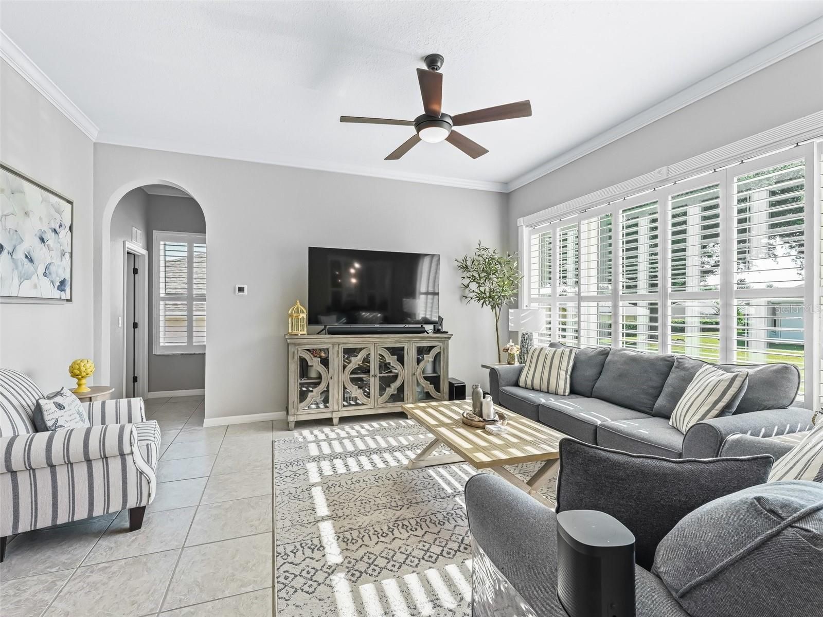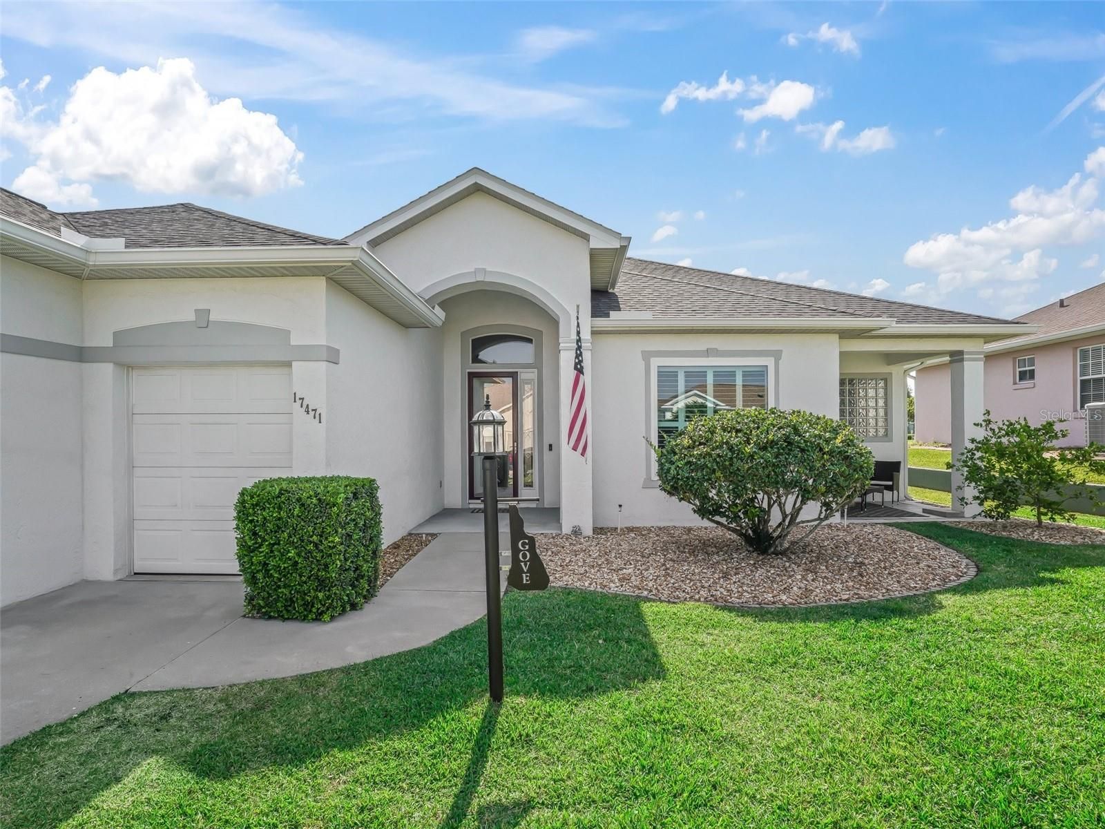 Stonecrest is a private, gated community w/ controlled access. Avondale Model located in the Hills neighborhood. This is a must see home with a golf cart garge and 10' ceilings throughout.The square footgage of the home indicated by public record reflects 1768 sf, but the open integrated space is 2020 sf. inside the home. Please be aware of the entry/exit gate as you stop at the guard station and enter and exit the community. Third bedroom does not have a closet, but it does have French doors with privacy glass inserts and is a flex room. Welcome to your next chapter in this vibrant Adult, private gated, golf cart-friendly community just outside The Villages in North Central Florida! With an incredibly low HOA fee of just $148/month, you'll enjoy resort-style living with access to a welcoming clubhouse, casual dining, 18-hole golf course, four community pools—including a luxurious indoor saltwater pool—plus a well-equipped fitness center and much more. This beautifully updated home is move-in ready and offers exceptional value. Major upgrades include: New Roof (2020), HVAC (2018), Water Heater(2012), All Newer Exterior Windows (2019), Upgraded Flooring, Appliances, and Plantation Shutters, Fresh interior paint, Step outside to enjoy thoughtfully landscaped grounds with stone accents, shrubs and Palm trees. The two-car garage also features a dedicated golf cart garage, utility sink, attic storage with shuttle access, and an electric retractable screen door for added ventilation. An exciting bonus: the former screened lanai has been permitted and professionally enclosed (2014), creating an additional 252 sq. ft. of heated and cooled living space—not included in the listed square footage, a great feature. Conveniently located near the community center, this home offers both comfort and connection. 3rd. bedroom/ den no closet, but with privacy glass inserts in the french doors. Also note that there is a Ring camera which is active. Schedule your showing today—this one won't last long!