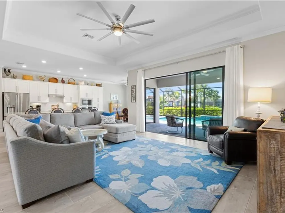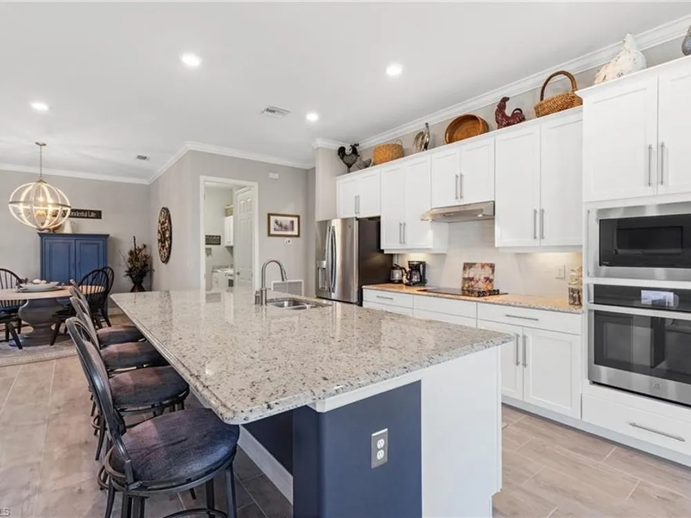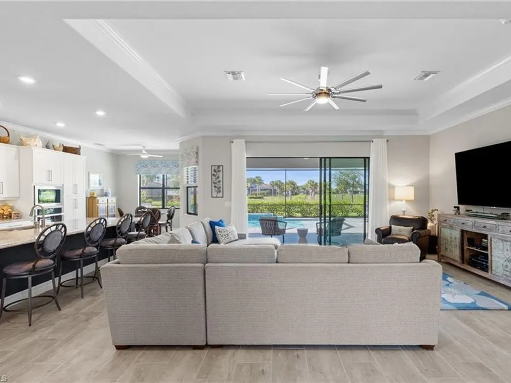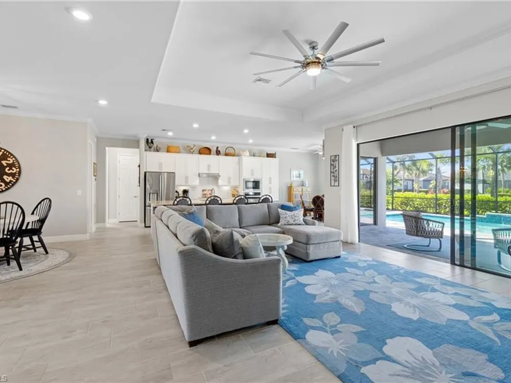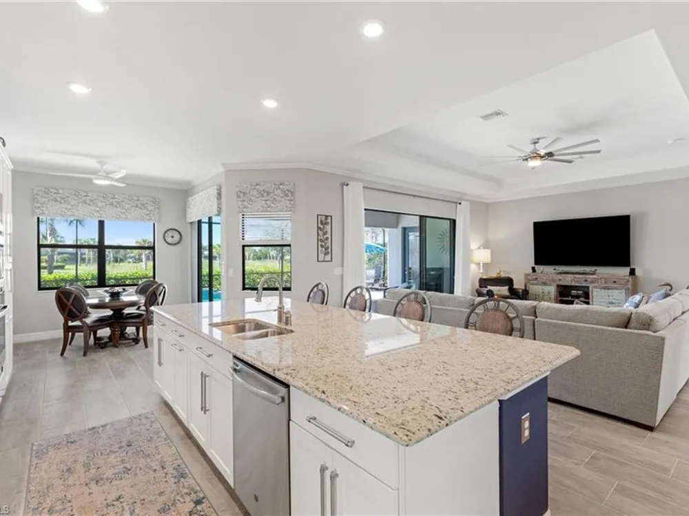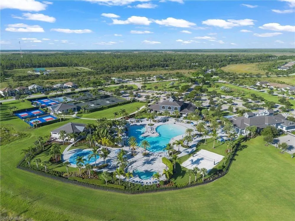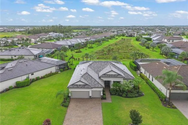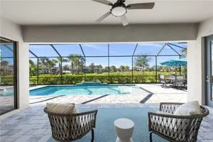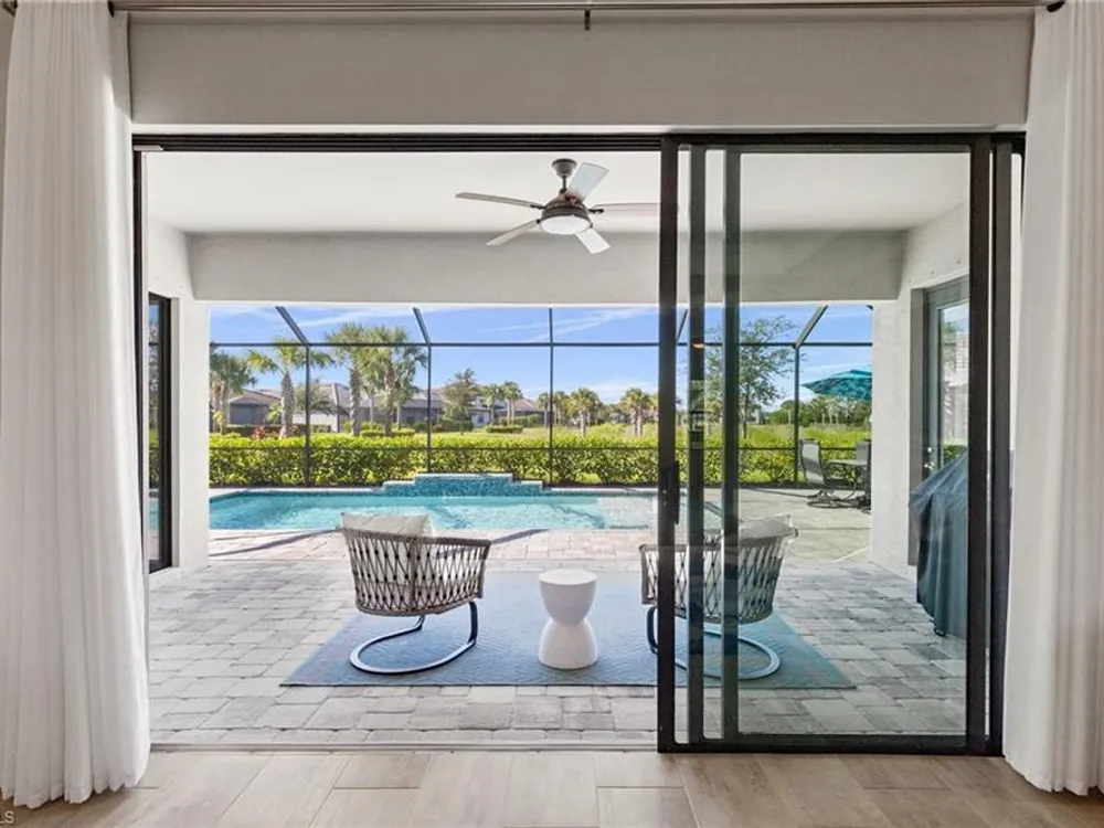 Live like you are on vacation all year round! Resort style amenities here at the gated community of THE PLACE AT CORKSCREW. The sliding glass doors intermingle the indoor/outdoor for your entertainment needs opening to an outdoor oasis. Screened-in, covered lanai showcases the cascading waterfall into the CUSTOM POOL with bubblers & enhanced lighting. LONG & WIDE driveway leads to the 3 CAR GARAGE. The open floor plan welcomes you to the 3-4 bedrooms, den/office, 2 ½ baths (inc a newly remodeled pool bath!). Designed for flexibility, the 4th bedroom with French doors can easily transform into a home office or media room. 2 of the bedrooms have connected bathrooms perfect for the mother in law or teen. The spacious primary retreat offers direct pool/patio access, plus en-suite bath offering dual vanities, sep tub & shower. Large walk-in closet. Gourmet white kitchen with plenty of storage & features an oversized island with granite counters, formal dining + informal (with doors to pool for easy grilling). This 2019 'smart home' has top of the line high-tech appliances including the refrigerator with coffee maker, glass top stove & oven with air fryer. Top notch upgrades: crown molding, trayed ceilings & neutral hues throughout. Amenities at The Place include Resort Pool With 100ft Waterslide, Indoor Restaurant, Bourbon Bar, Cafe, Outdoor Bar, Fitness Center, Movement Studio, Fitness Classes, Tennis, Pickleball, Bocce, Basketball, Playground, Dog Park, Child Care, Spa Services. Shopping (Publix) & dining less than 2 miles away.