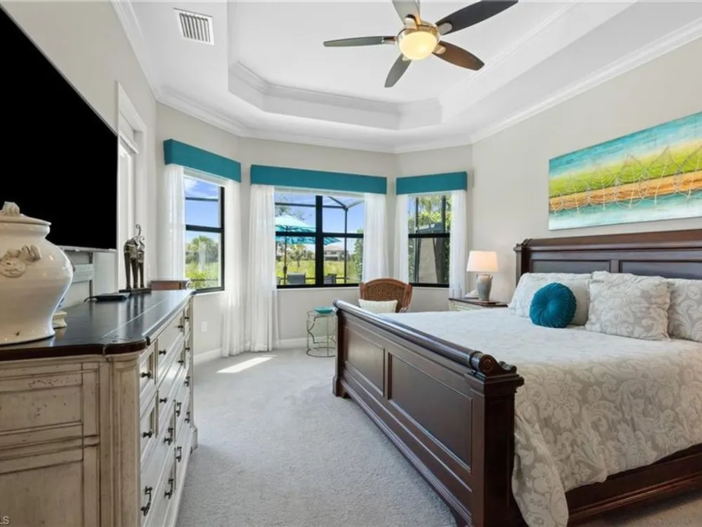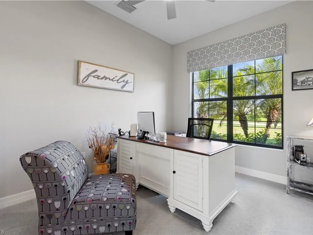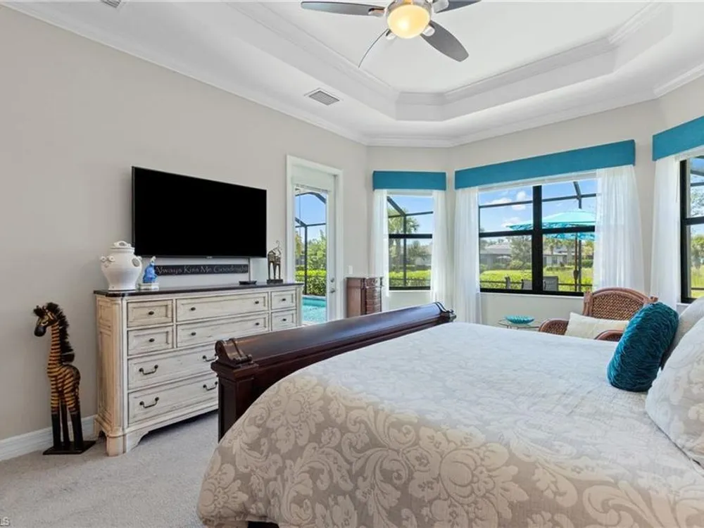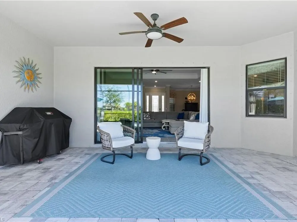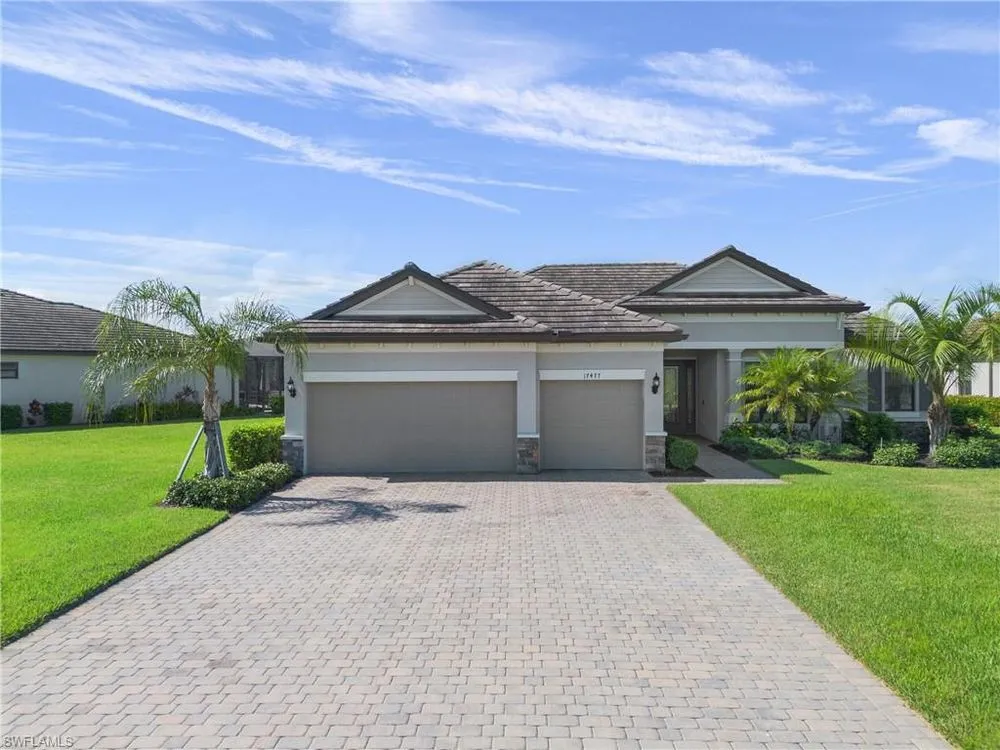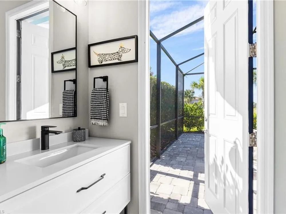 Live like you are on vacation all year round! Resort style amenities here at the gated community of THE PLACE AT CORKSCREW. The sliding glass doors intermingle the indoor/outdoor for your entertainment needs opening to an outdoor oasis. Screened-in, covered lanai showcases the cascading waterfall into the CUSTOM POOL with bubblers & enhanced lighting. LONG & WIDE driveway leads to the 3 CAR GARAGE. The open floor plan welcomes you to the 3-4 bedrooms, den/office, 2 ½ baths (inc a newly remodeled pool bath!). Designed for flexibility, the 4th bedroom with French doors can easily transform into a home office or media room. 2 of the bedrooms have connected bathrooms perfect for the mother in law or teen. The spacious primary retreat offers direct pool/patio access, plus en-suite bath offering dual vanities, sep tub & shower. Large walk-in closet. Gourmet white kitchen with plenty of storage & features an oversized island with granite counters, formal dining + informal (with doors to pool for easy grilling). This 2019 'smart home' has top of the line high-tech appliances including the refrigerator with coffee maker, glass top stove & oven with air fryer. Top notch upgrades: crown molding, trayed ceilings & neutral hues throughout. Amenities at The Place include Resort Pool With 100ft Waterslide, Indoor Restaurant, Bourbon Bar, Cafe, Outdoor Bar, Fitness Center, Movement Studio, Fitness Classes, Tennis, Pickleball, Bocce, Basketball, Playground, Dog Park, Child Care, Spa Services. Shopping (Publix) & dining less than 2 miles away.