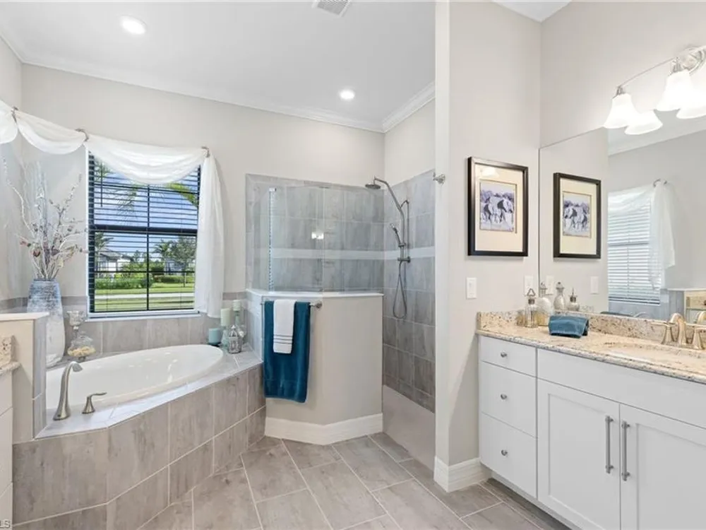 - Tray Ceiling(s), Walk-In Closet(s), Window Coverings, Den, Great Room, Home Office, Laundry Facility, Bedroom on Main Level, Sitting Area In Primary Bedroom, Split Bedrooms, Multiple Master Suites, Breakfast Room, Separate/Formal Dining Room, Dual Sinks, Bathtub, Separate Shower, Single Hung Window(s), Sliding Window(s), Washer/Dryer Hookup
