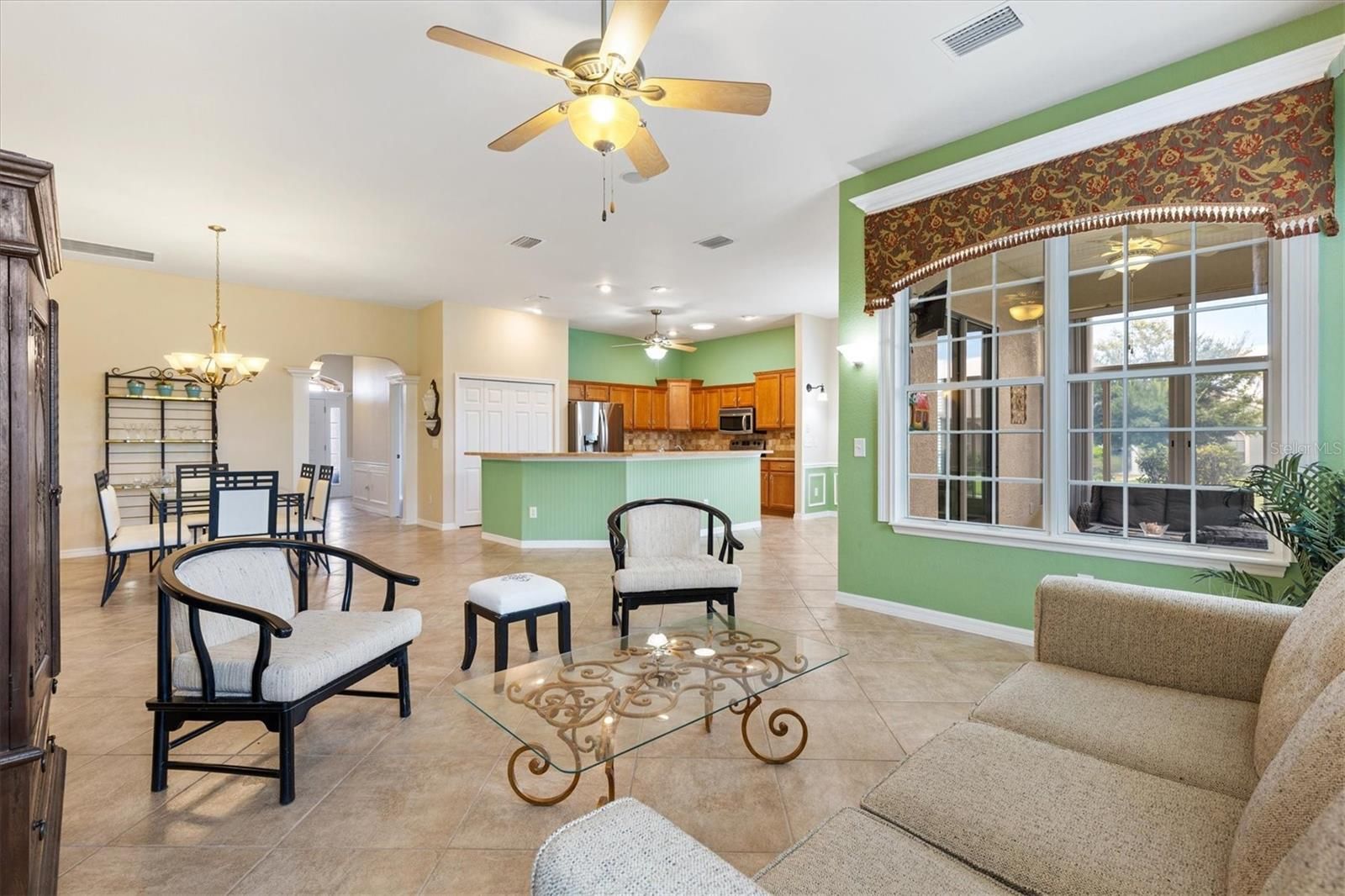 Located in the Exclusive 55+ Gated Golf Community of STONECREST, with all the amenities, adjacent to THE VILLAGES, Florida! Don’t miss this stunning Maple Model in The Meadows at Stonecrest. This well maintained home Features an OPEN FLOOR PLAN with high ceilings, a chef’s kitchen with stainless steel appliances, oversized breakfast bar, Reverse Osmosis System, and a cozy dining area. The Primary suite offers elegance and comfort with a tray ceiling, double walk-in closets, dual vanities, and a luxurious soaker tub. Enjoy versatile living spaces with a Florida room and screened Birdcage patio. Major updates include (2015) double-hung windows from Window World of Ocala, NEW HVAC (2016), NEW ROOF (2024), INTERIOR PAINTED (2024), NEW WATER HEATER (2024), Solar tubes, MAJIC ELECTRIC ATTIC STAIRS in garage with NEW MOTOR 2025, In ceiling speakers, and more. Stonecrest residents enjoy world class amenities; four pools (one indoor, and one right across the street from this home), golf, pickleball, tennis, bocce, softball, dog park, fitness center, restaurant, and countless clubs. Shopping, dining, and medical facilities are just minutes away, accessible by golf cart. This move-in ready home has it all. Schedule your showing today!