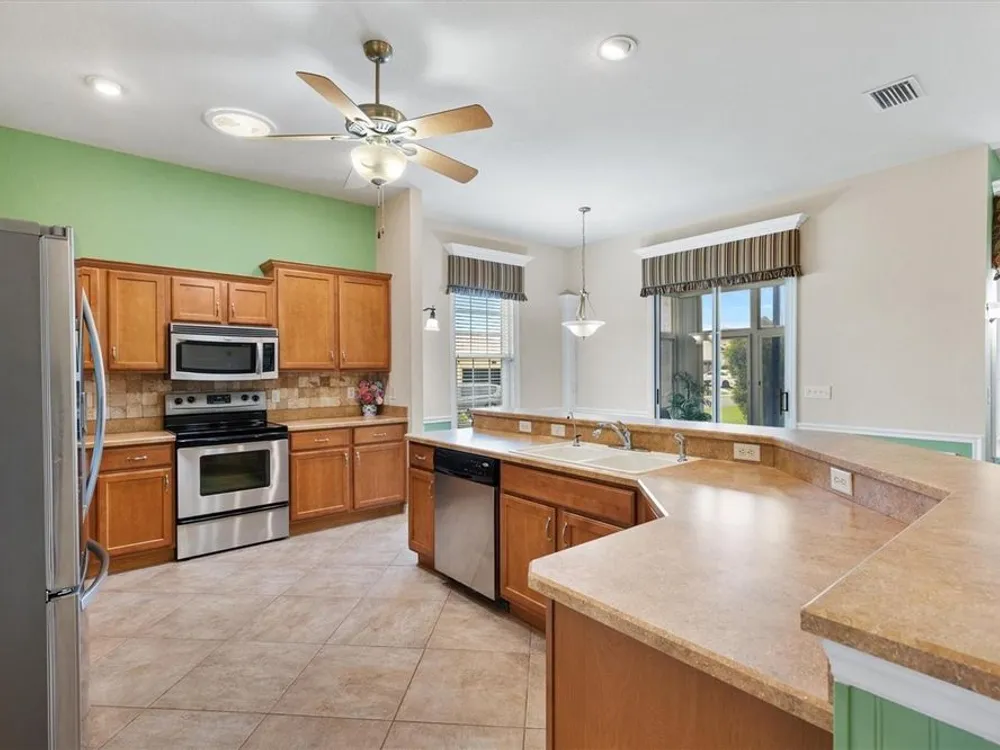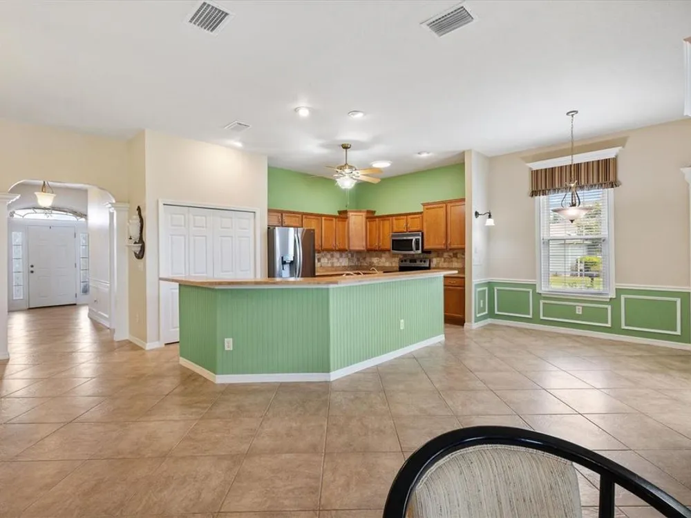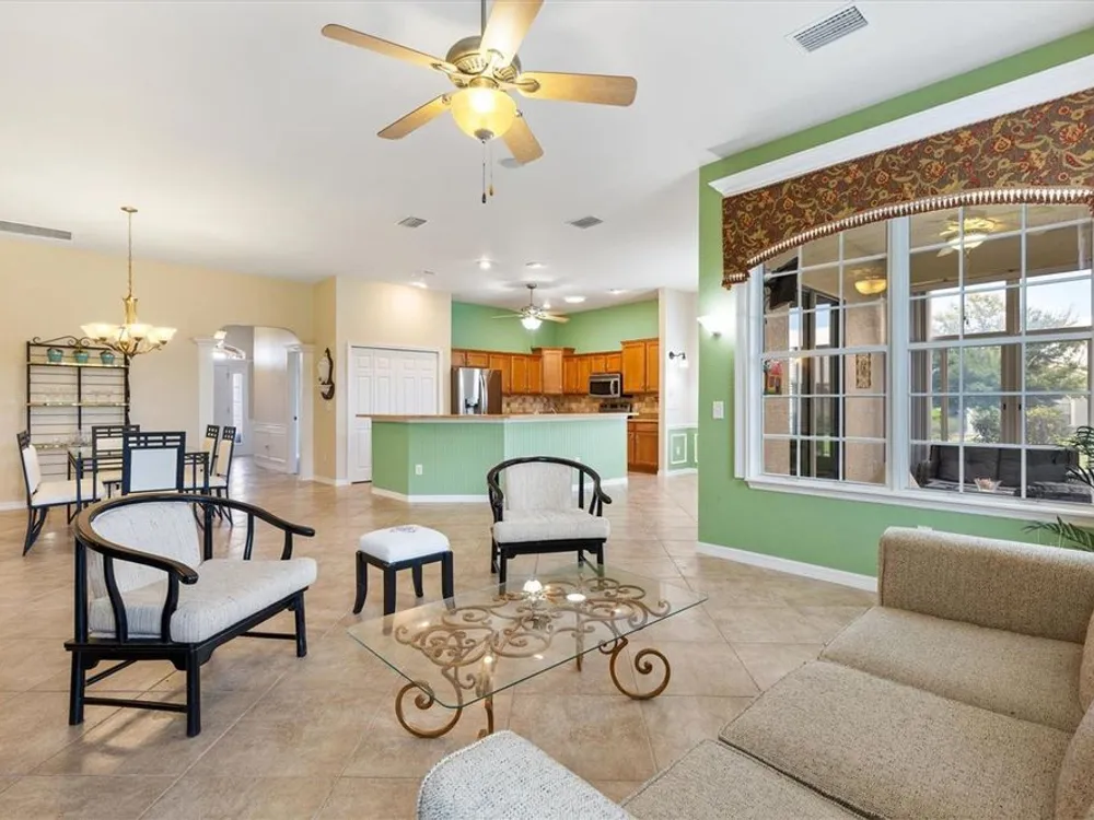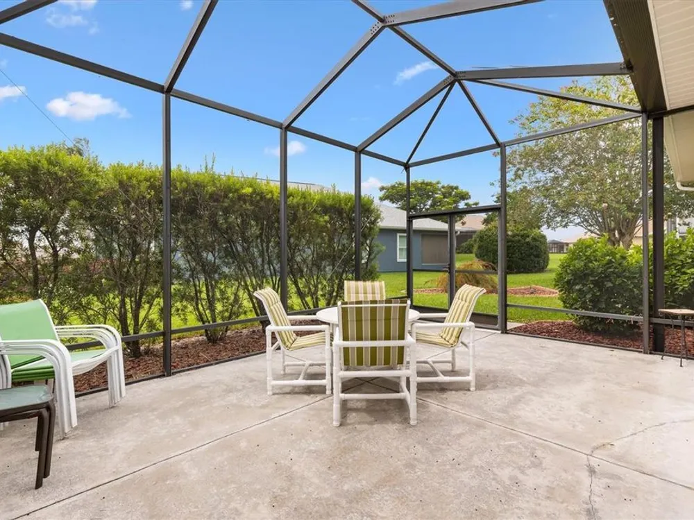 Located in the Exclusive 55+ Gated Golf Community of STONECREST, with all the amenities, adjacent to THE VILLAGES, Florida! Don’t miss this stunning Maple Model in The Meadows at Stonecrest. This well maintained home Features an OPEN FLOOR PLAN with high ceilings, a chef’s kitchen with stainless steel appliances, oversized breakfast bar, Reverse Osmosis System, and a cozy dining area. The Primary suite offers elegance and comfort with a tray ceiling, double walk-in closets, dual vanities, and a luxurious soaker tub. Enjoy versatile living spaces with a Florida room and screened Birdcage patio. Major updates include (2015) double-hung windows with transferrable warranty, NEW HVAC (2016), NEW ROOF (2024), INTERIOR PAINTED (2024), Solar tubes, MAJIC ELECTRIC ATTIC STAIRS in garage with NEW MOTOR 2025, In ceiling speakers, and more. Stonecrest residents enjoy world class amenities; four pools (one indoor, and one right across the street from this home), golf, pickleball, tennis, bocce, softball, dog park, fitness center, restaurant, and countless clubs. Shopping, dining, and medical facilities are just minutes away, accessible by golf cart. This move-in ready home has it all. Schedule your showing today!