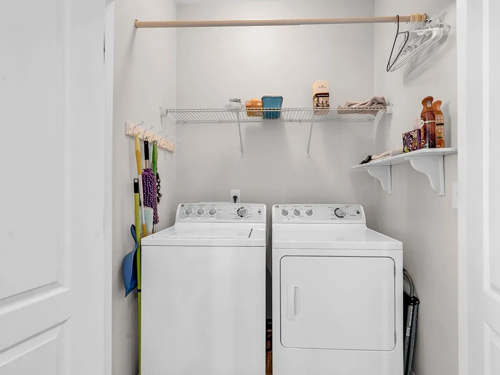 - Dishwasher, Disposal, Microwave, Range, Refrigerator, Dryer, Washer