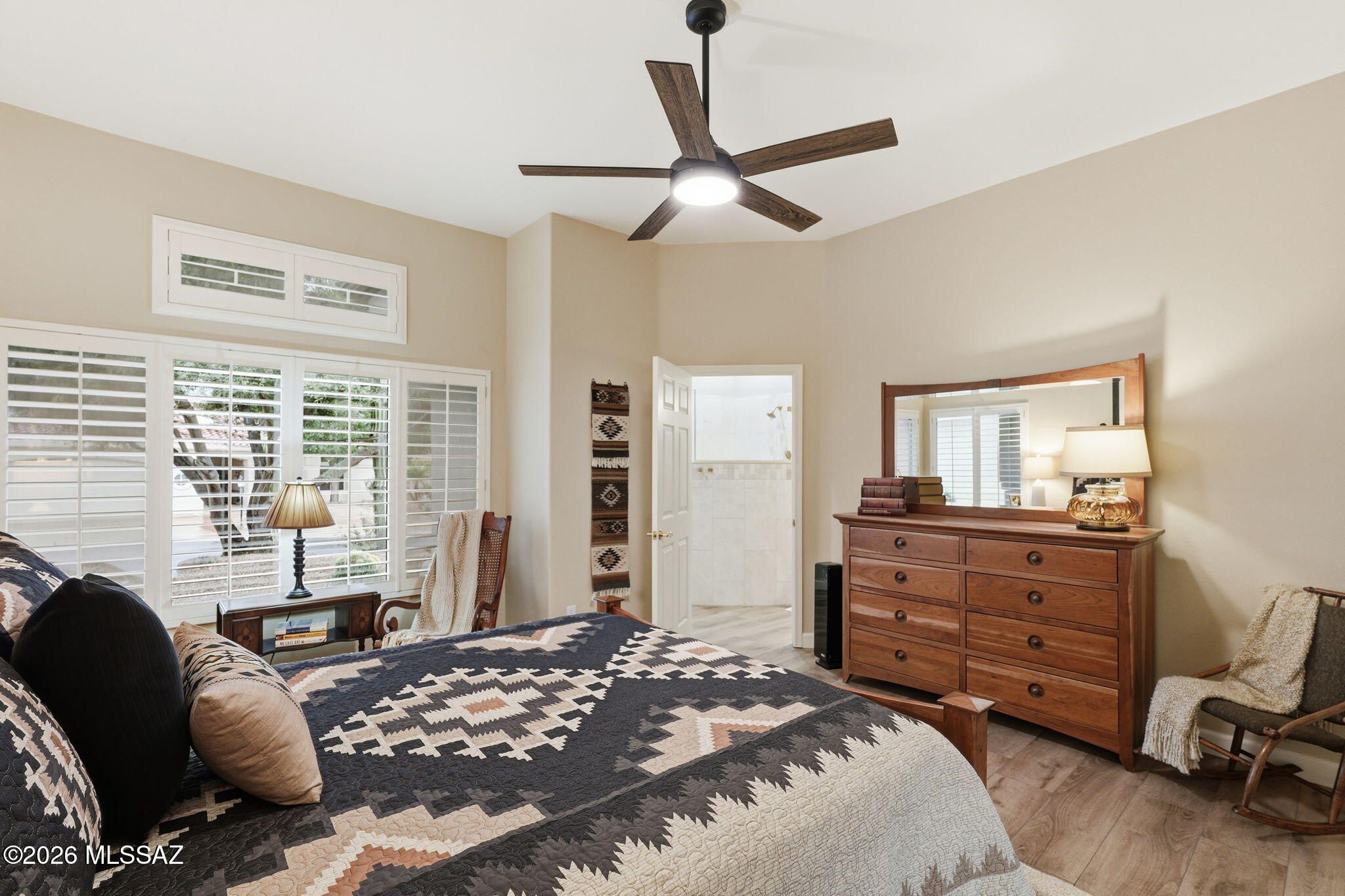 - Ceiling Fan(s), High Ceilings, Split Bedrooms, Walk-In Closet(s)
