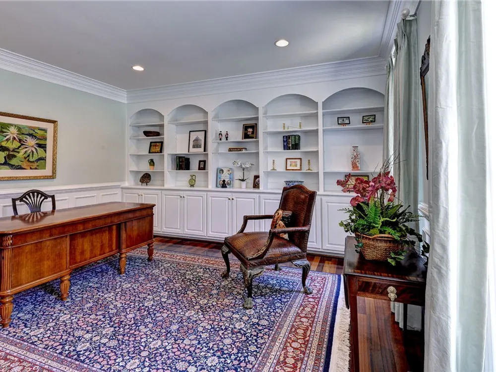 - Attic Access, Bookcases, Built-in Features, Butler Pantry, Ceiling Fan(s), Separate/Formal Dining Room, Double Vanity, Eat-in Kitchen, French Door(s)/Atrium Door(s), Granite Counters, High Ceilings, Jetted Tub, Kitchen Island, Pantry, Recessed Lighting, Solid Surface Counters, Sauna, Walk-In Closet(s), Central Vacuum