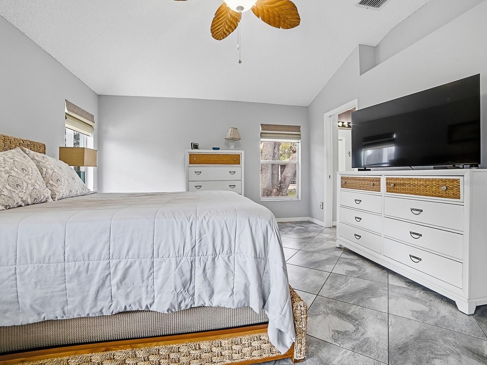 - Ceiling Fan(s), Eat-in Kitchen, Open Floorplan, Stone Counters, Thermostat, Vaulted Ceiling(s), Walk-In Closet(s), Window Treatments