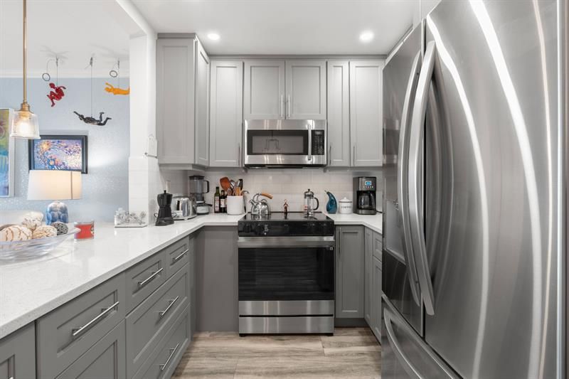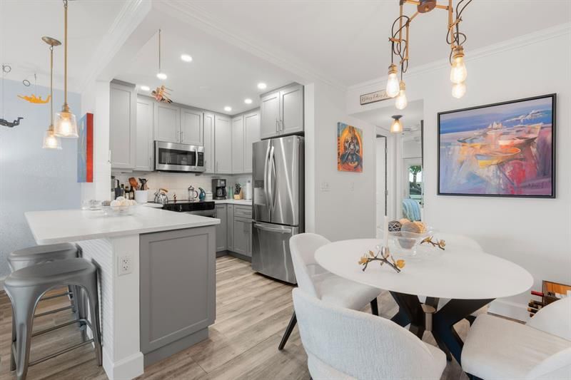 Step into this fully renovated condo showcasing impact windows, doors, and sliders throughout. The stylish kitchen boasts modern finishes along with the remodeled bathroom. In the master bedroom you will find an impact slider leading to your screen enclosed balcony. Enjoy a built in closet in the master along with a storage closet with built ins. Comes with an updated electrical panel ensuring worry free living and 2 new A/C units. Walking distance to houses of worship. Absolutely beautiful unit!