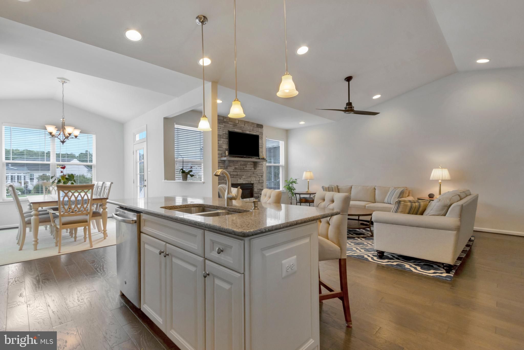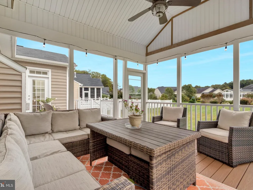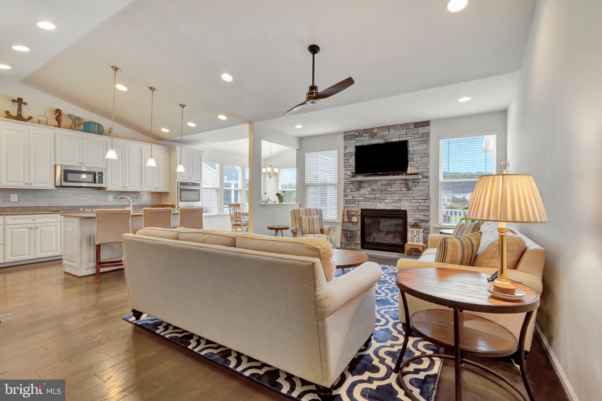 Welcome to this beautifully appointed and lovingly maintained ranch home, with a finished flex room above the garage, where thoughtful design meets modern comfort. The versatile flex room above the garage provides countless opportunities for extra guest accommodations, a second living space, an office and so much more. The open floor plan features a designer kitchen with granite countertops, a large island, a pantry, double-wall ovens, and classic white cabinets, seamlessly connecting to a morning room or formal dining area. The living room boasts soaring ceilings and a gas fireplace with a beautiful stone surround, while the spacious primary suite offers a spa-like bath retreat with a walk-in tiled shower and a generously sized walk-in closet. Two guest bedrooms and a versatile loft offer ample space for family or guests. Step outside to enjoy sunset views from the large front porch, or relax on the composite rear deck and oversized screened porch overlooking one of the largest lots in the community. A private well fully irrigates the yard, and the two-car garage includes a niche for extra storage or a workbench. This quiet side-road setting is enhanced by vibrant community amenities—a pool, clubhouse, fitness center, dock leading to Red Mill Pond for kayaking, plus a full calendar of social events and neighborhood gatherings. Conveniently located less than ten miles from three beaches, the community is also adjacent to the Georgetown-Lewes walking/biking trail. With trash collection and yard maintenance provided by the HOA, you can spend your time enjoying everything this home and community has to offer!