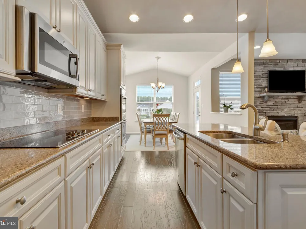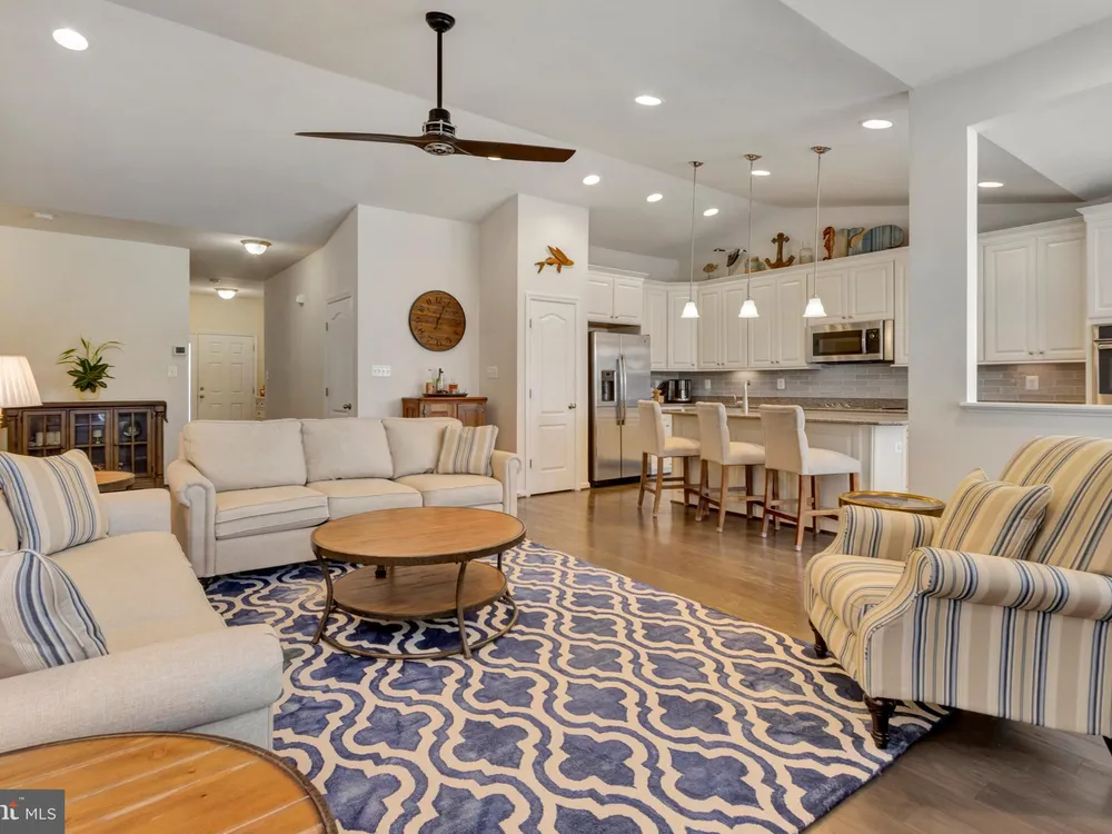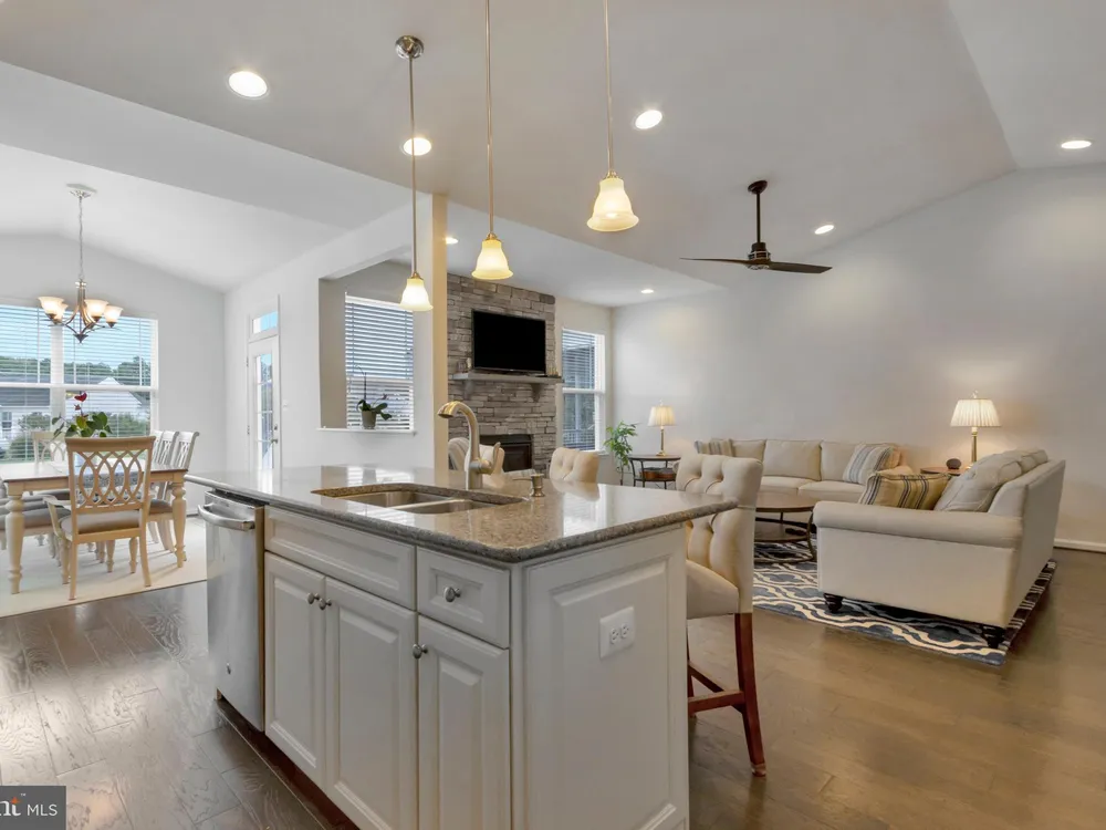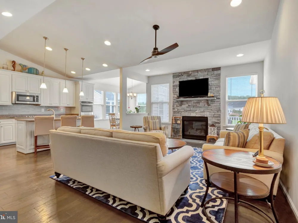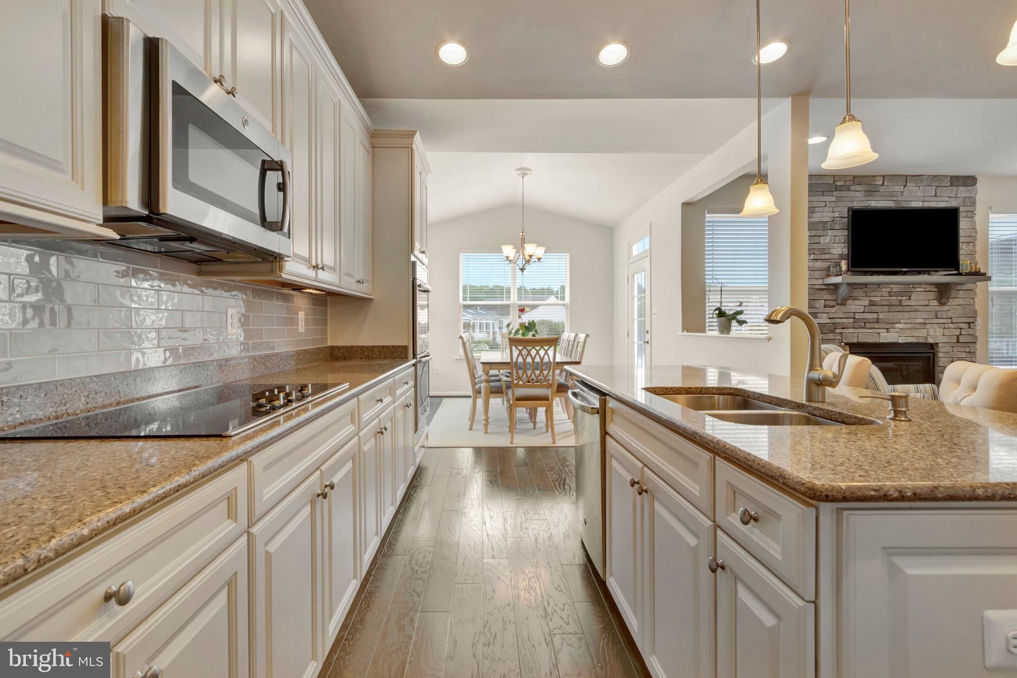Welcome to this beautifully appointed and lovingly maintained ranch home, with a finished flex room above the garage, where thoughtful design meets modern comfort. The versatile flex room above the garage provides countless opportunities for extra guest accommodations, a second living space, an office and so much more. The open floor plan features a designer kitchen with granite countertops, a large island, a pantry, double-wall ovens, and classic white cabinets, seamlessly connecting to a morning room or formal dining area. The living room boasts soaring ceilings and a gas fireplace with a beautiful stone surround, while the spacious primary suite offers a spa-like bath retreat with a walk-in tiled shower and a generously sized walk-in closet. Two guest bedrooms and a versatile loft offer ample space for family or guests. Step outside to enjoy sunset views from the large front porch, or relax on the composite rear deck and oversized screened porch overlooking one of the largest lots in the community. A private well fully irrigates the yard, and the two-car garage includes a niche for extra storage or a workbench. This quiet side-road setting is enhanced by vibrant community amenities—a pool, clubhouse, fitness center, dock leading to Red Mill Pond for kayaking, plus a full calendar of social events and neighborhood gatherings. Conveniently located less than ten miles from three beaches, the community is also adjacent to the Georgetown-Lewes walking/biking trail. With trash collection and yard maintenance provided by the HOA, you can spend your time enjoying everything this home and community has to offer!