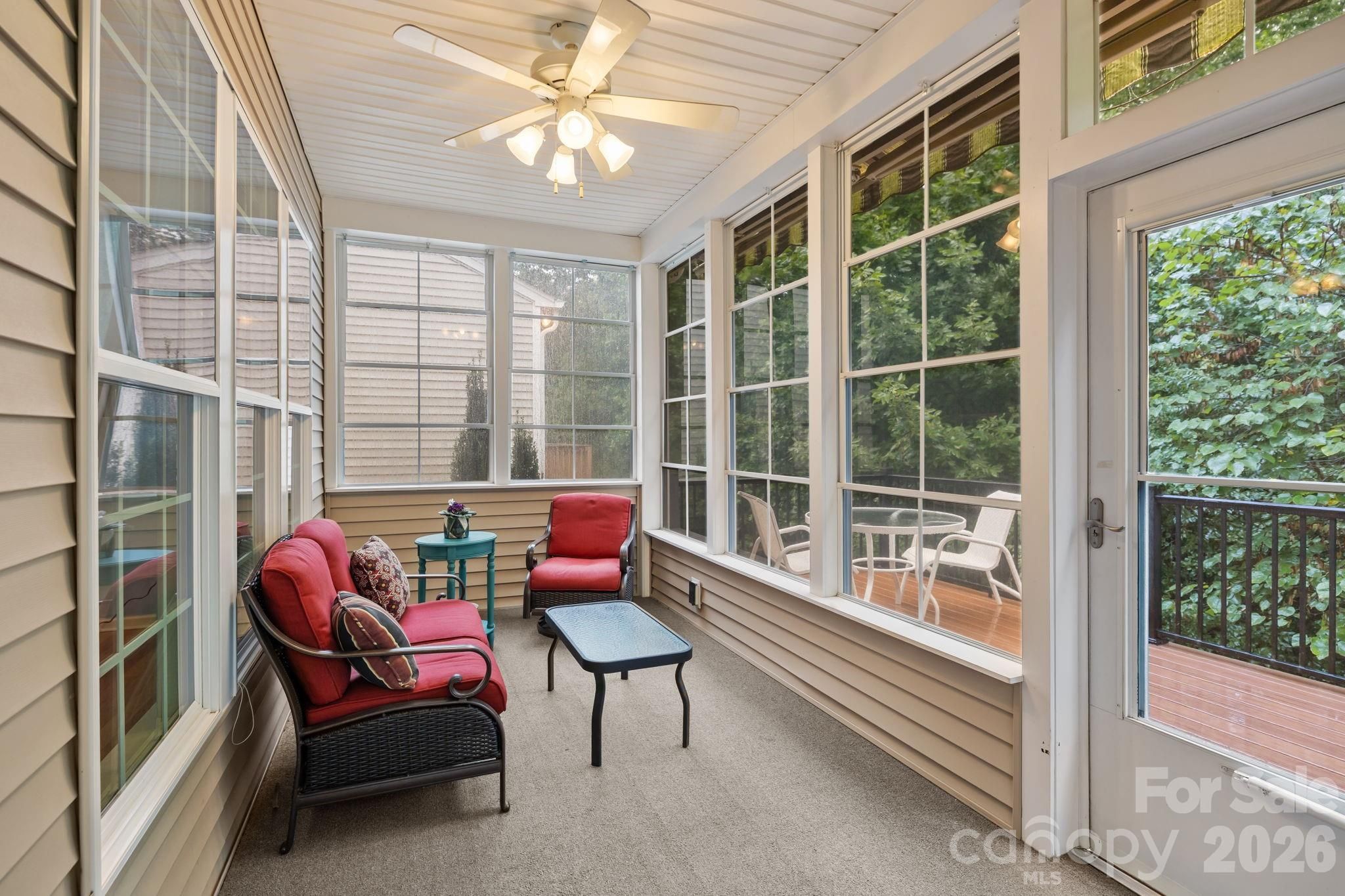 Beautiful 3 bedroom, 3 full bath home with a finished walk-out basement, nestled on a wooded lot in the popular Sun City 55+ community—close to all of the fun and activity in The Lake House and clubhouse! Bright, open main level features sunny living, dining, and kitchen areas. The spacious primary suite offers a private bath with dual sinks, walk in shower, and large walk-in closet. A second bedroom, full bath, and a versatile office/flex room are also on the main floor. The showstopper is the 3-season room leading to a Trex deck with serene wooded views. Downstairs, enjoy a large great room, a media room, a private guest suite with full bath and walk-in closet. Also find a huge storage area that can even be used as a workshop! Don’t miss the peaceful covered patio—perfect for relaxing!This home has it all at a great price!